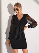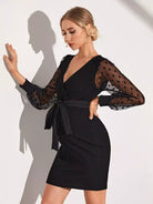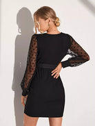 Maternity Contrast Dobby Mesh Bishop Sleeve Overlap Collar Bodycon Dress Without Belt