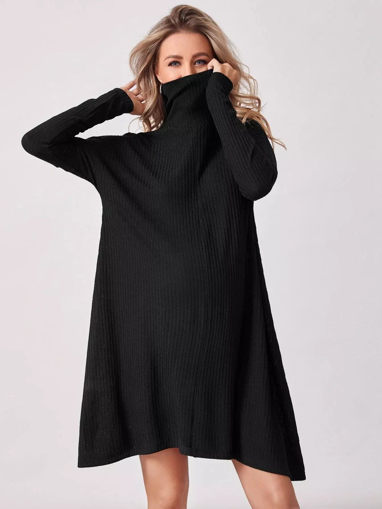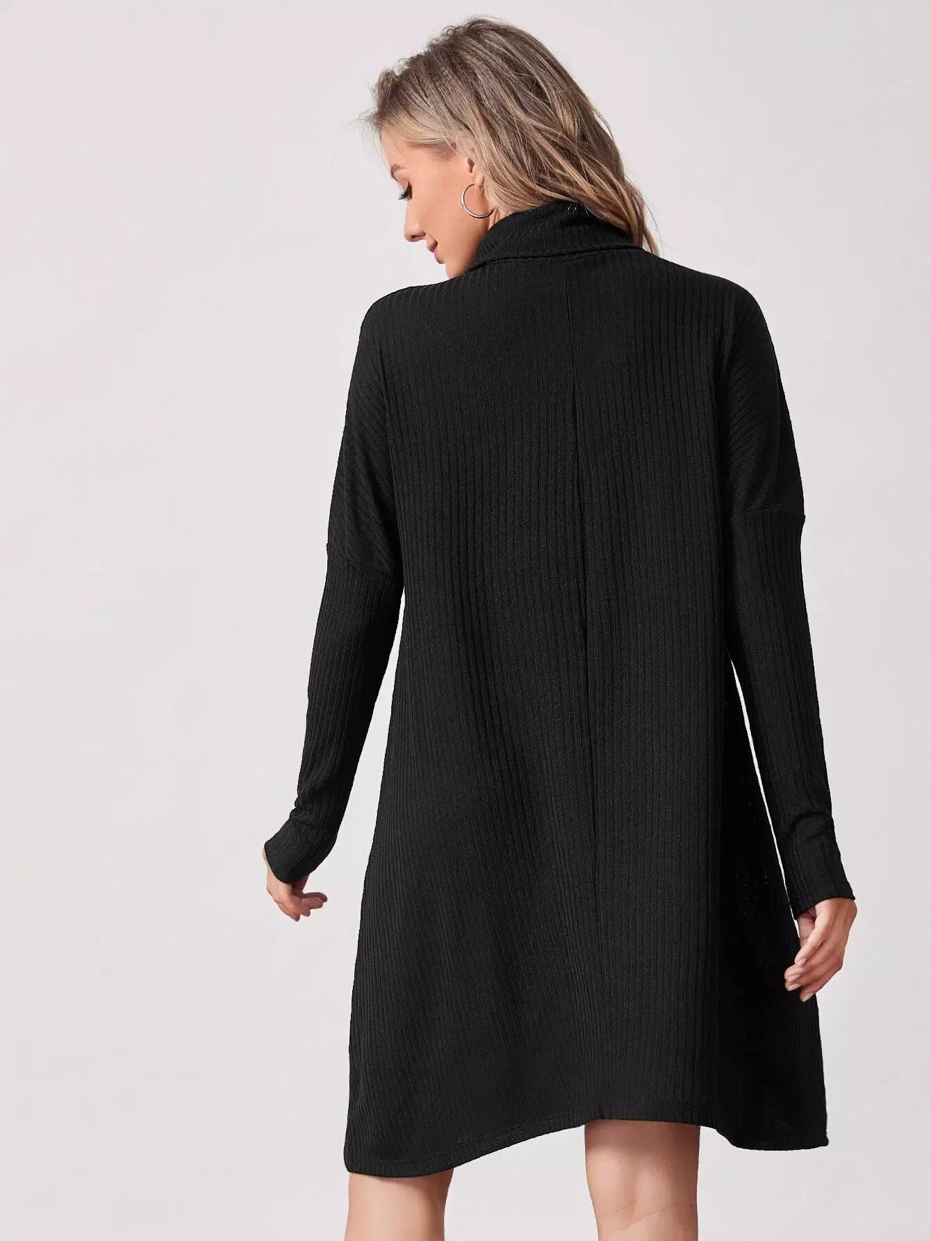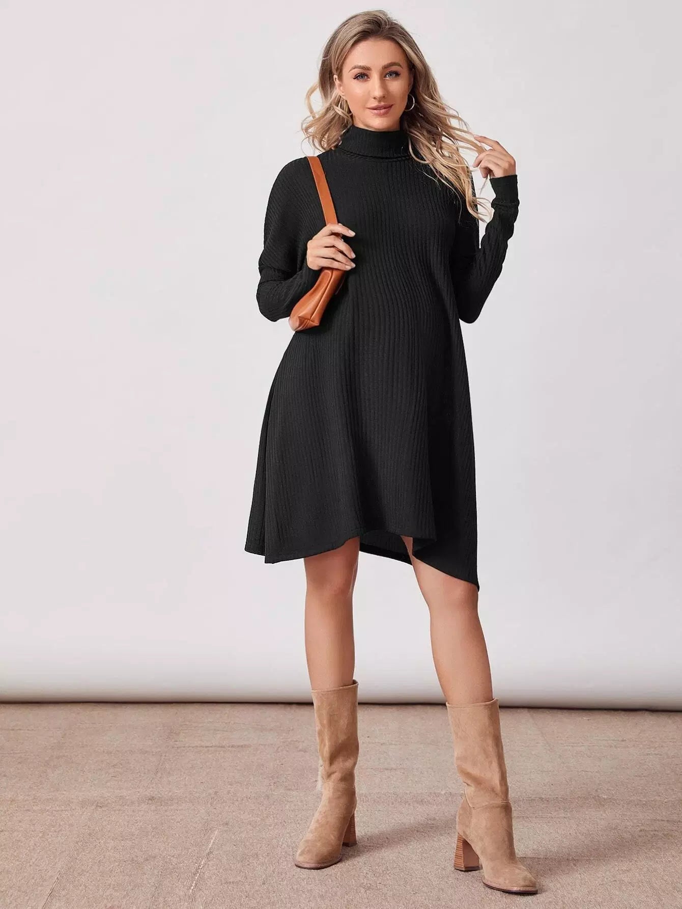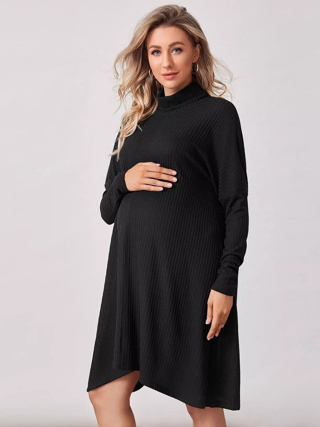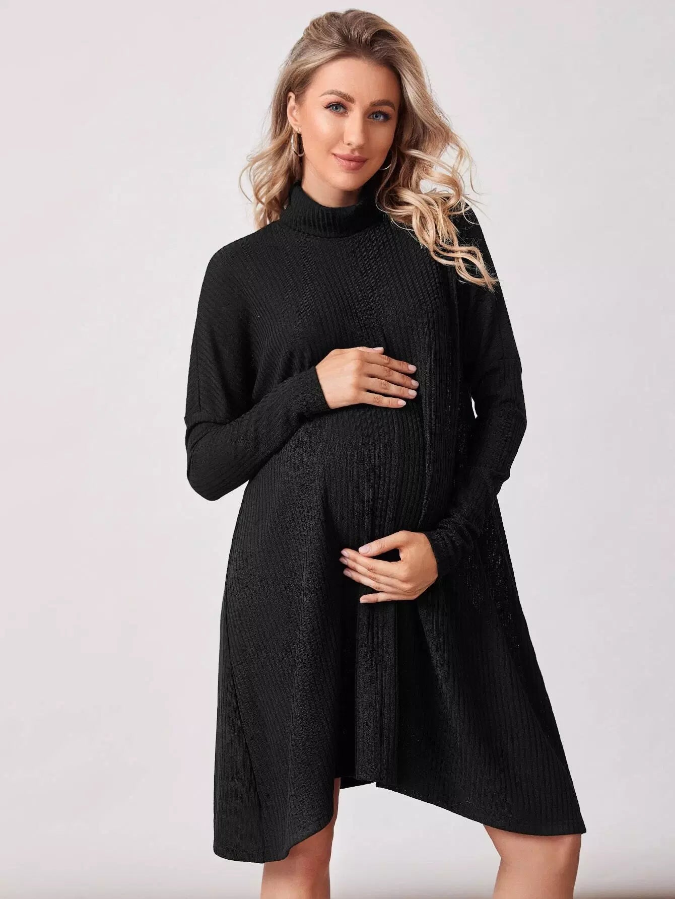 Maternity High Neck Drop Shoulder Rib-knit Dress