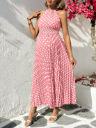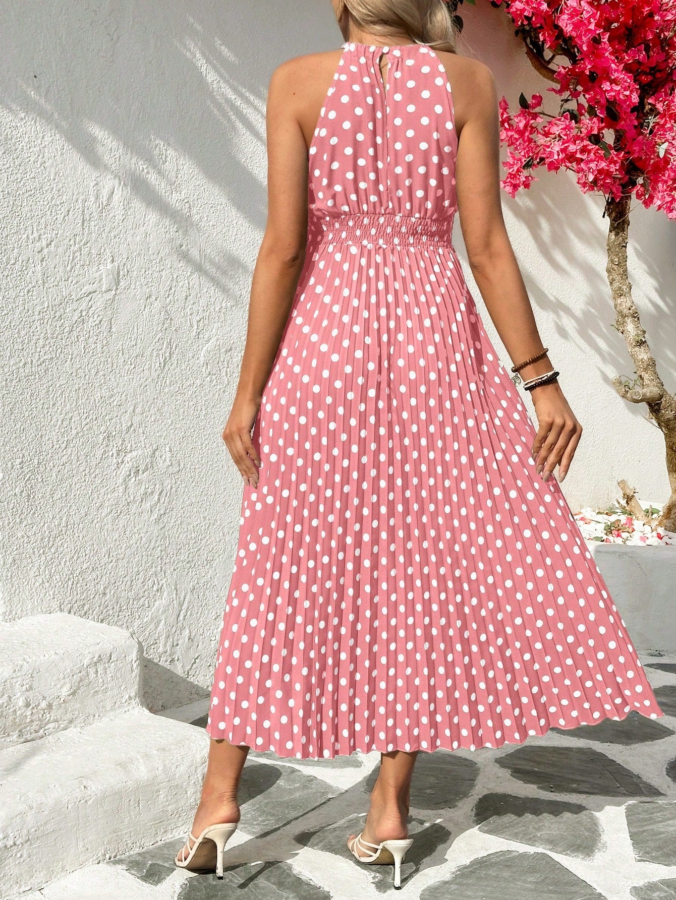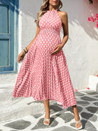 Maternity Holiday Pleated Hem Halter Polka Dot Dress