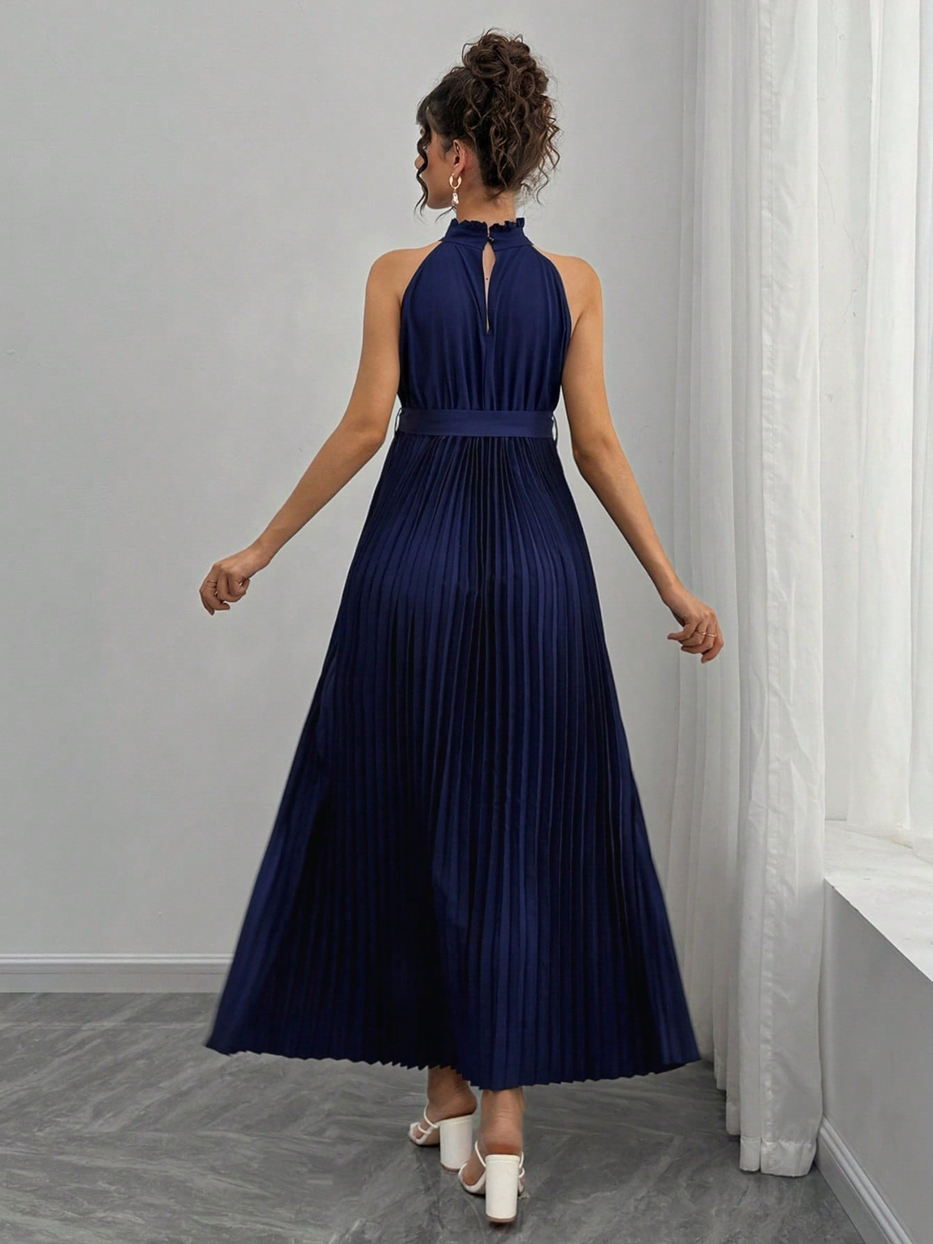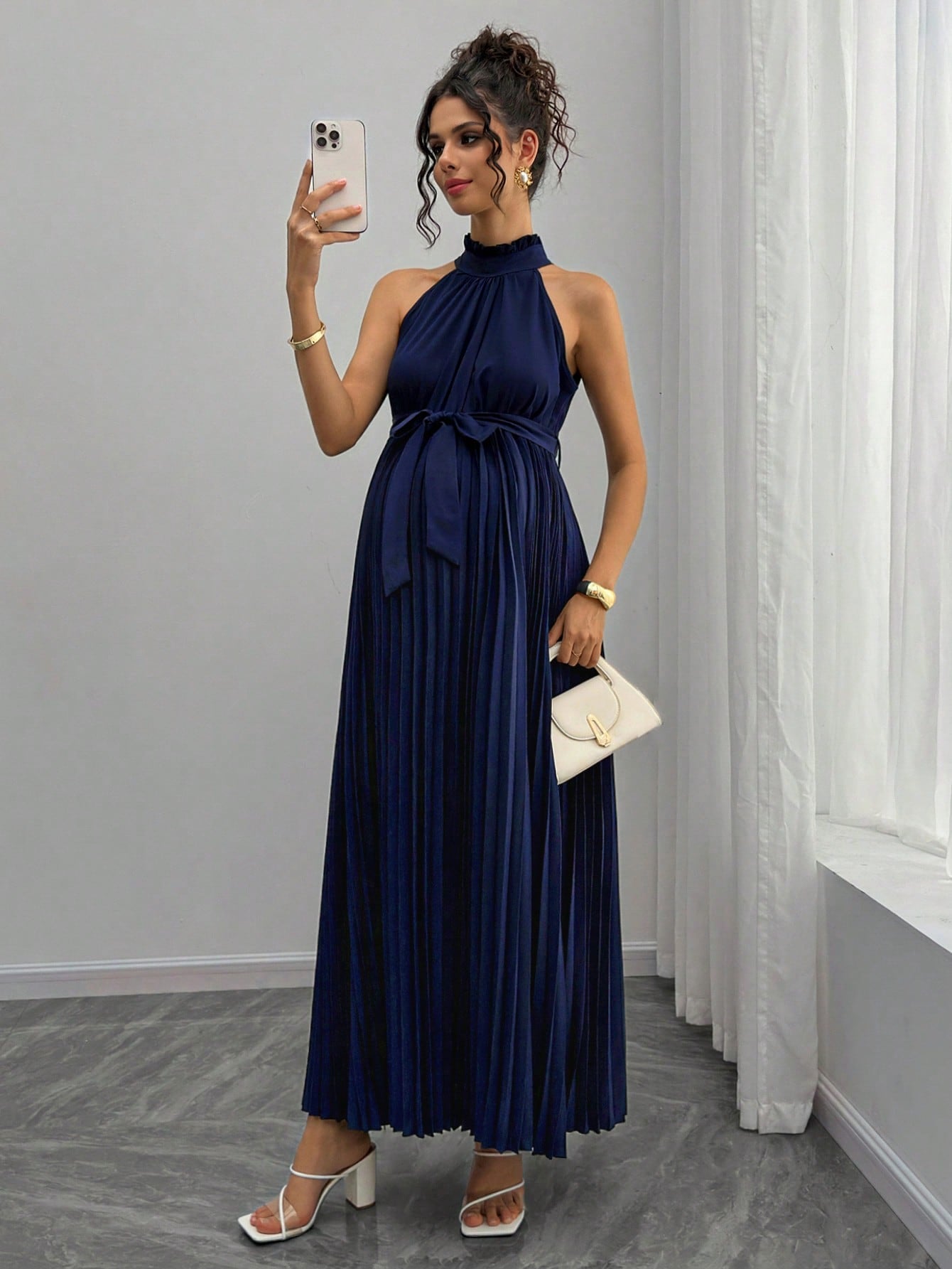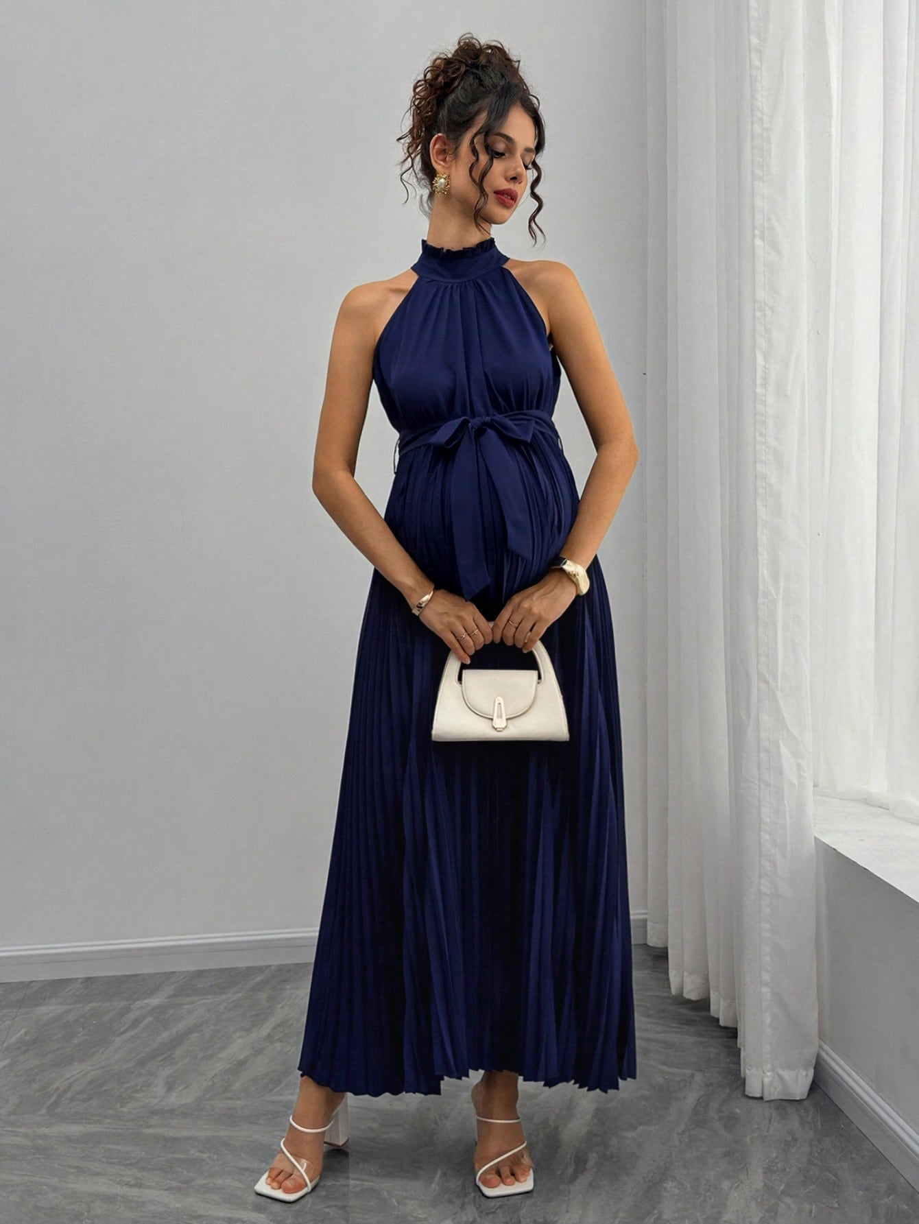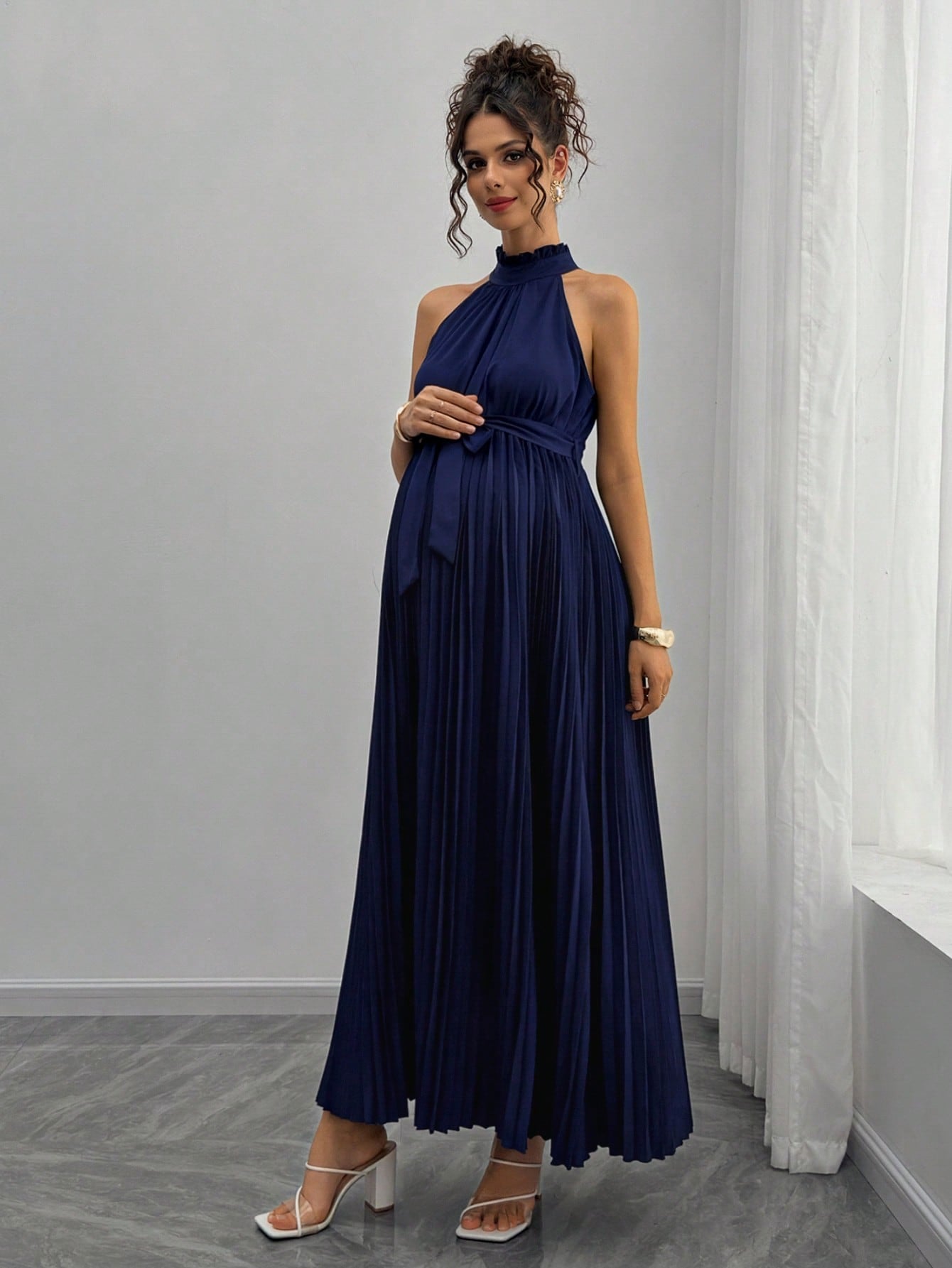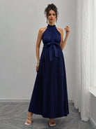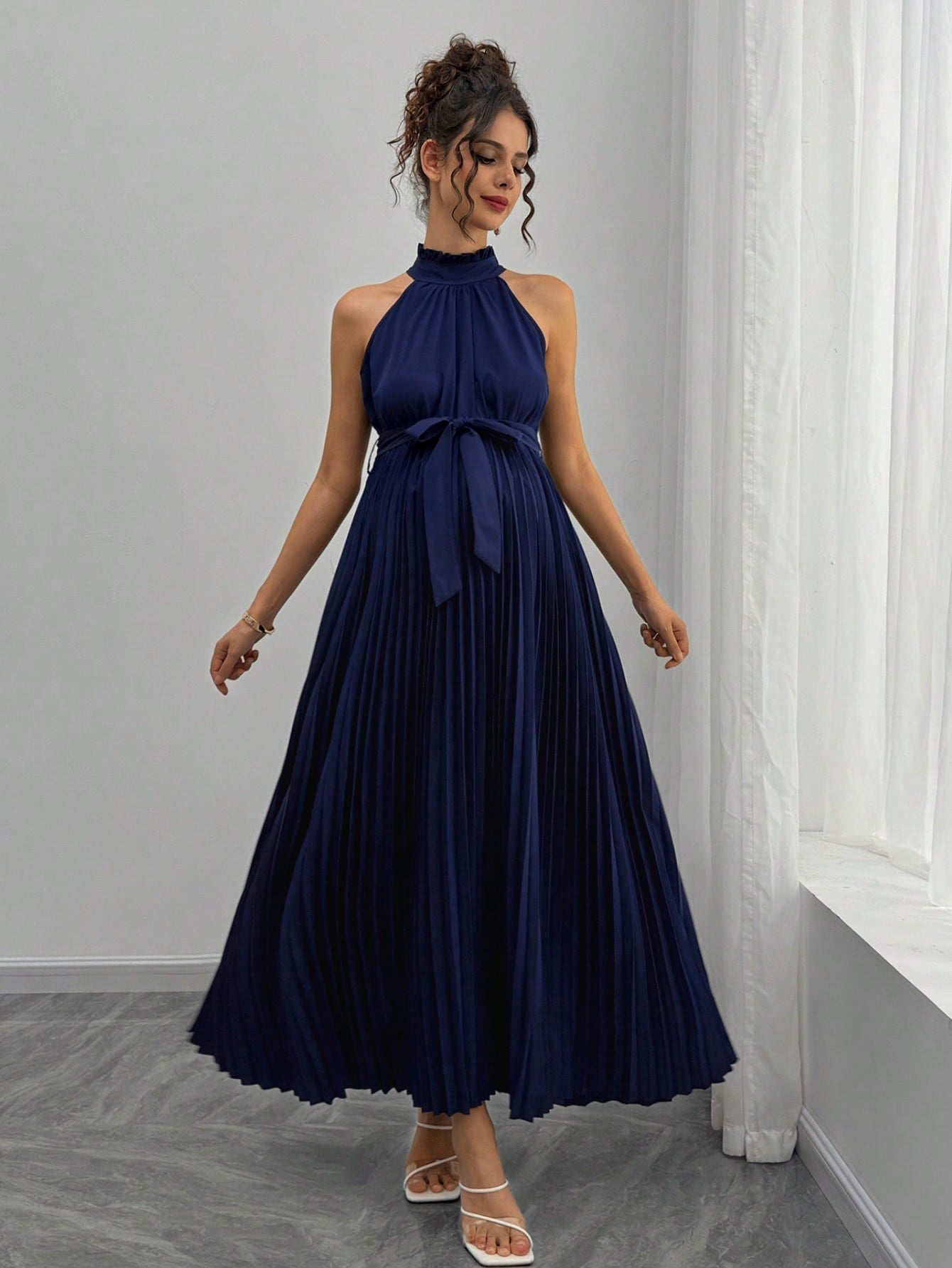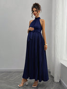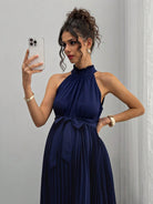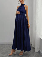SHEIN Pregnant Women's Elegant Sleeveless Pleated Tie-Waist Dress For Summer