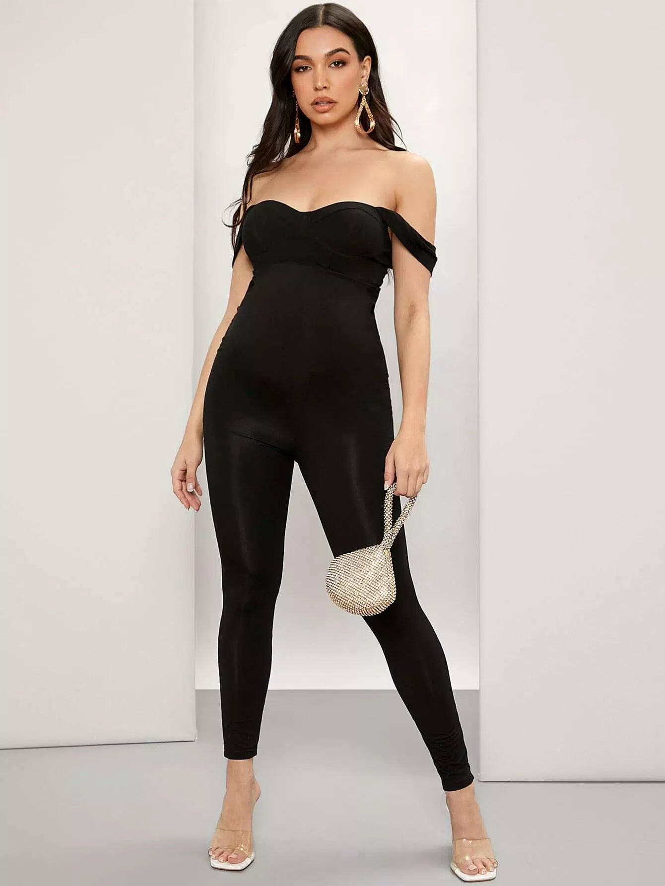 Maternity Off Shoulder Solid Jumpsuit