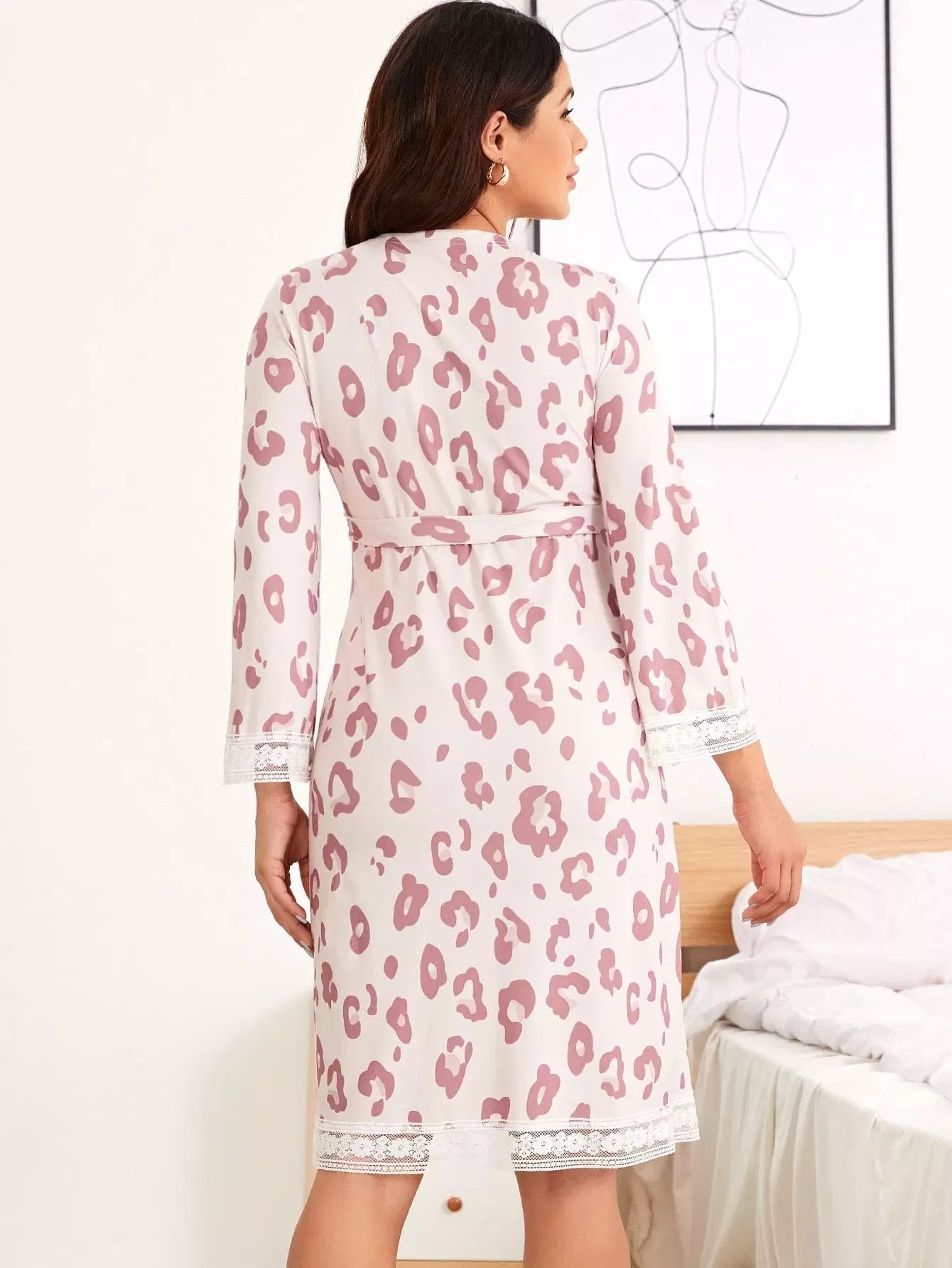 Maternity Allover Print Lace Trimed Lounge Robe