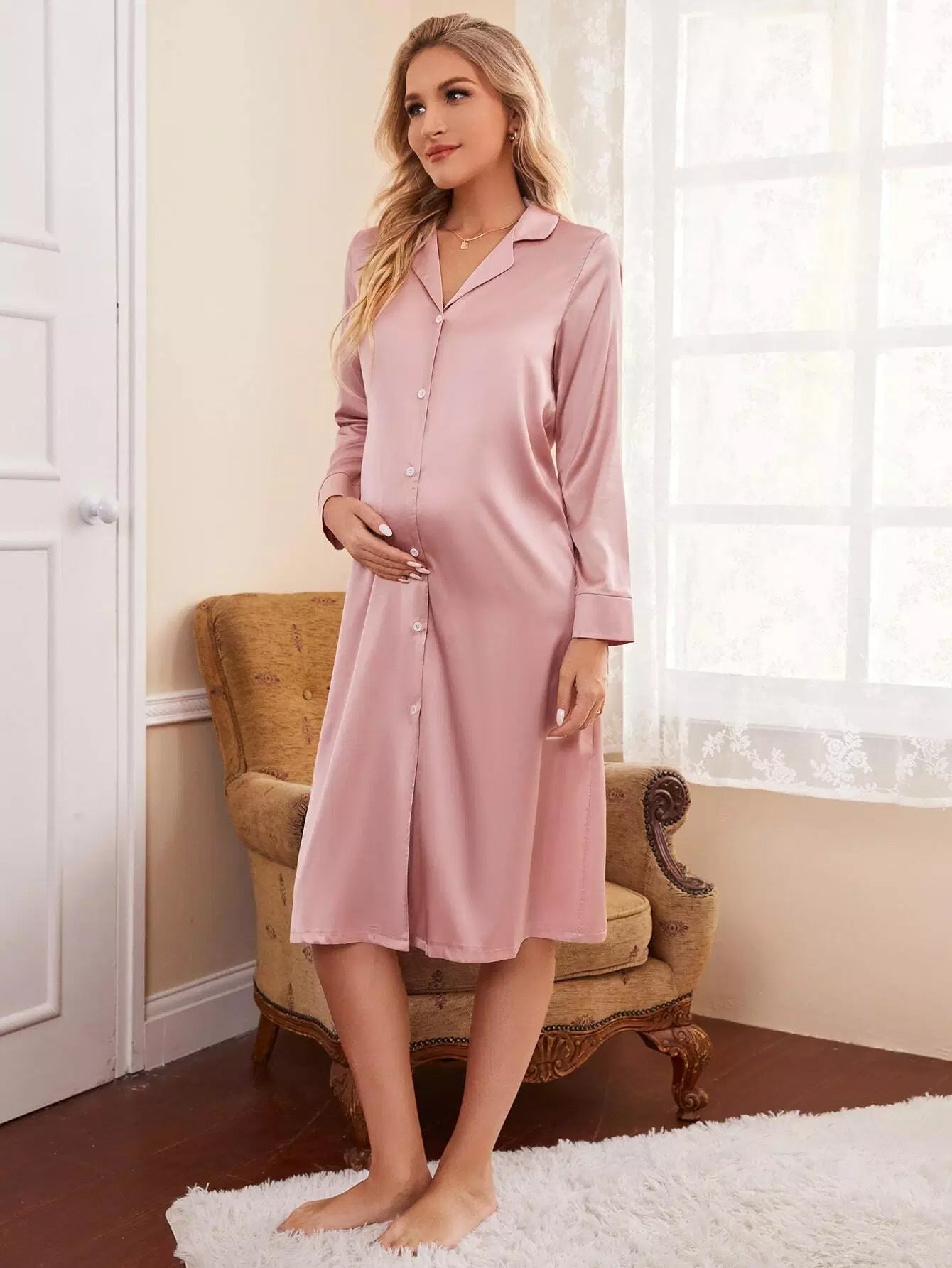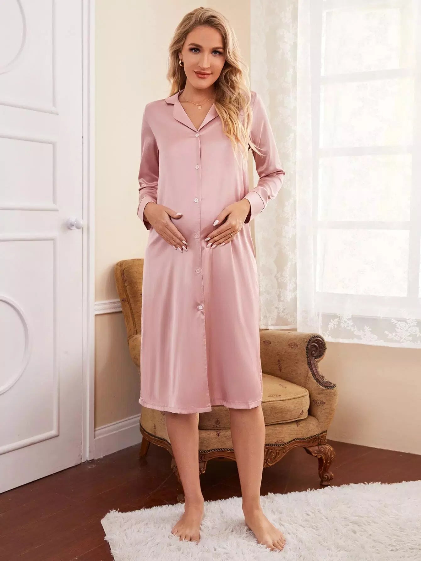 Maternity Button Front Lounge Dress