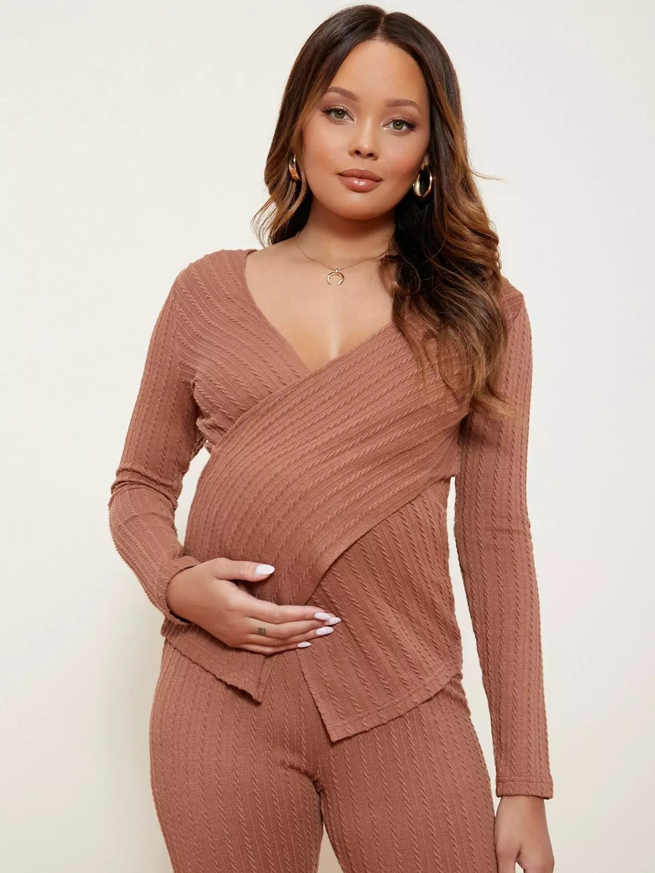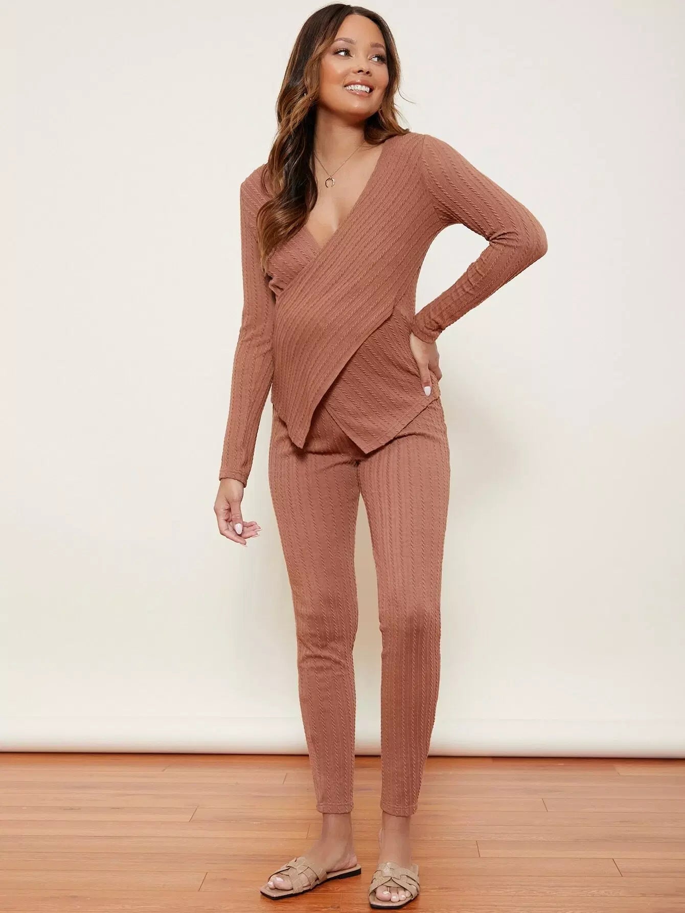Maternity Cross Wrap Front Tee and Leggings PJ Set