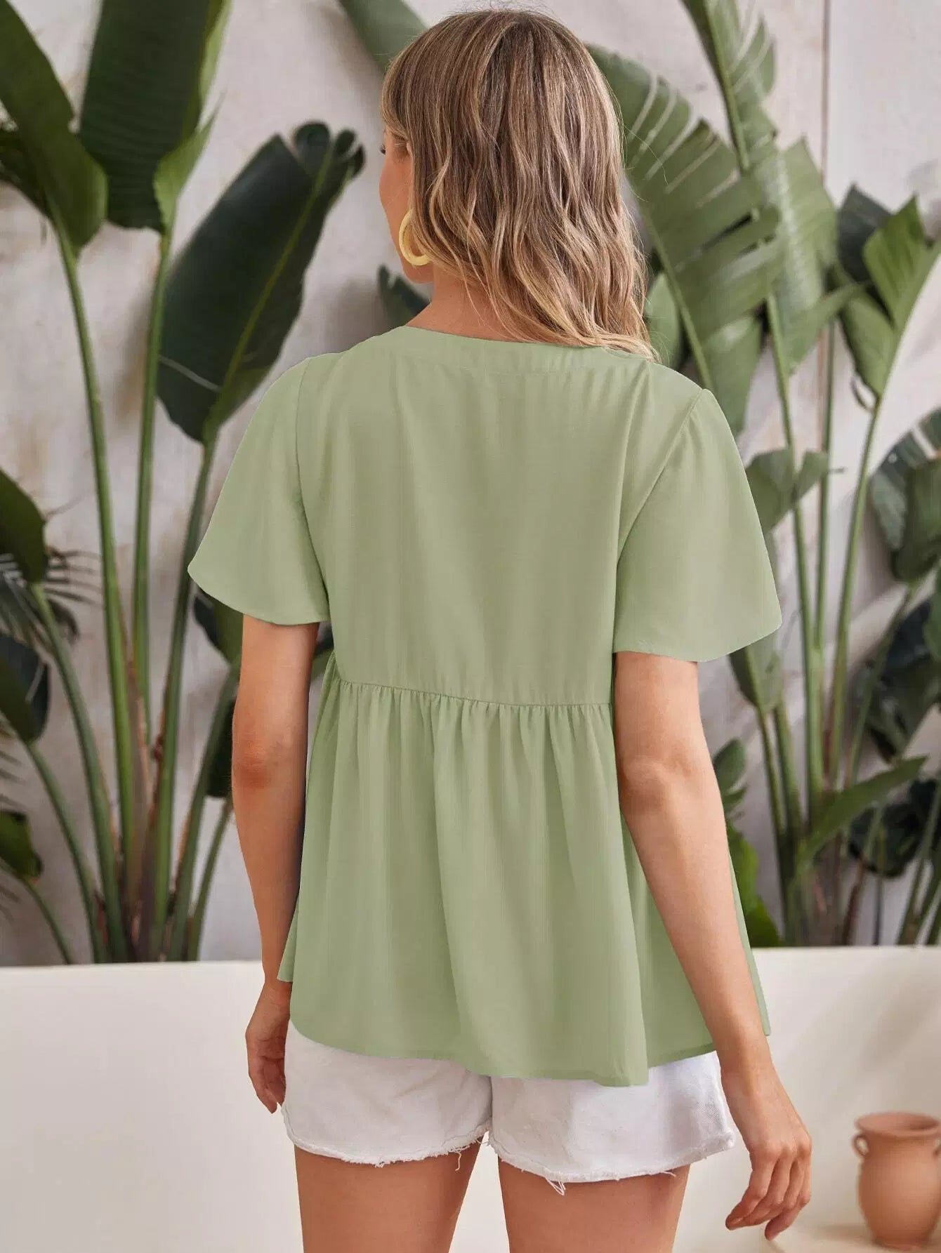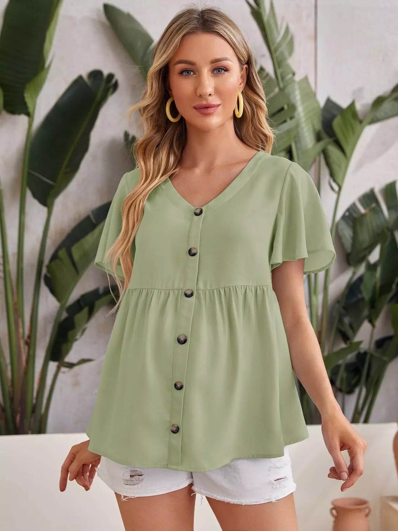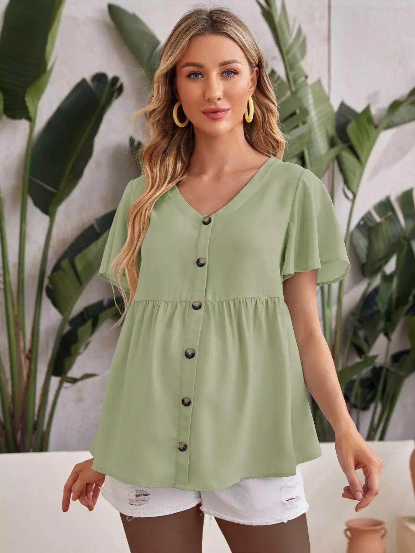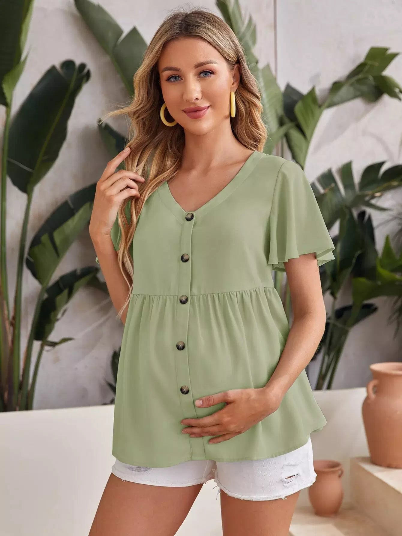Maternity Butterfly Sleeve Button Front Peplum Top