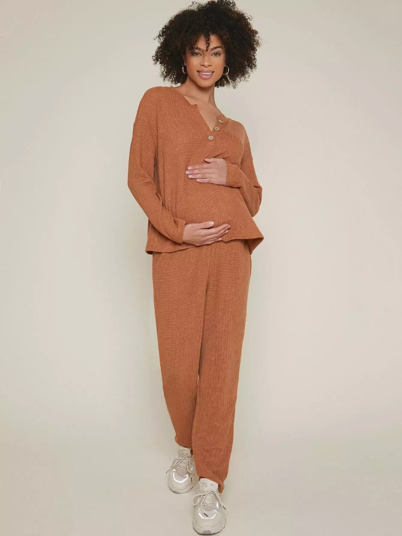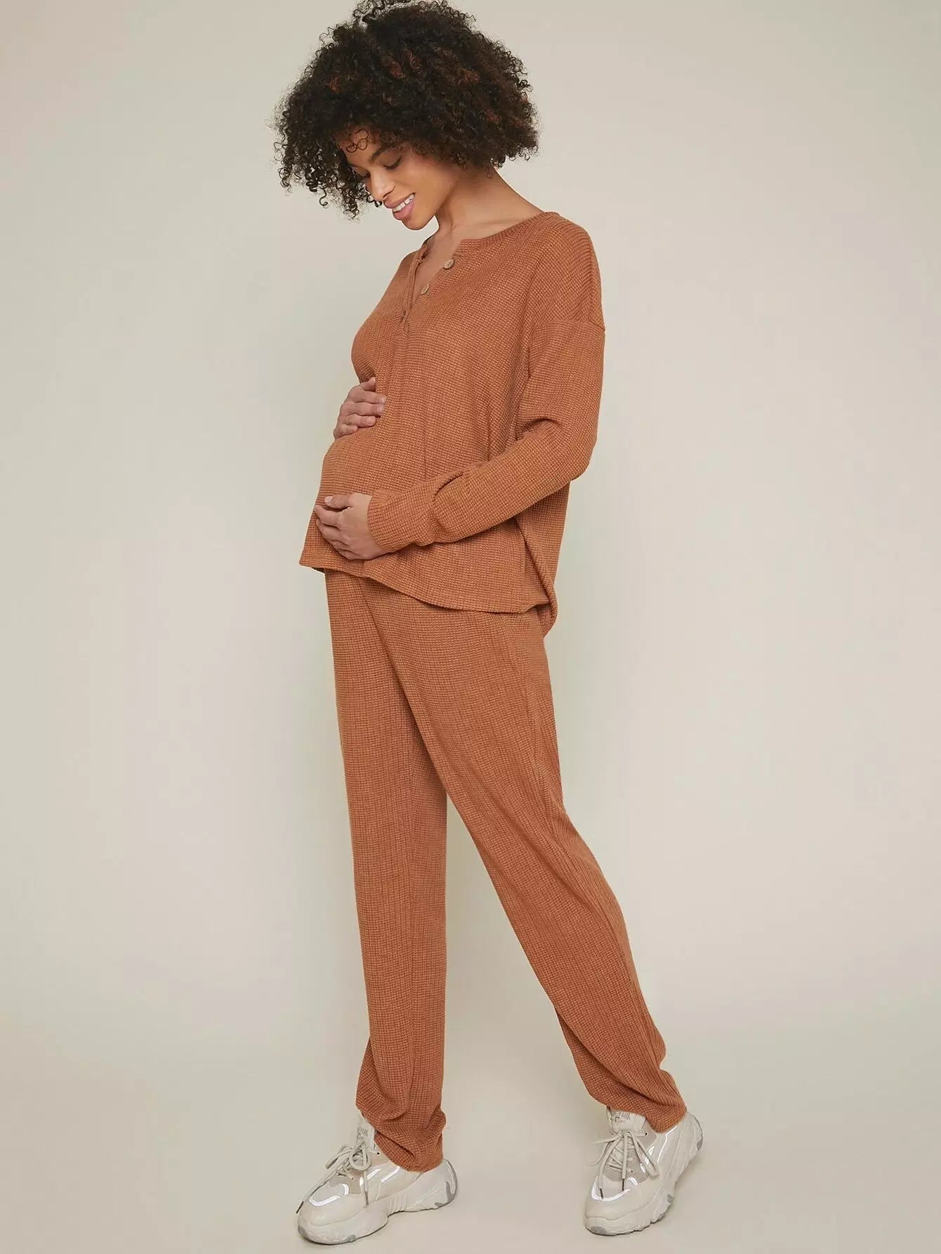 Kids - Maternity Half Placket Solid Tee & Pants Set