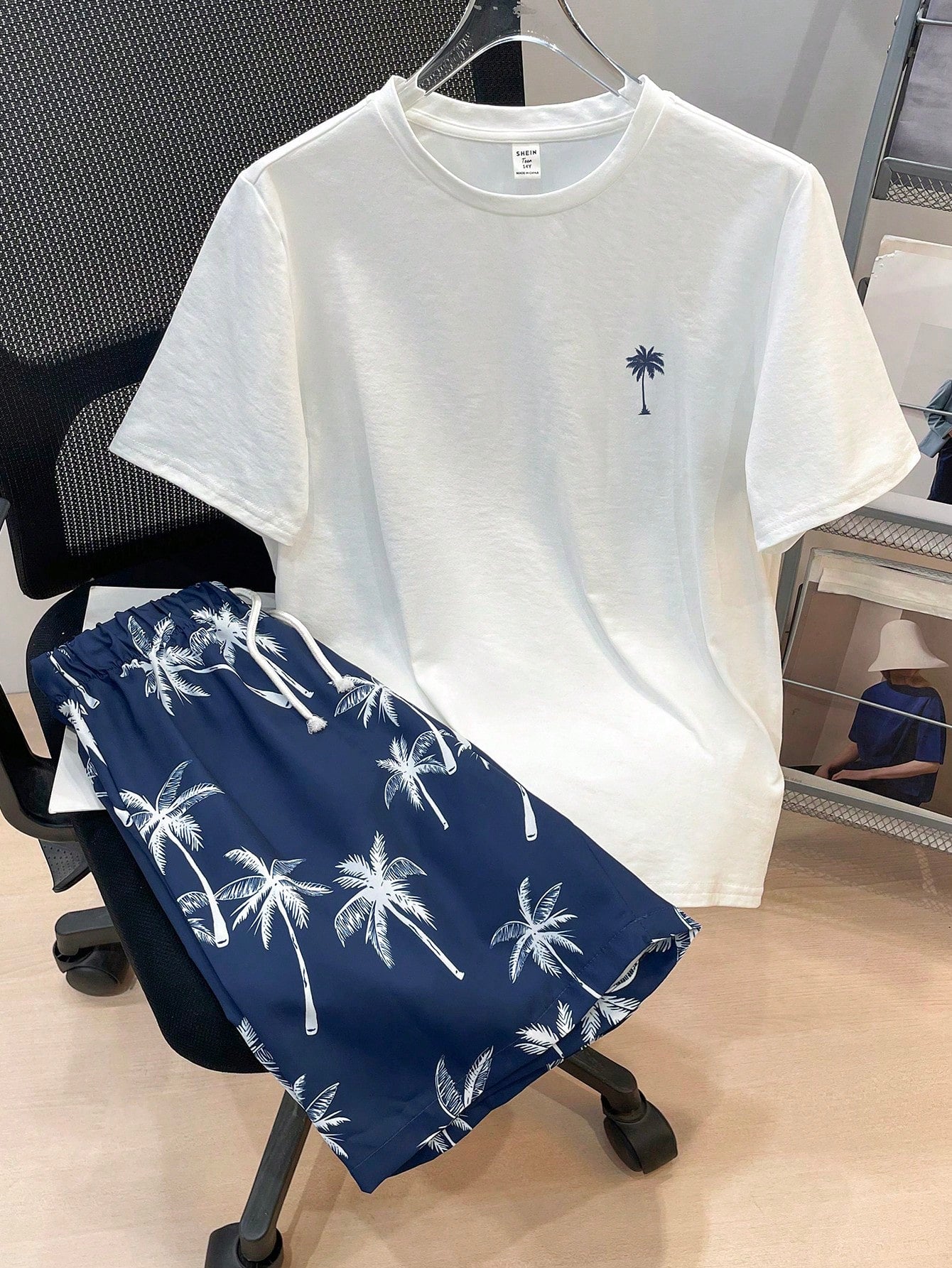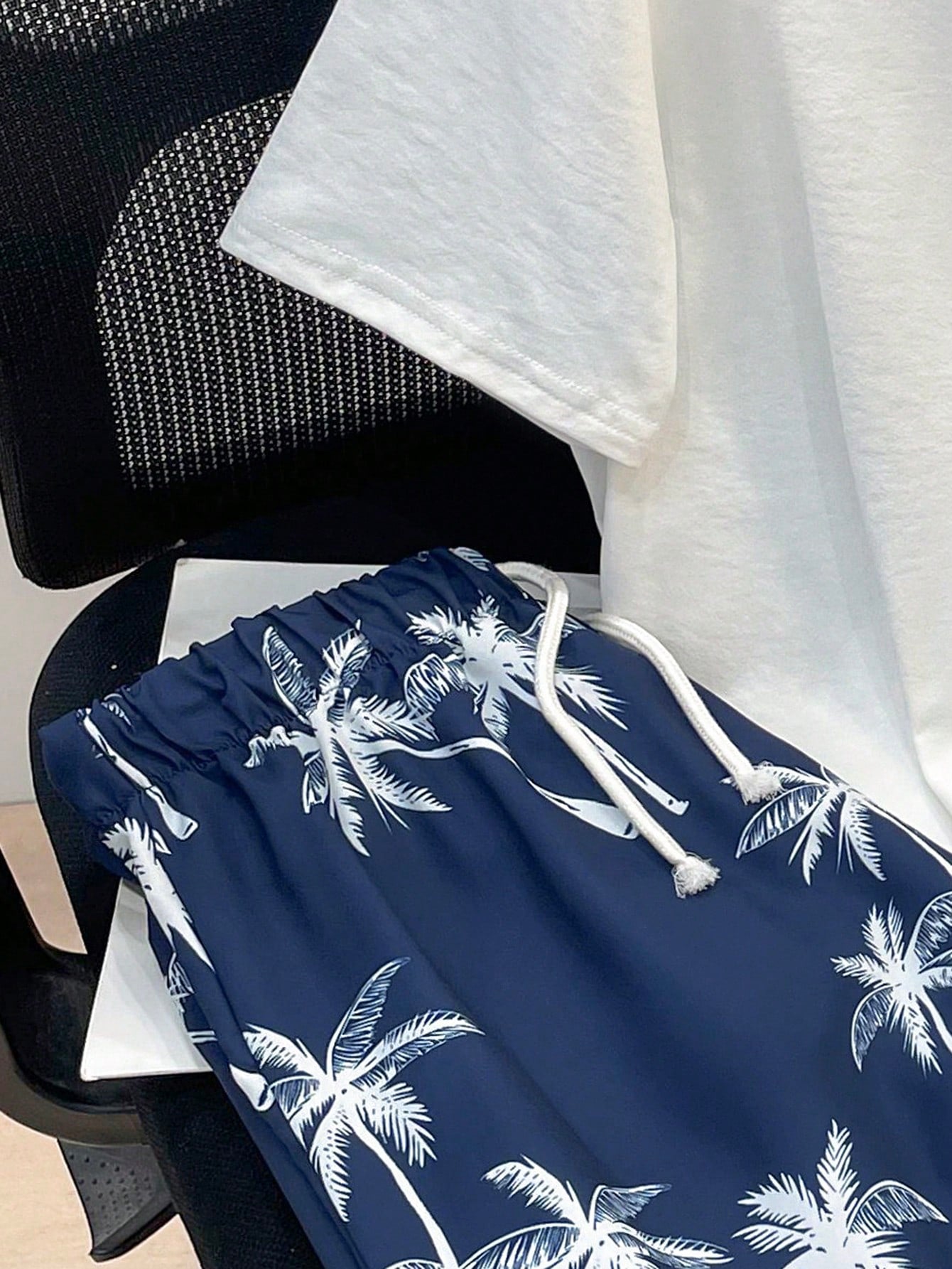 2pcs/Set Teen Boys Casual Short Sleeve T-Shirt And Shorts Set, Street Punk Rock Style, Suitable For Outdoor,