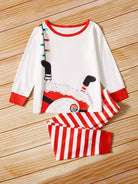 Boys 1pc Christmas Print Sleep Top With 1pc Striped Sleep Pants