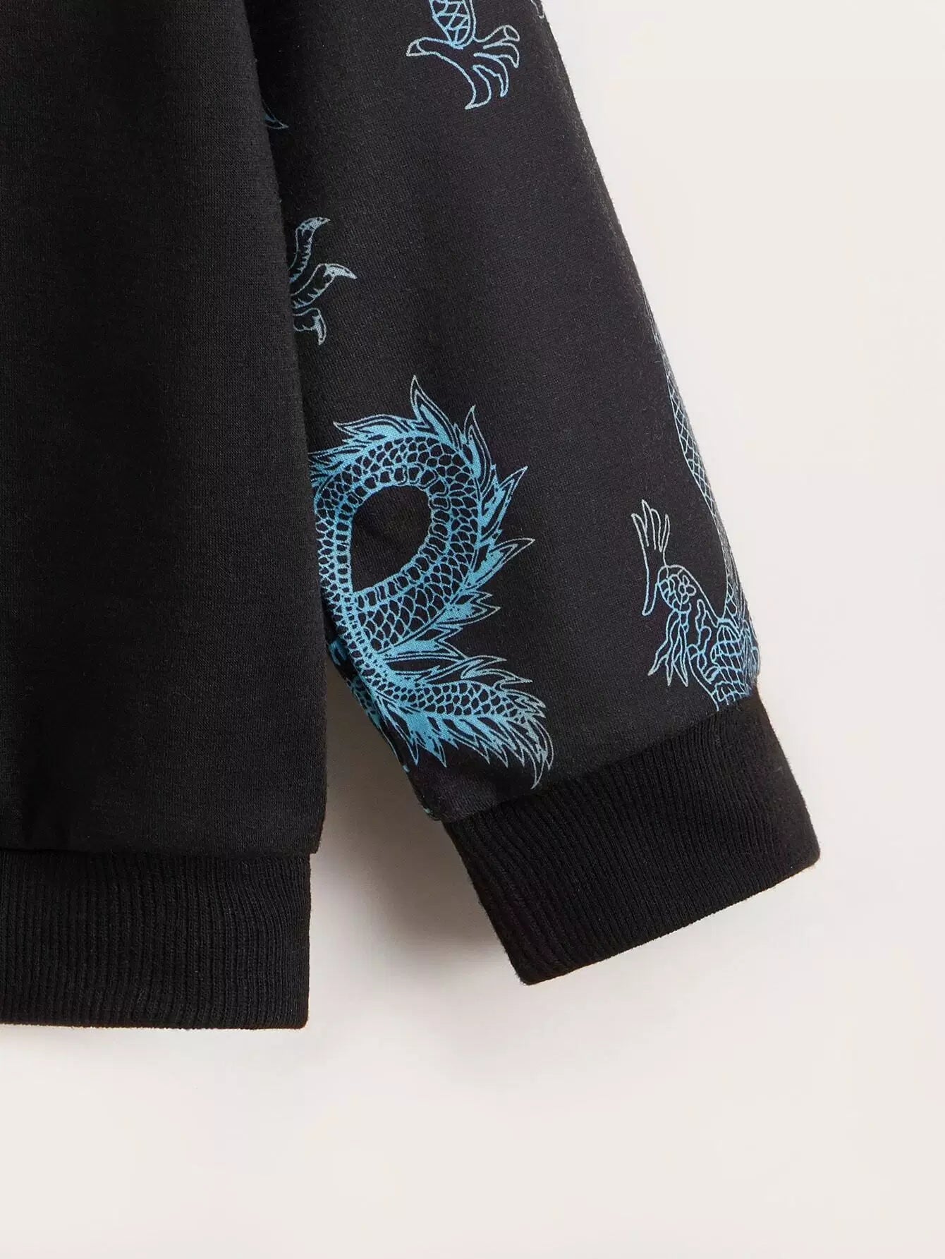 Boys Chinese Dragon Print Raglan Sleeve Sweatshirt