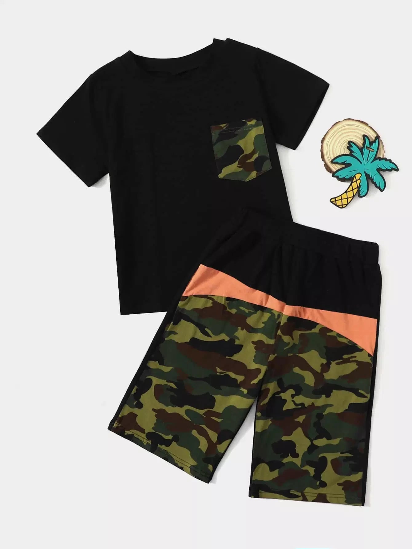 Boys Contrast Camo Print Tee With Track Shorts