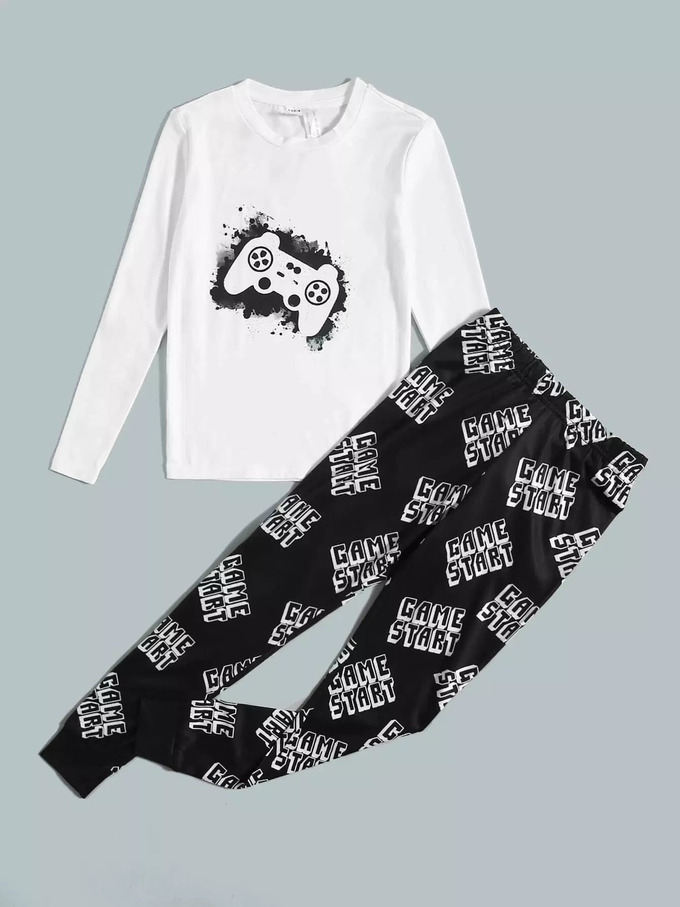 Boys Gamepad Print Tee & Letter Graphic Pants PJ Set