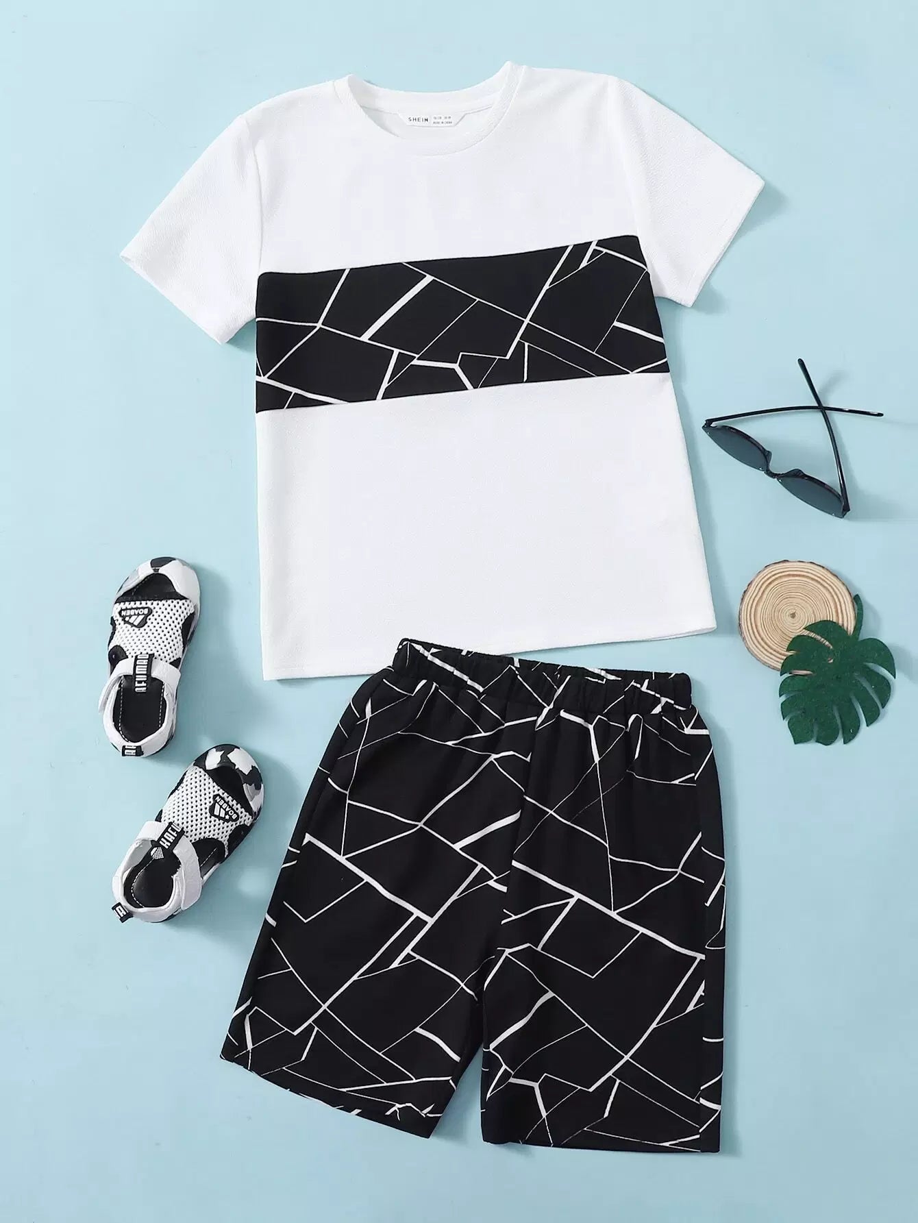 Boys Geo Print Tee & Shorts PJ Set