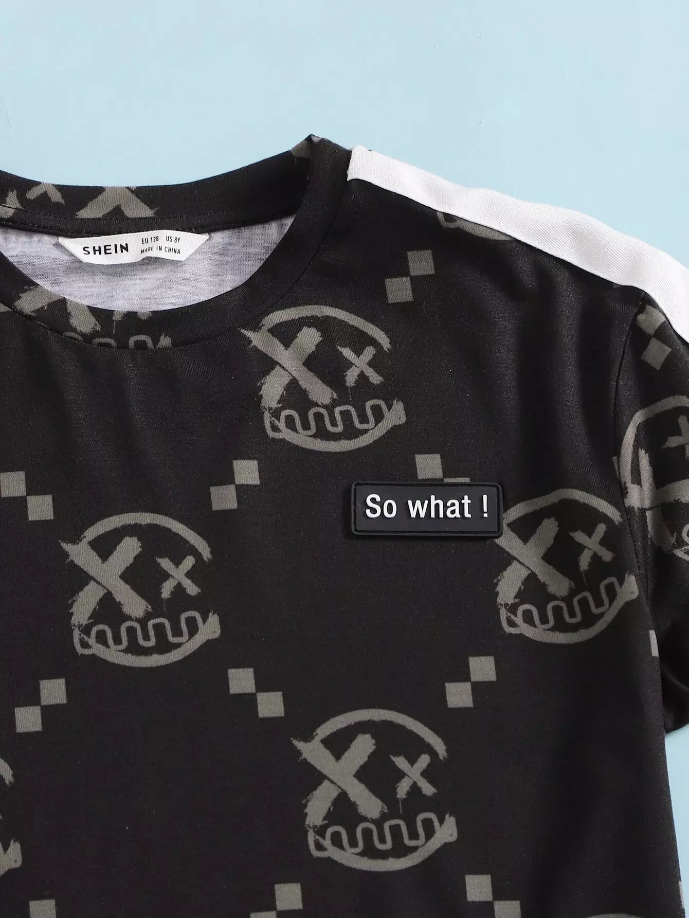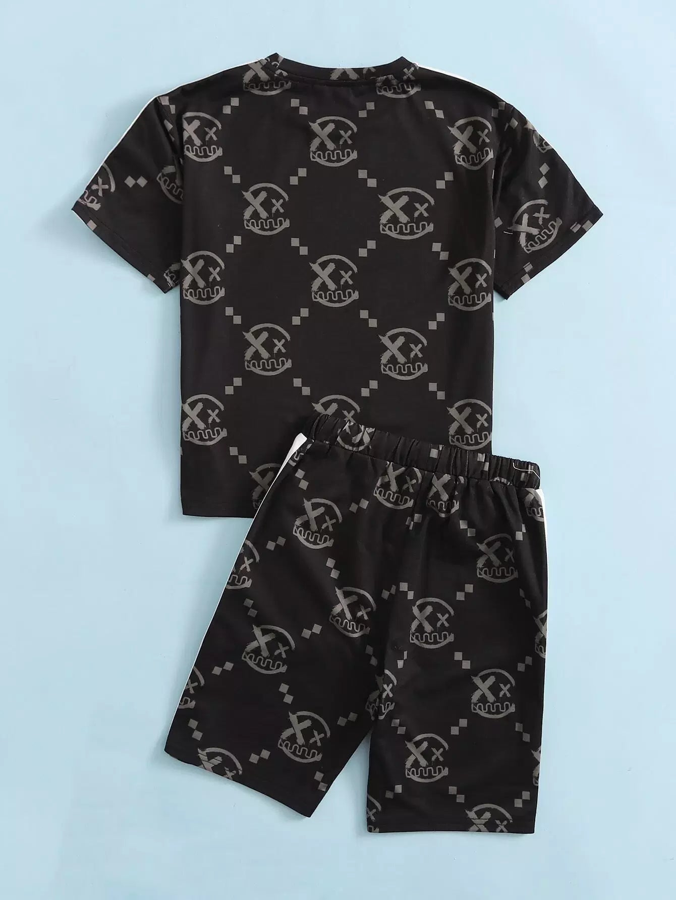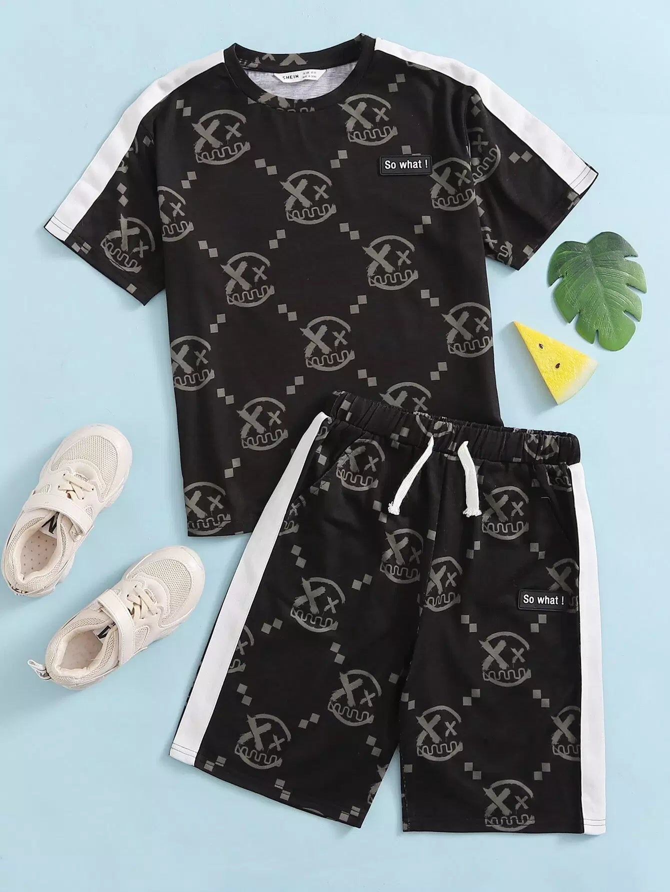 Boys Graphic Print Contrast Sideseam Tee and Shorts Set