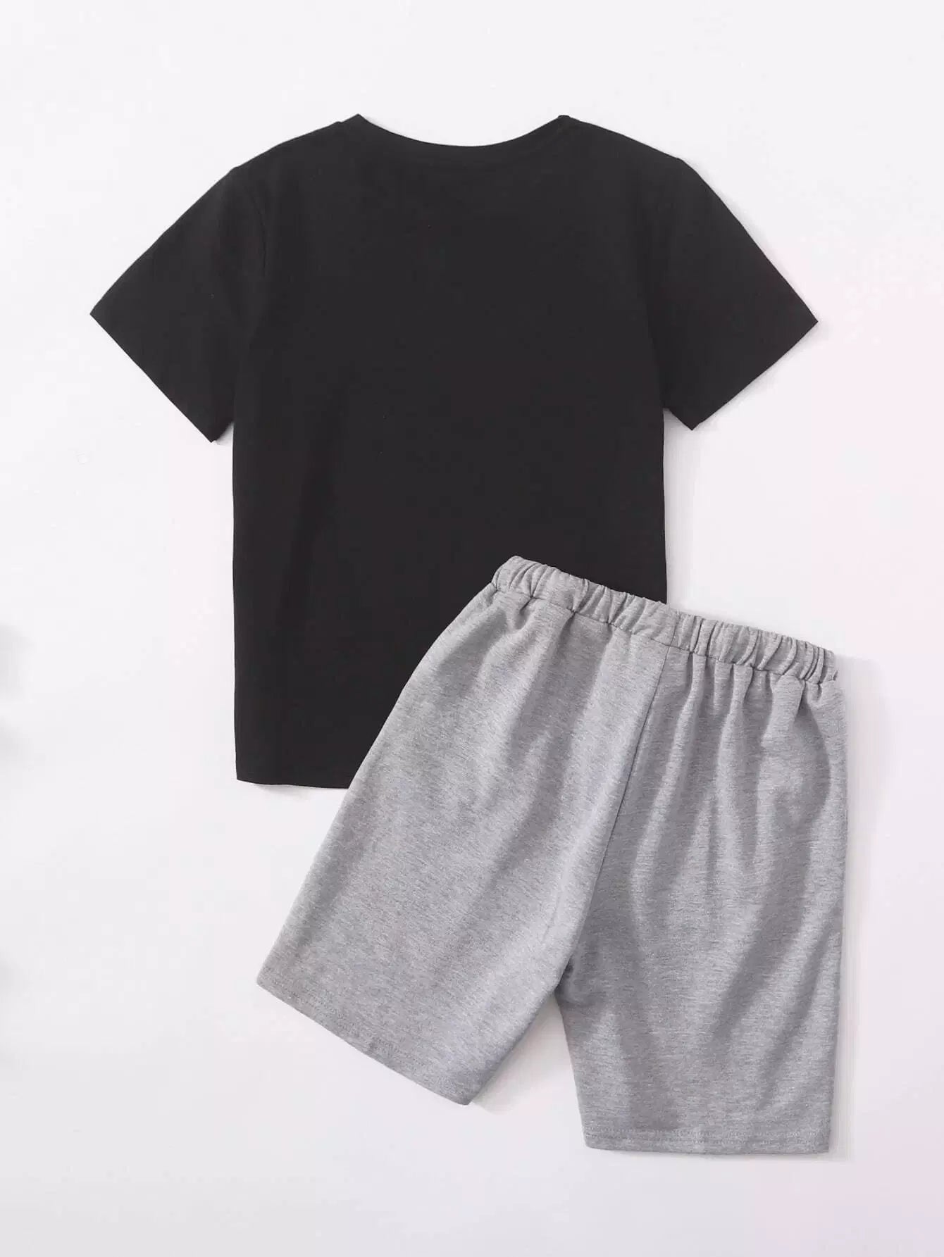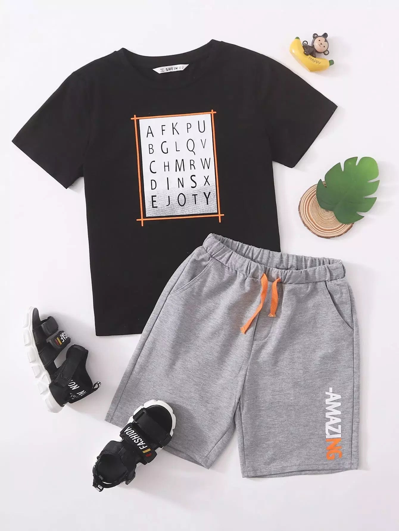 Boys Letter Graphic Top & Drawstring Waist Shorts Set