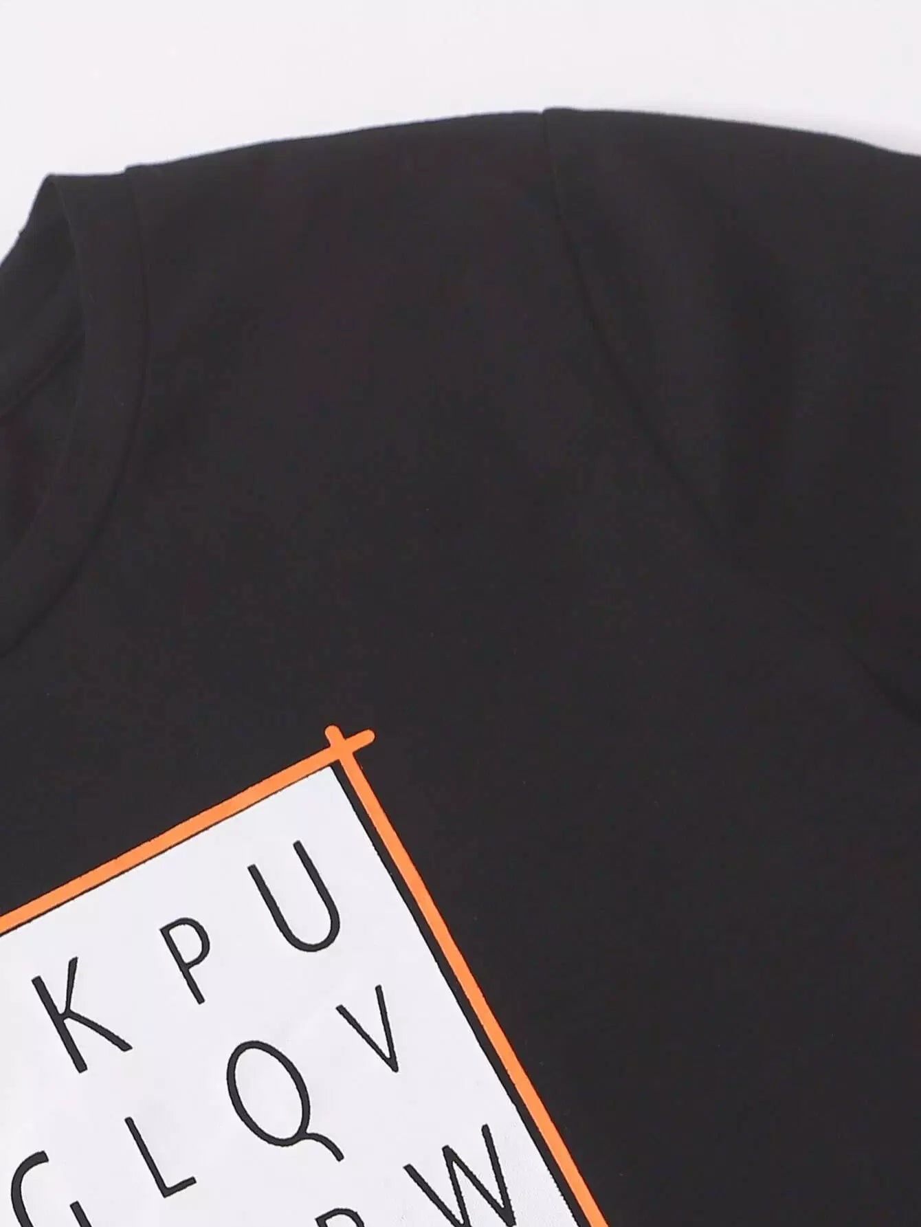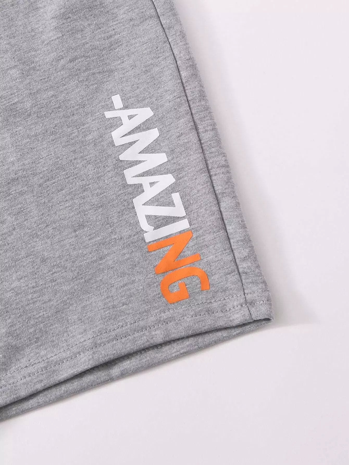 Kids - Boys Letter Graphic Top & Drawstring Waist Shorts Set