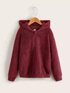 Boys Quarter Zip Drop Shoulder Flannel Hoodie