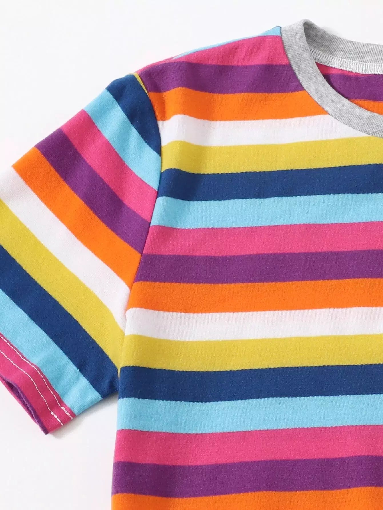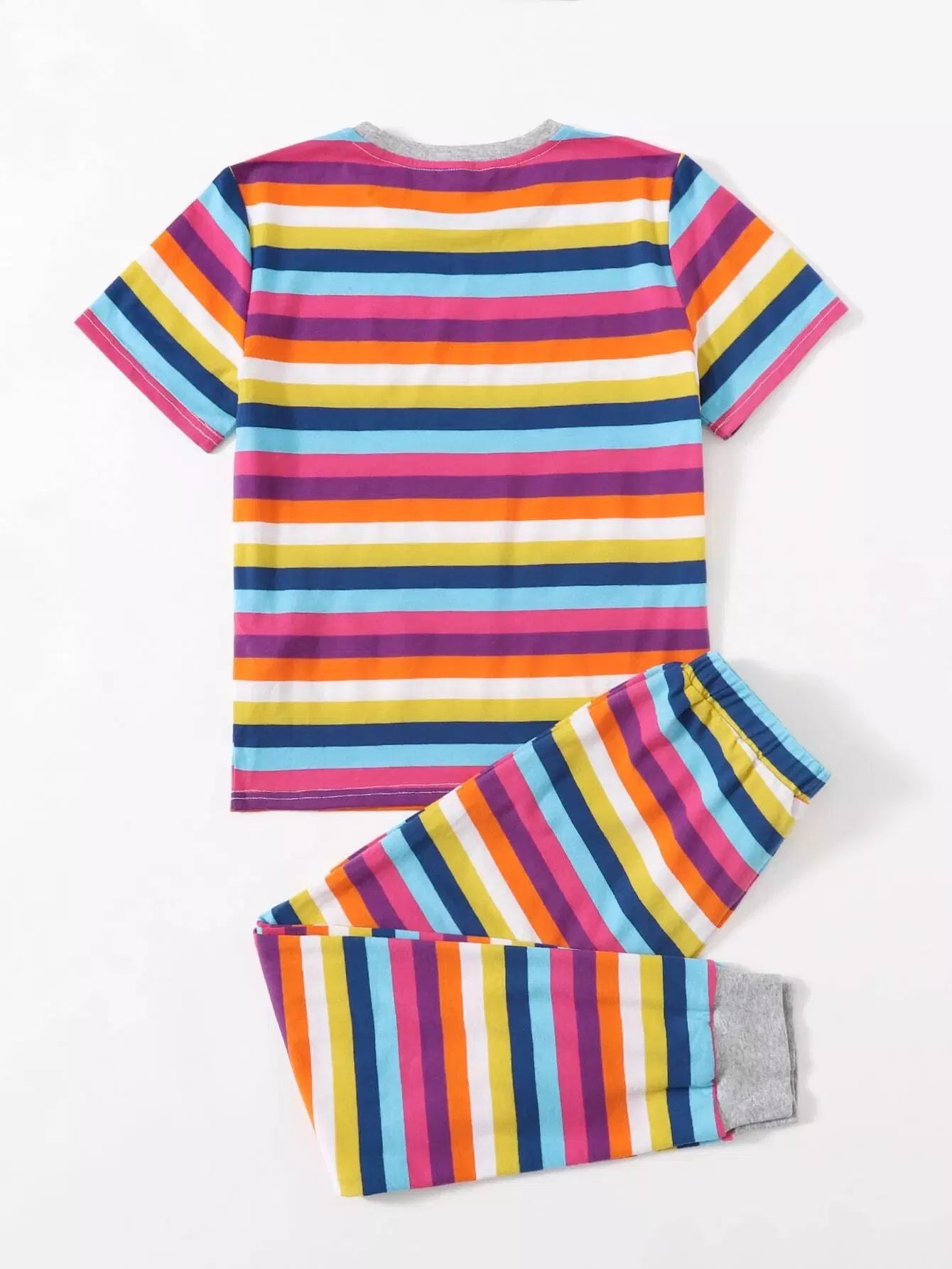 Boys Rainbow Stripe Tee & Joggers PJ Set