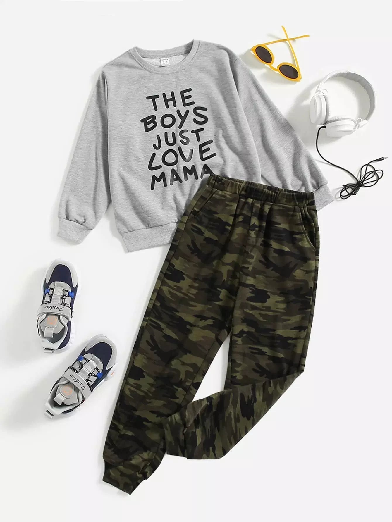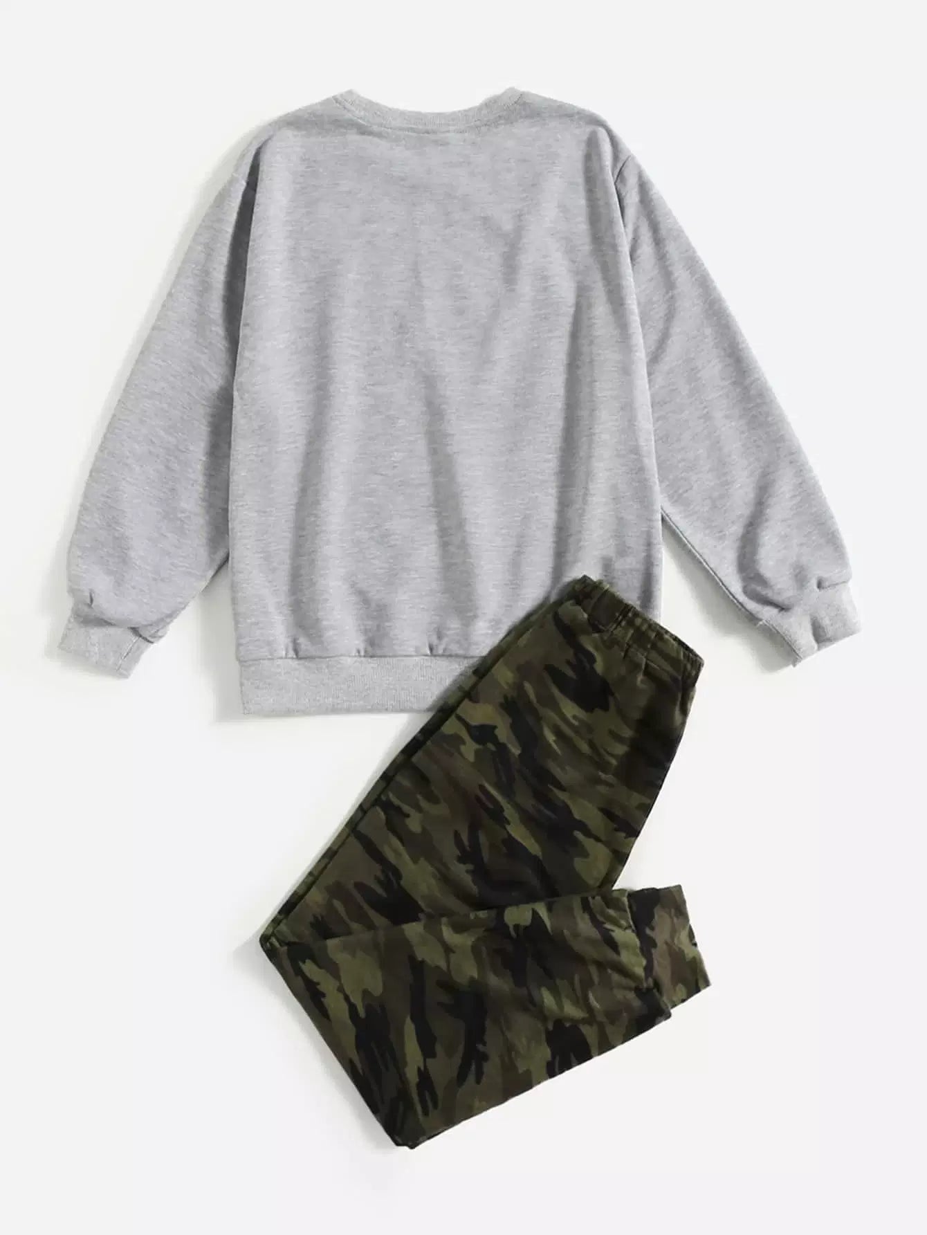 Boys Slogan Graphic Pullover & Camo Print Sweatpants