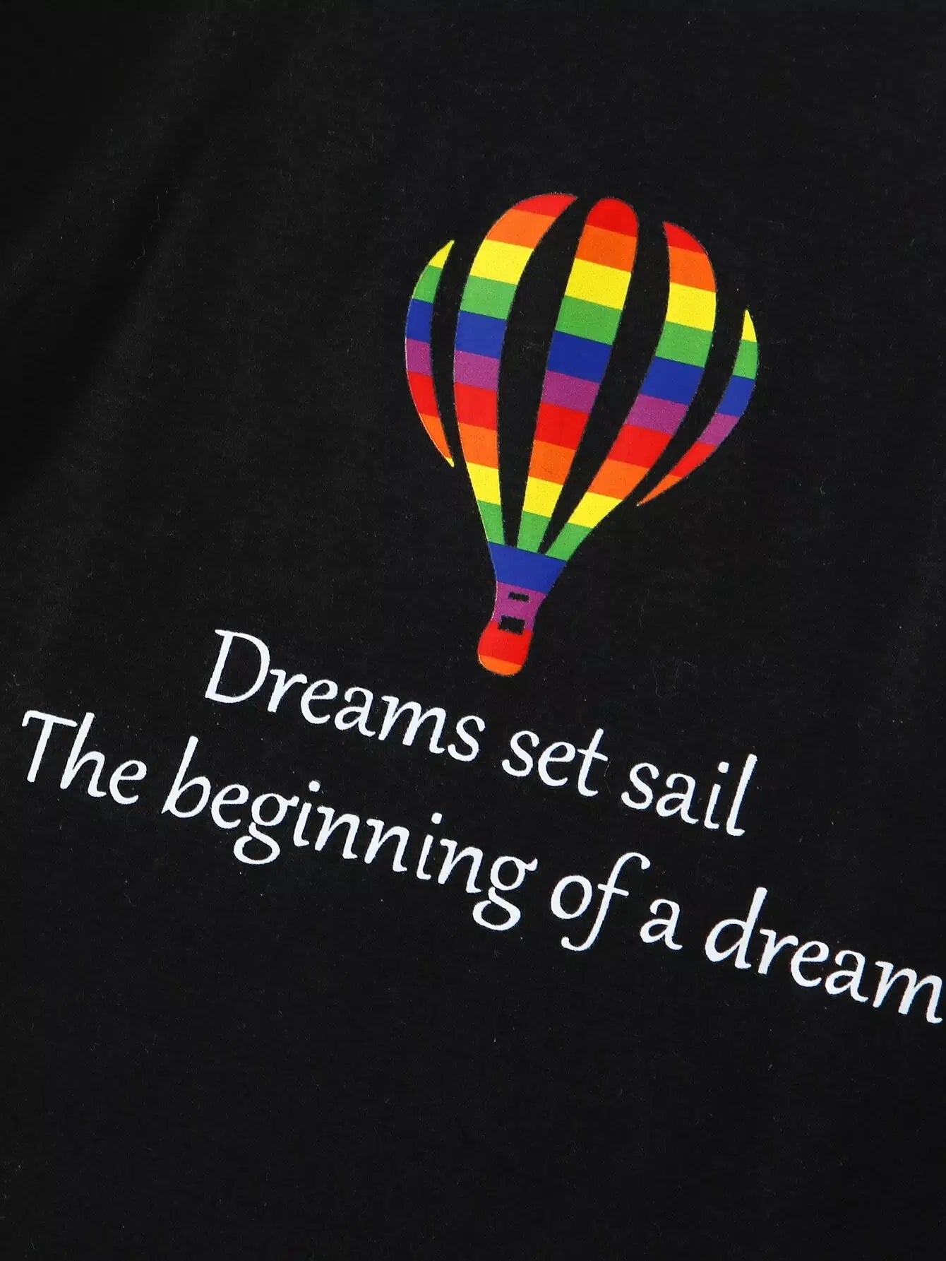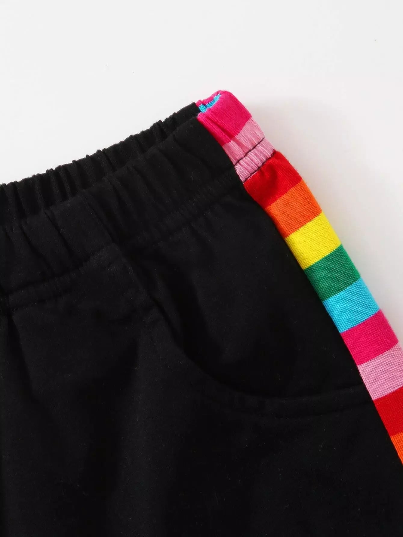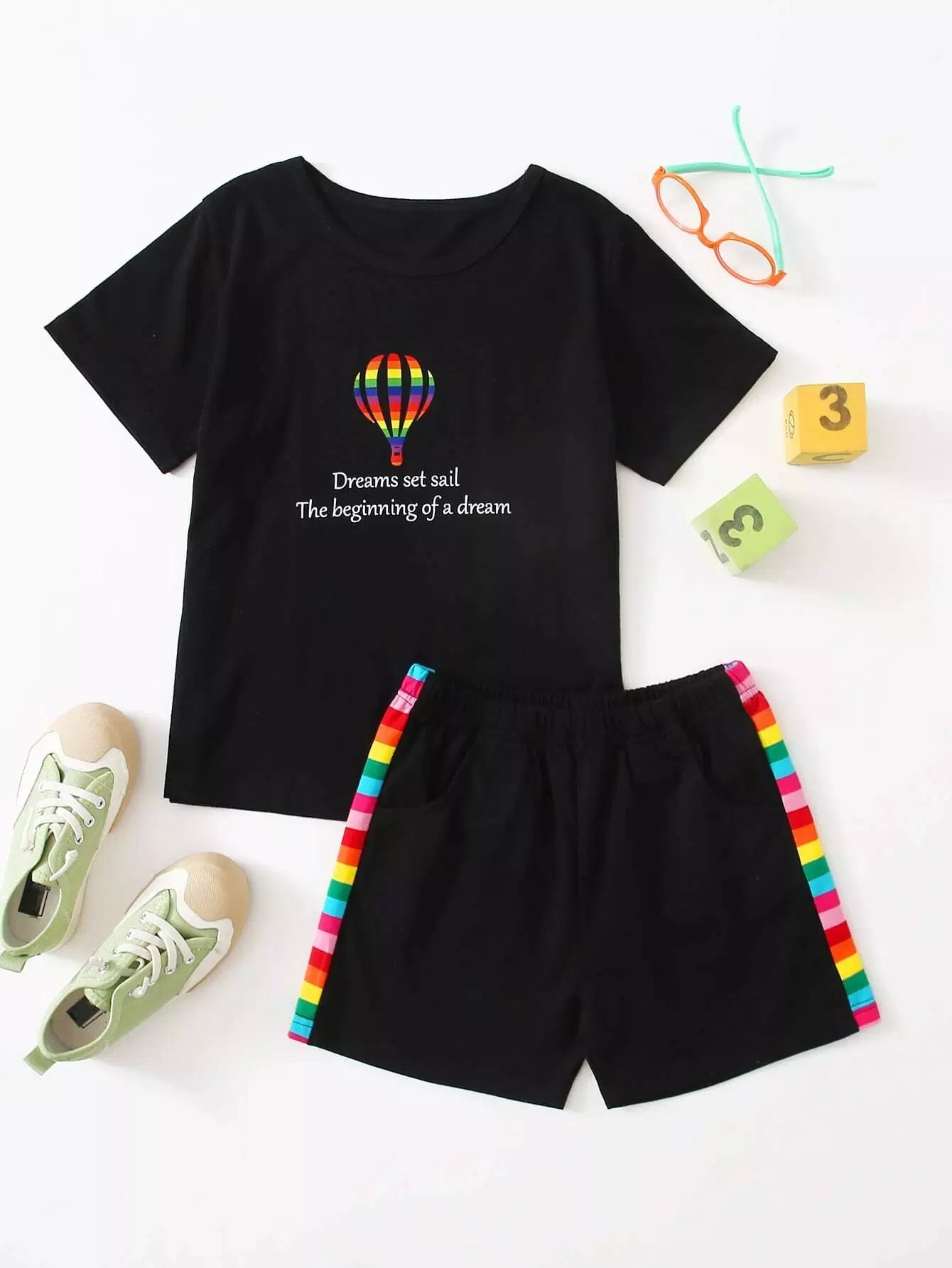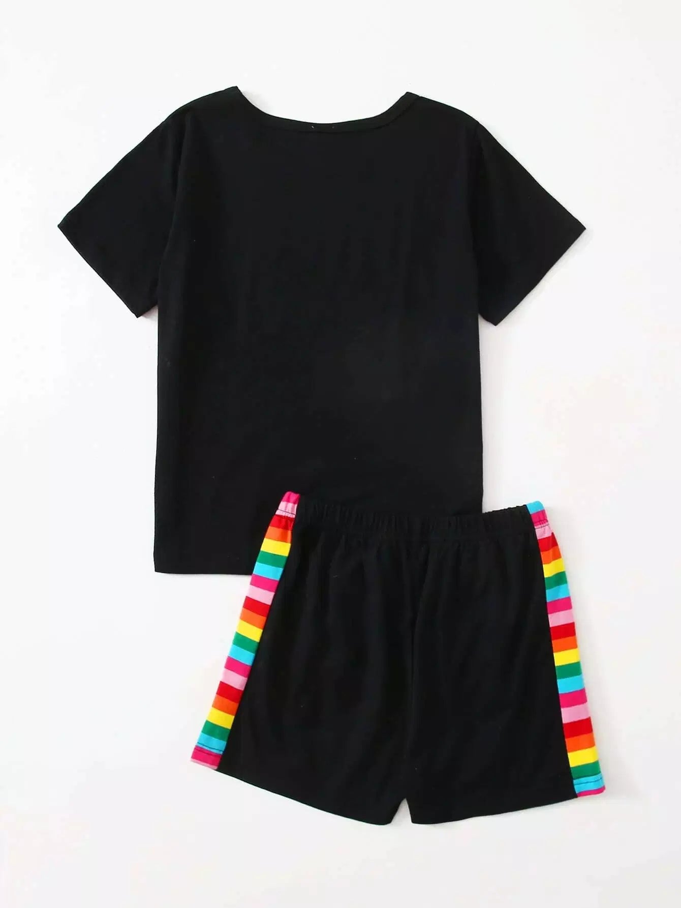 Boys Slogan Graphic Tee With Rainbow Striped Side Shorts