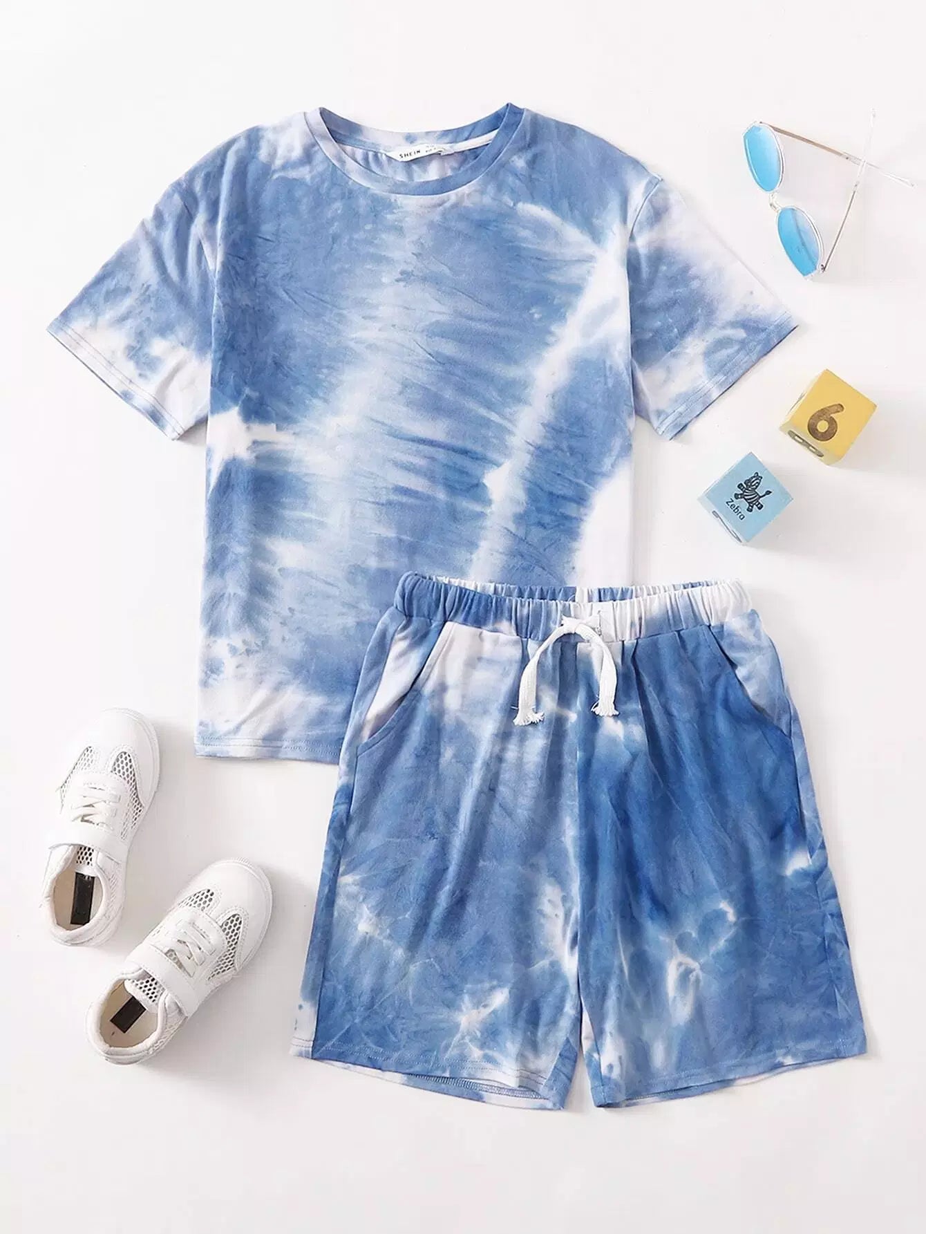Boys Tie Dye Top & Drawstring Waist Shorts Set