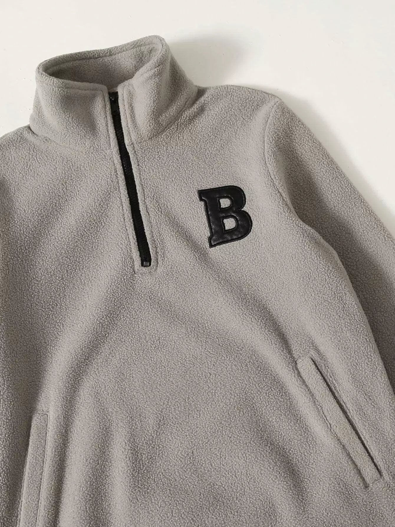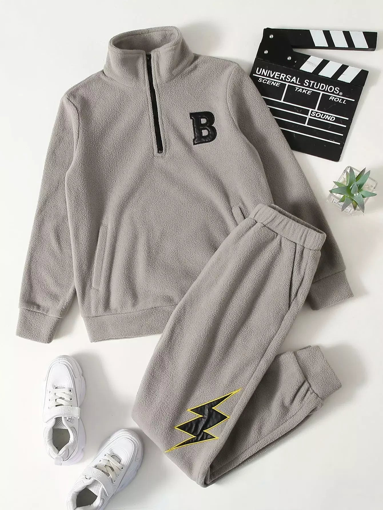 Boys Zipper Half Placket Embroidered Teddy Sweatshirt & Pants Set