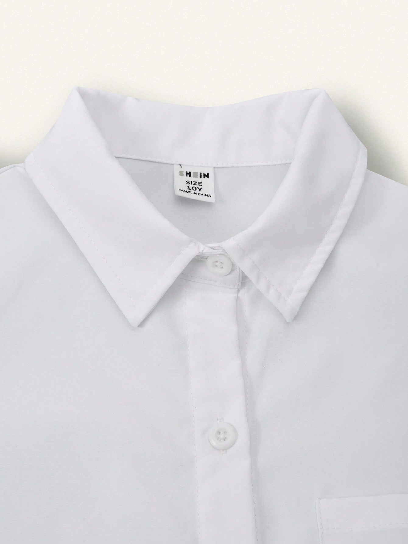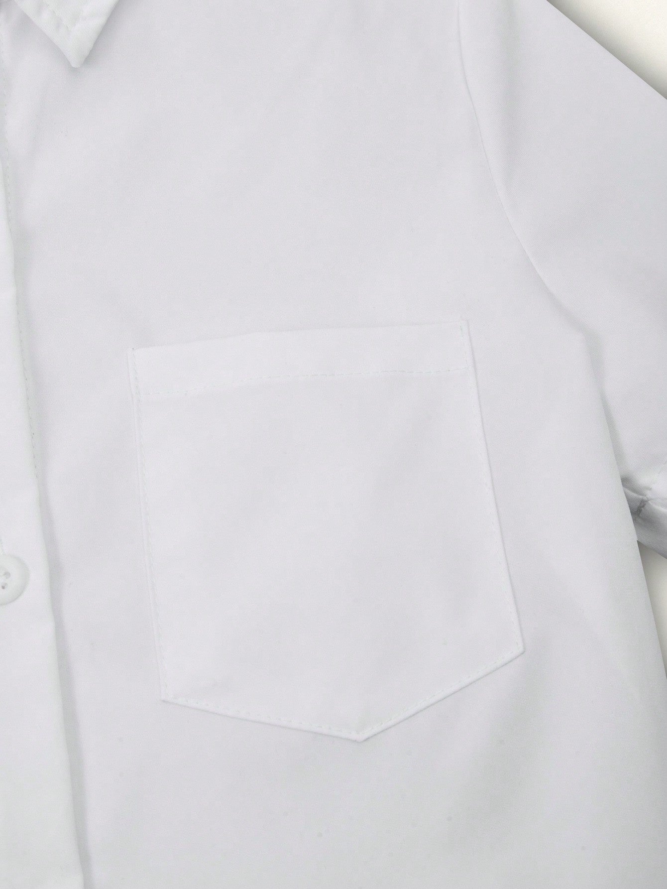 kids SHEIN 3pcs Boys Collegiate Style School Uniform Set: White Short Sleeve Shirt