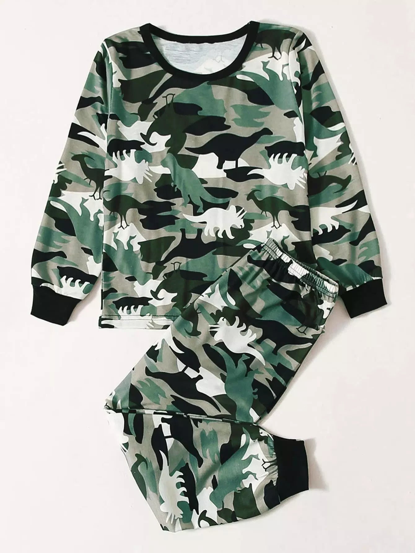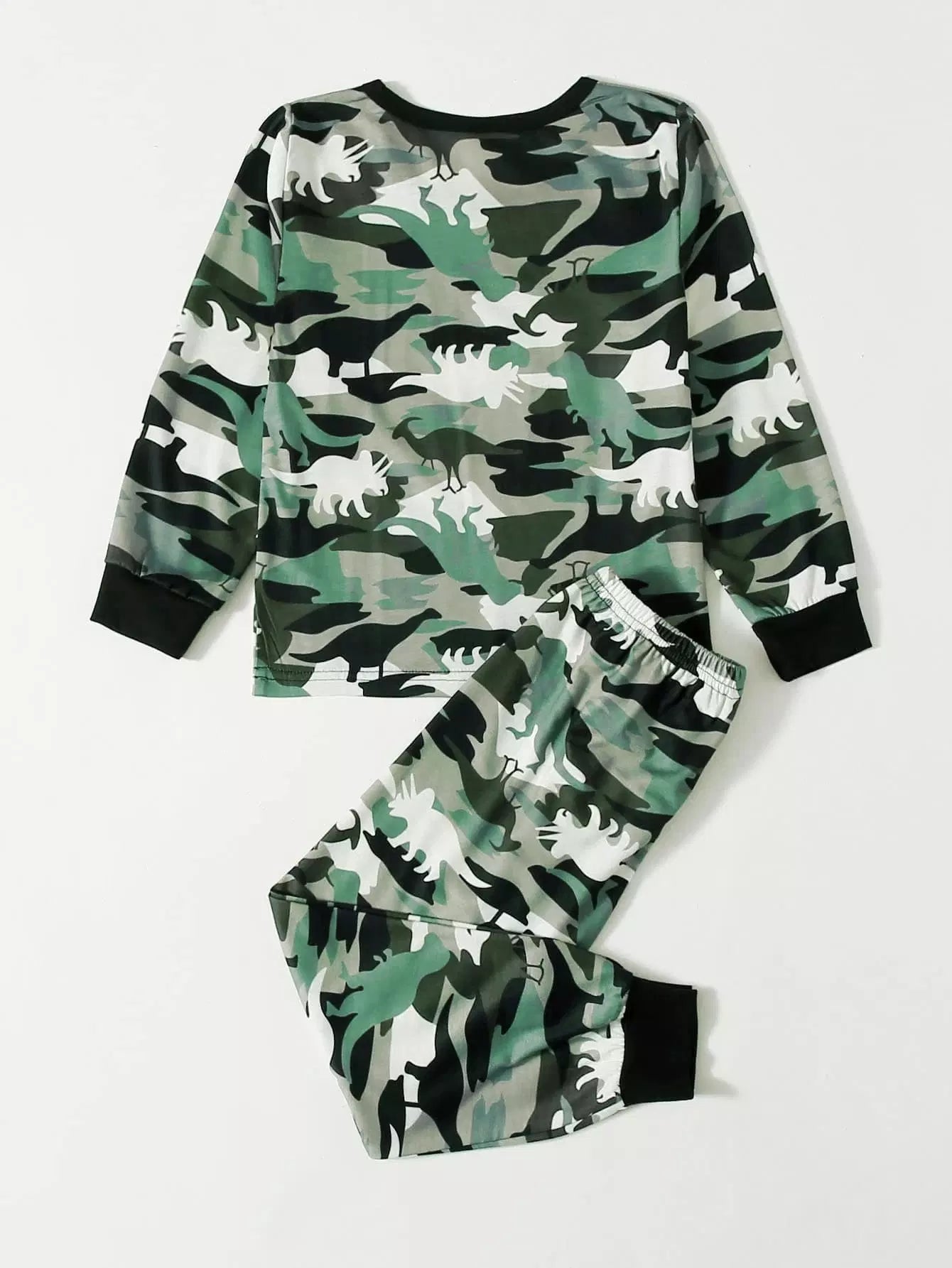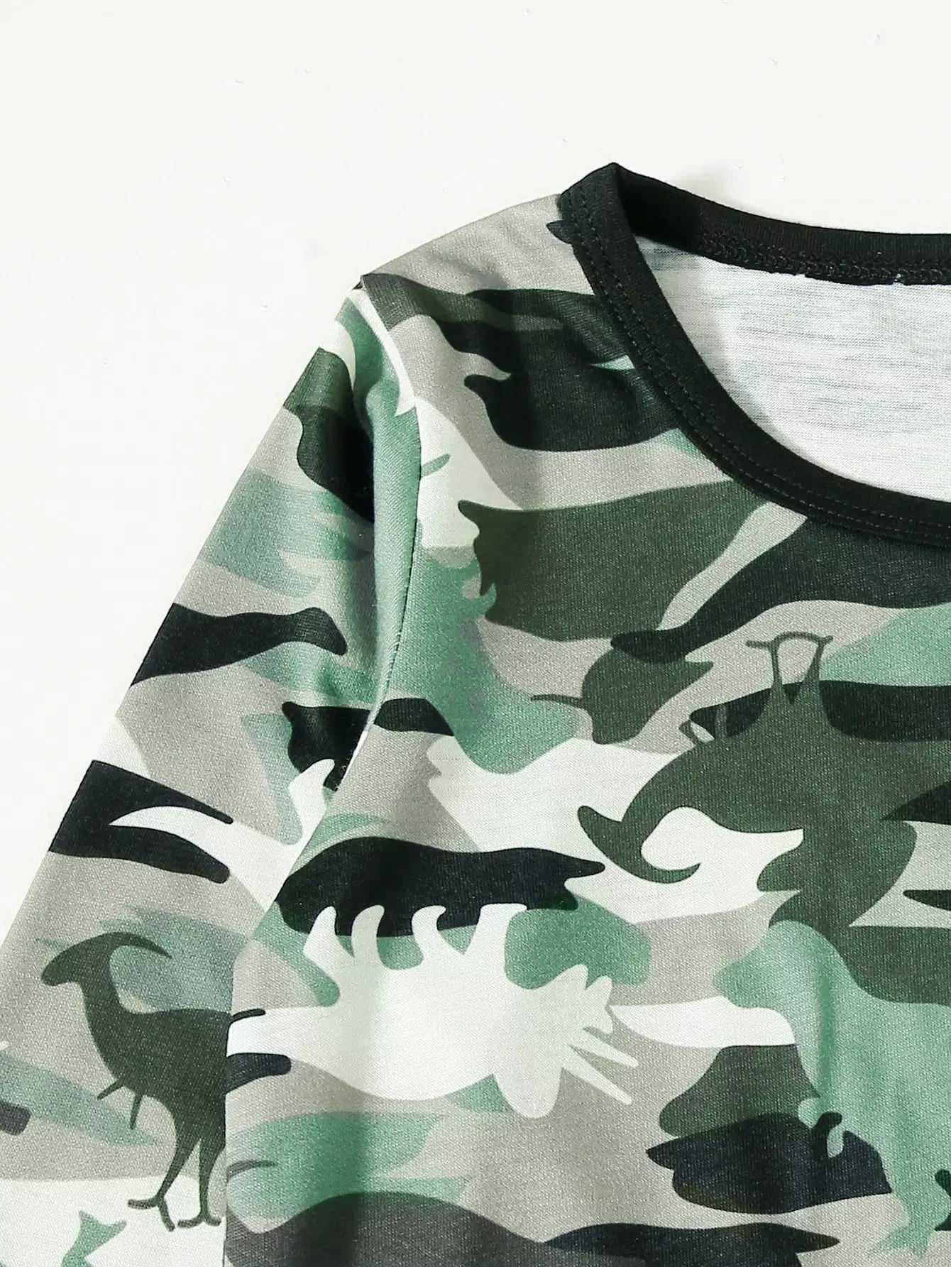 Toddler Boys Camo And Dinosaur Print PJ Set