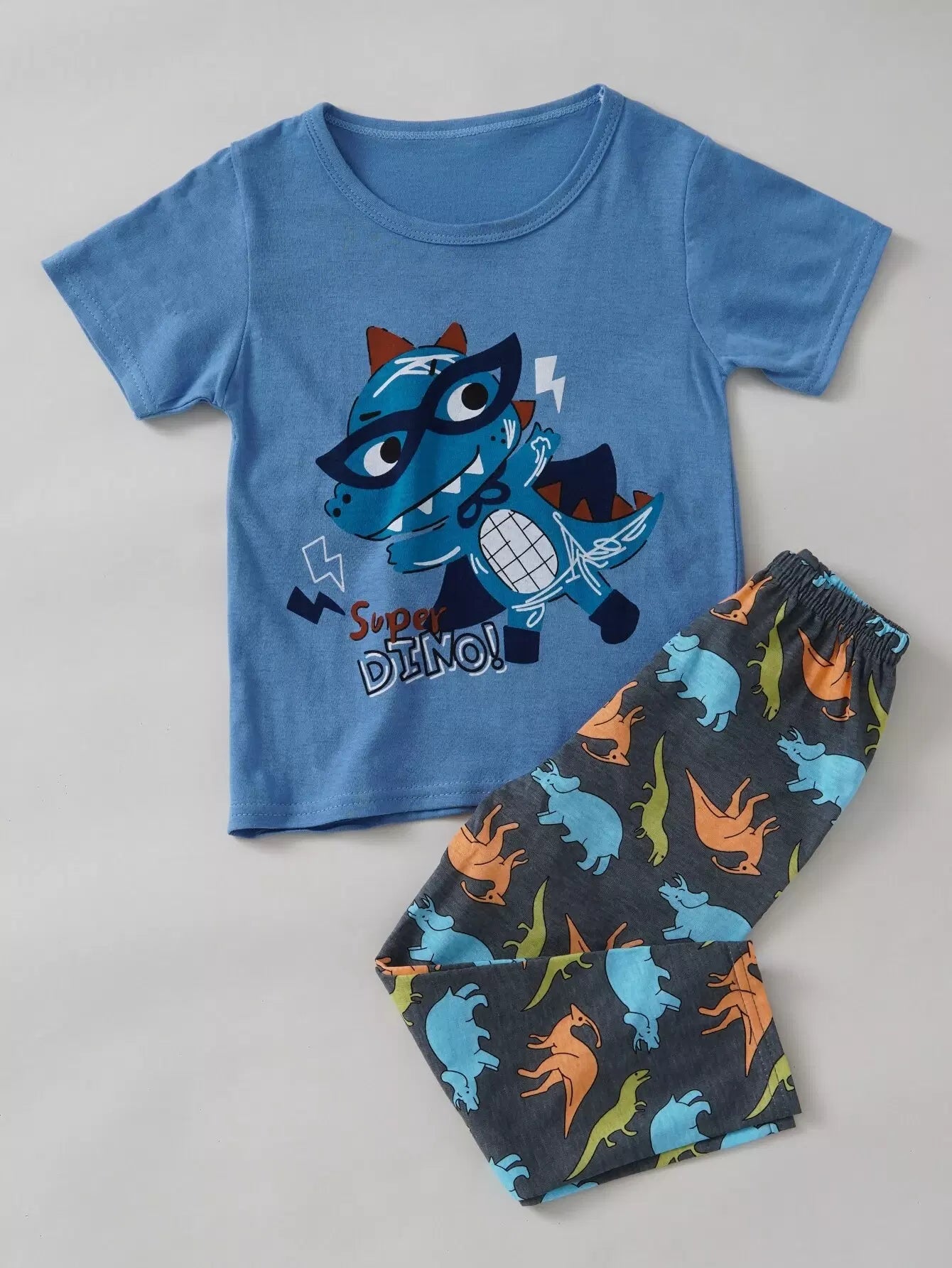Toddler Boys Cartoon Dinosaur Print PJ Set