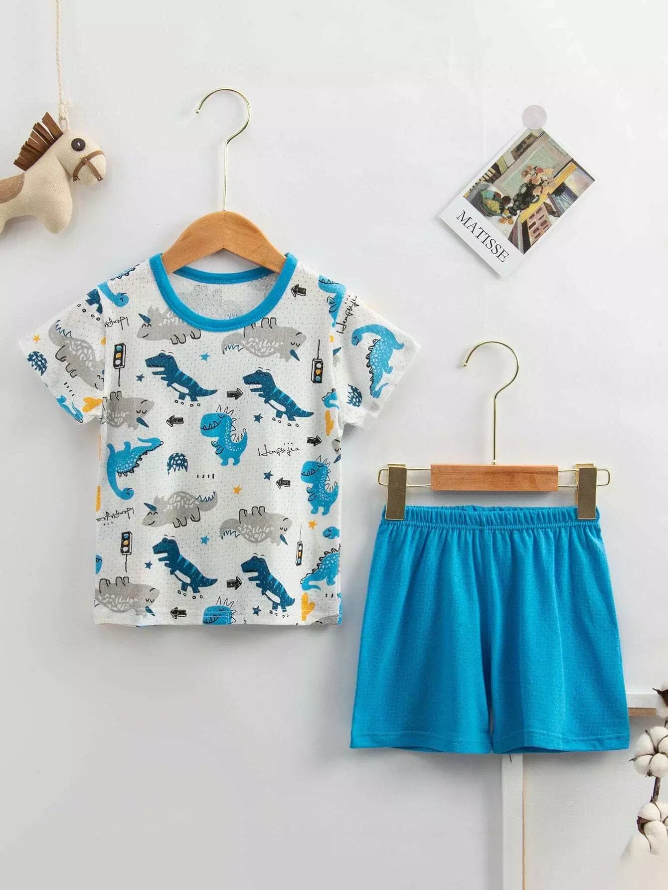 Toddler Boys Cartoon Dinosaur Print Tee & Shorts PJ Set