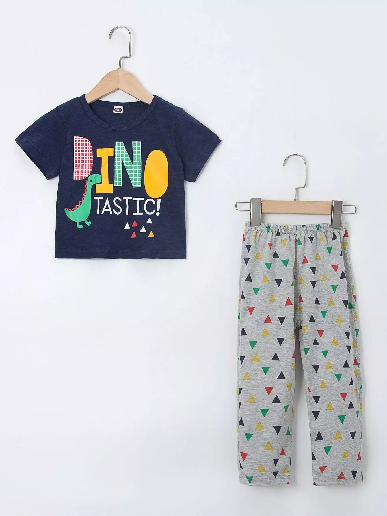 Toddler Boys Cartoon & Letter Graphic PJ Set