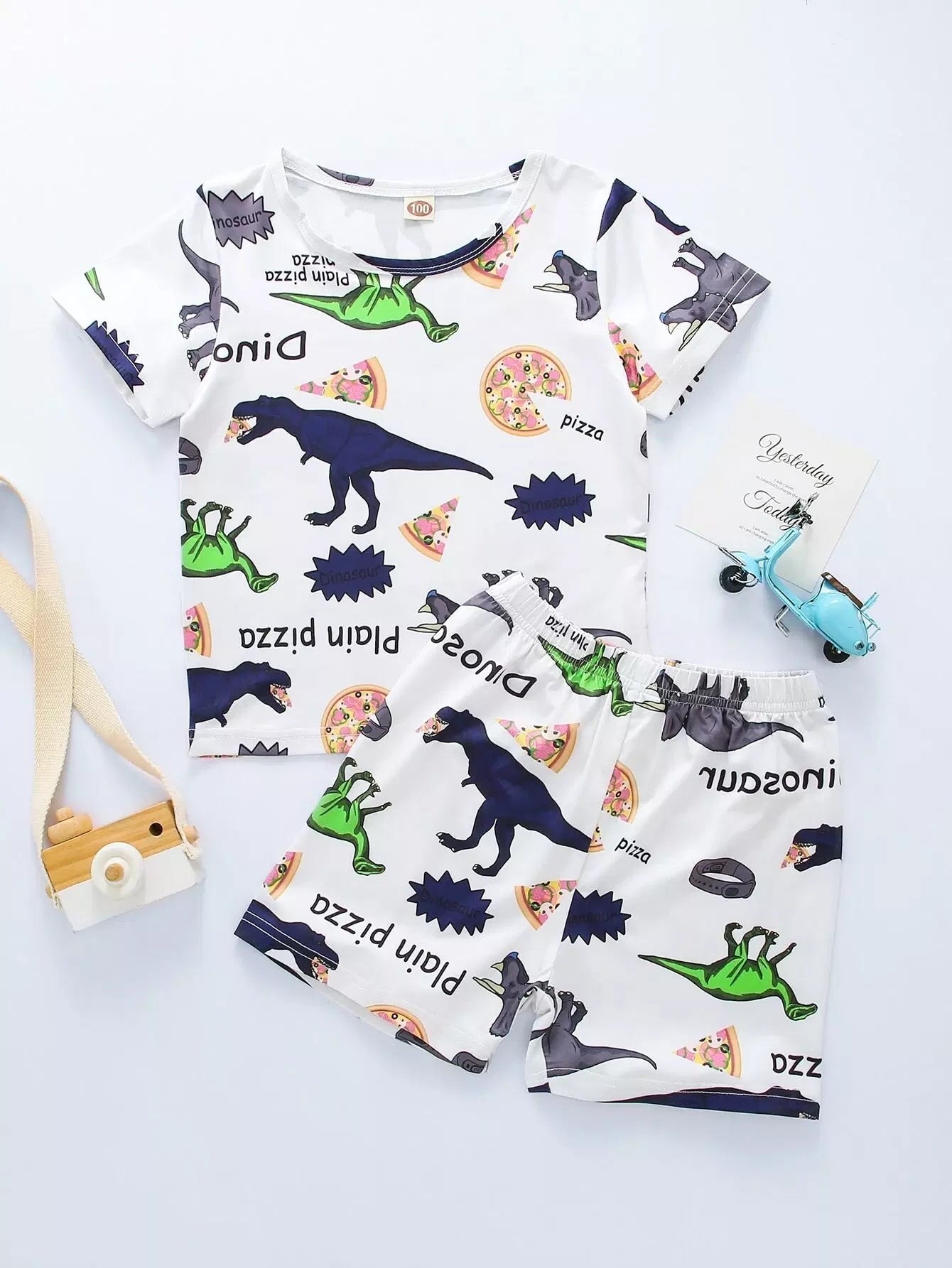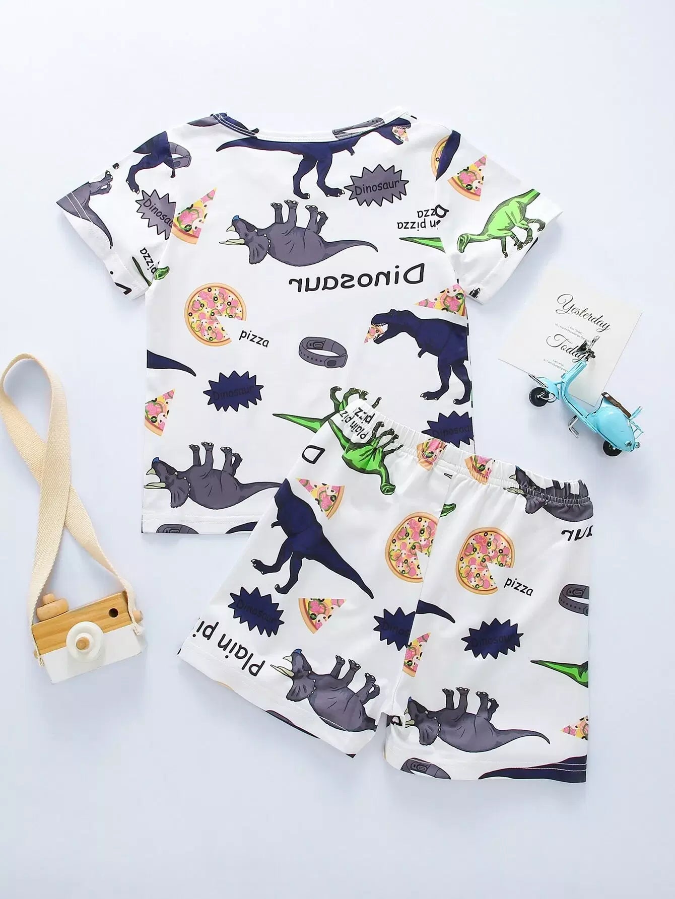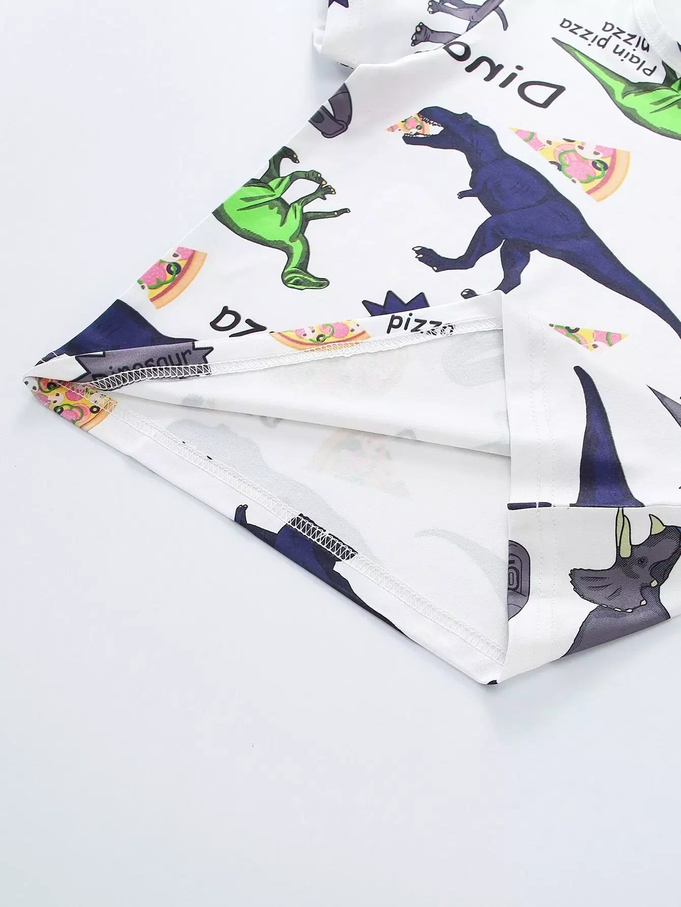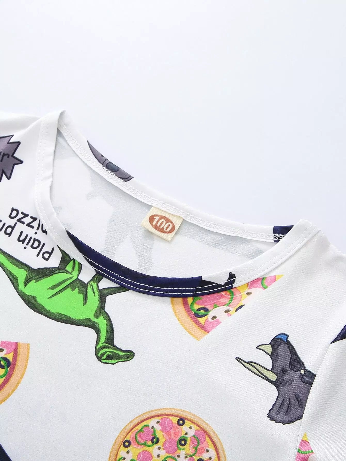 Toddler Boys Dinosaur And Pizza Print PJ Set