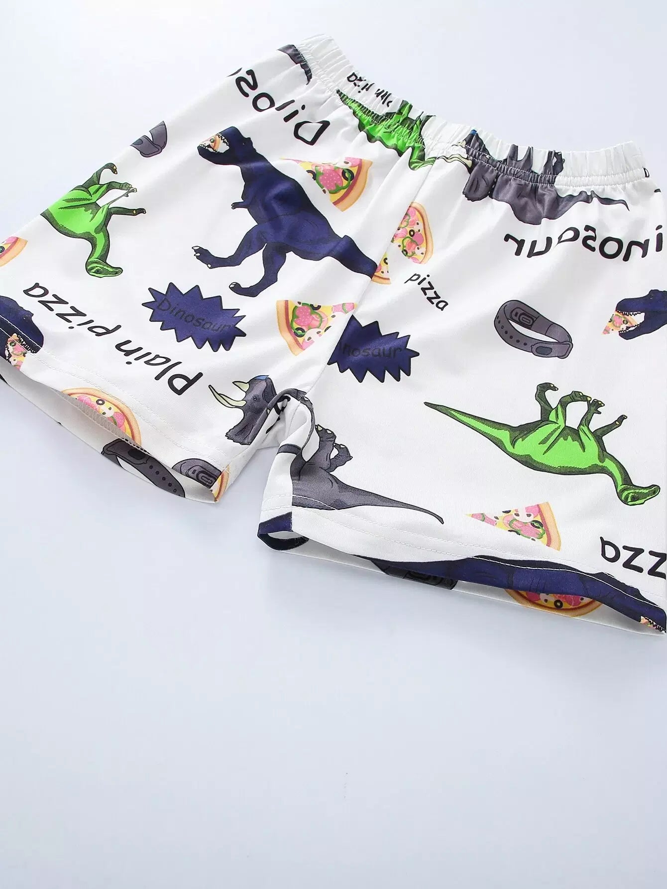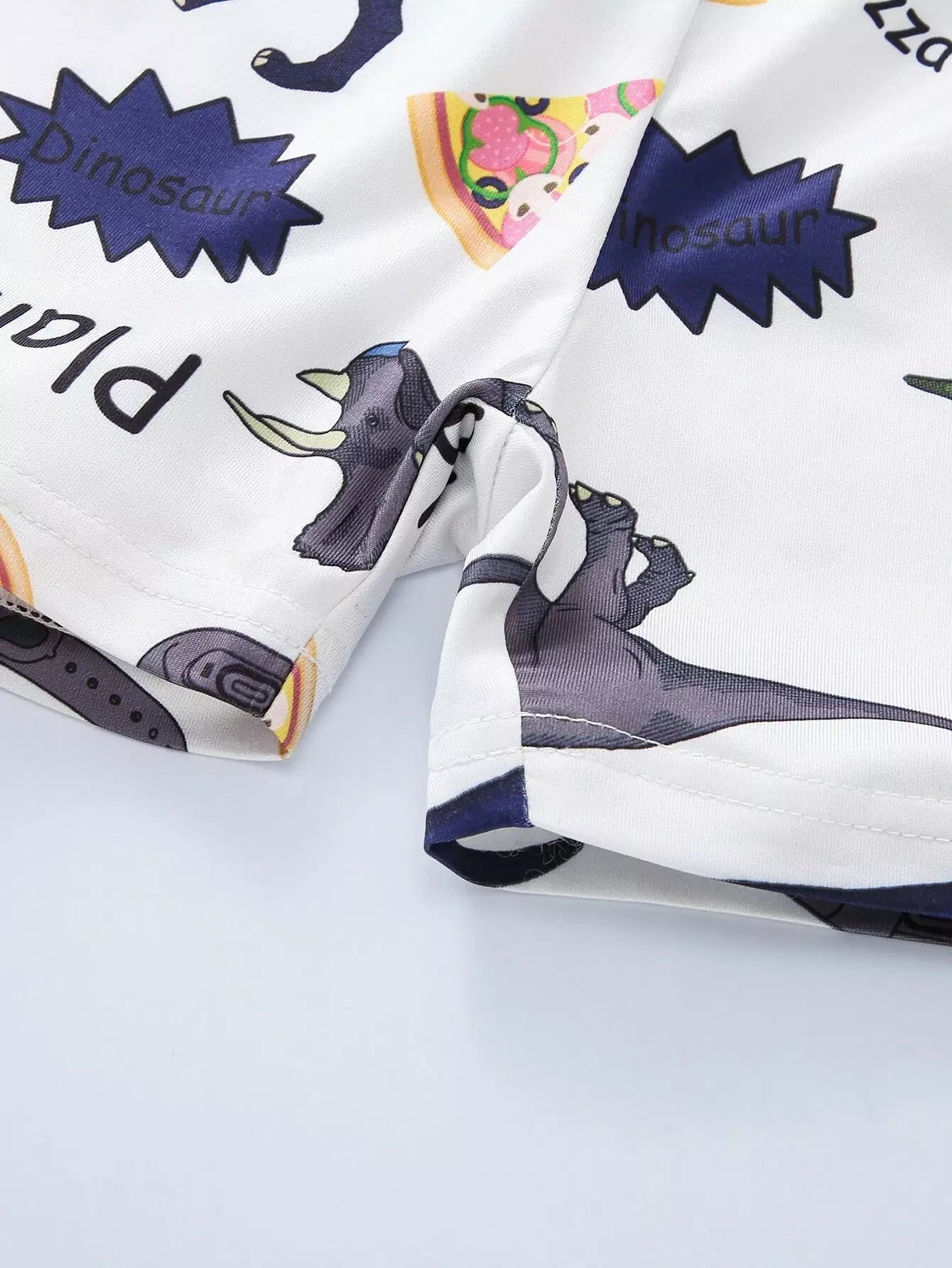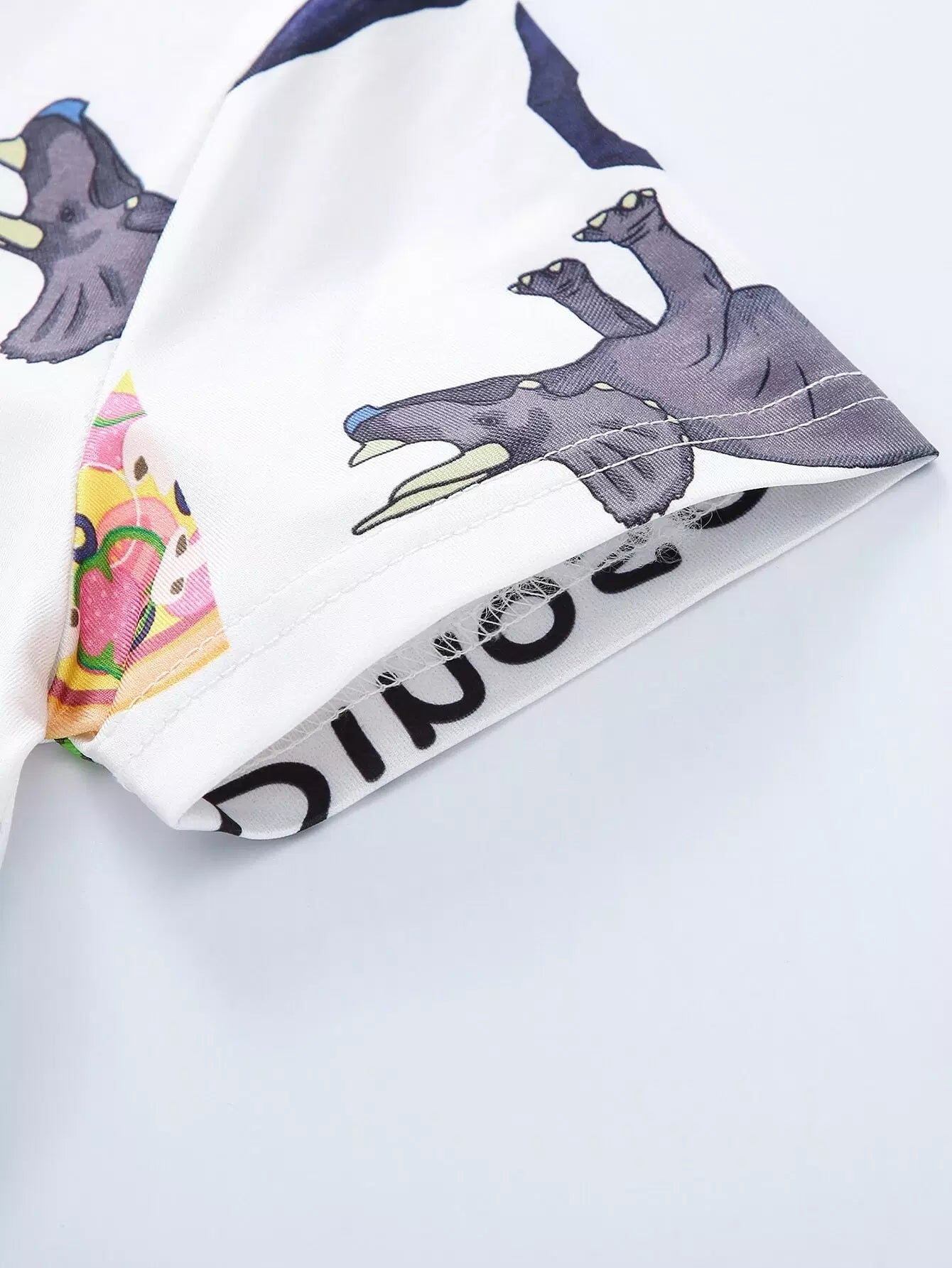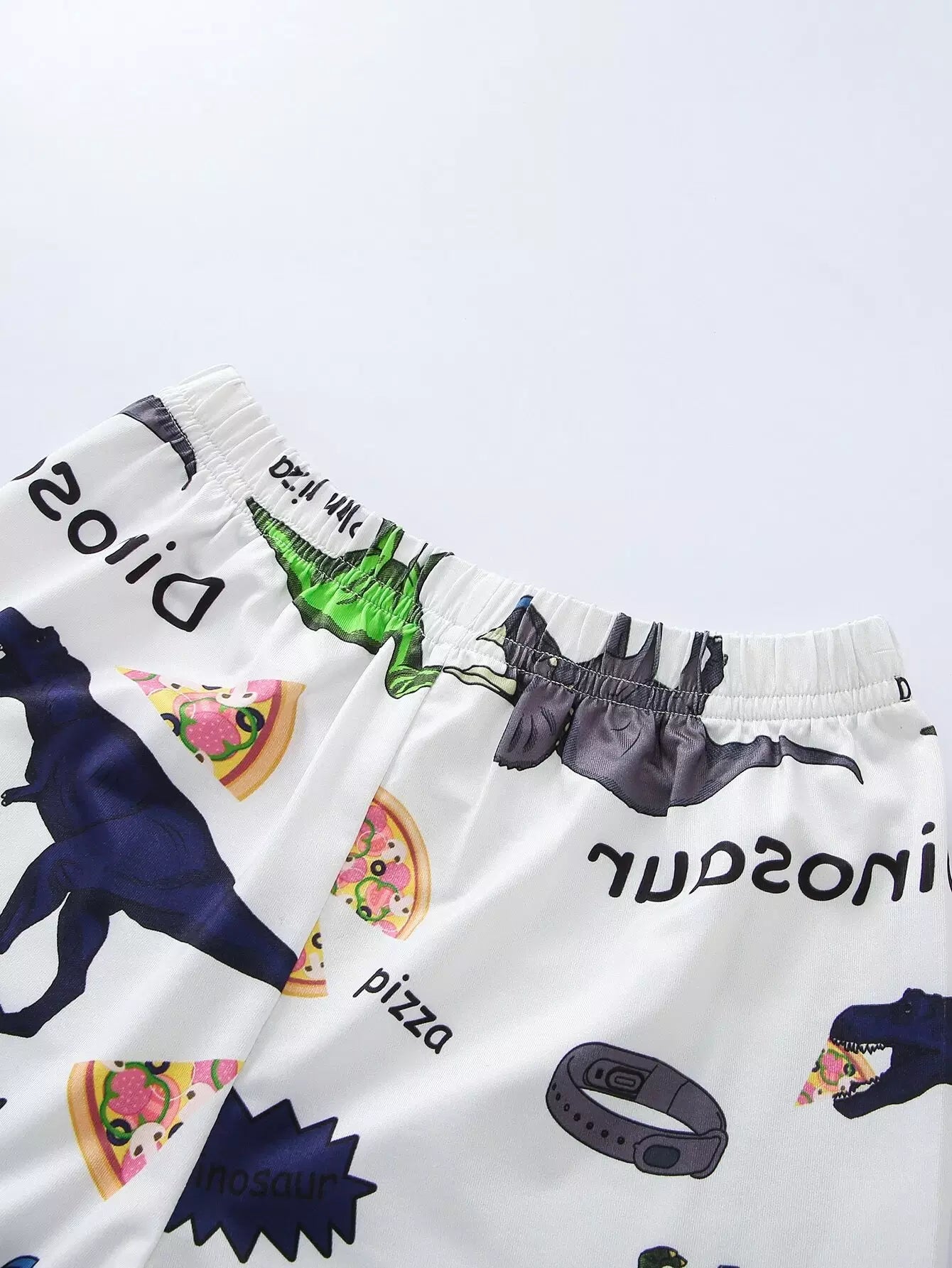 Toddler Boys Dinosaur And Pizza Print PJ Set