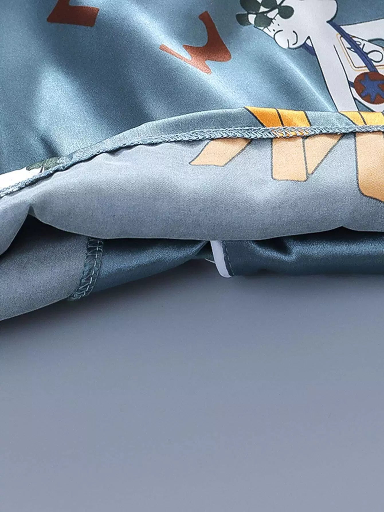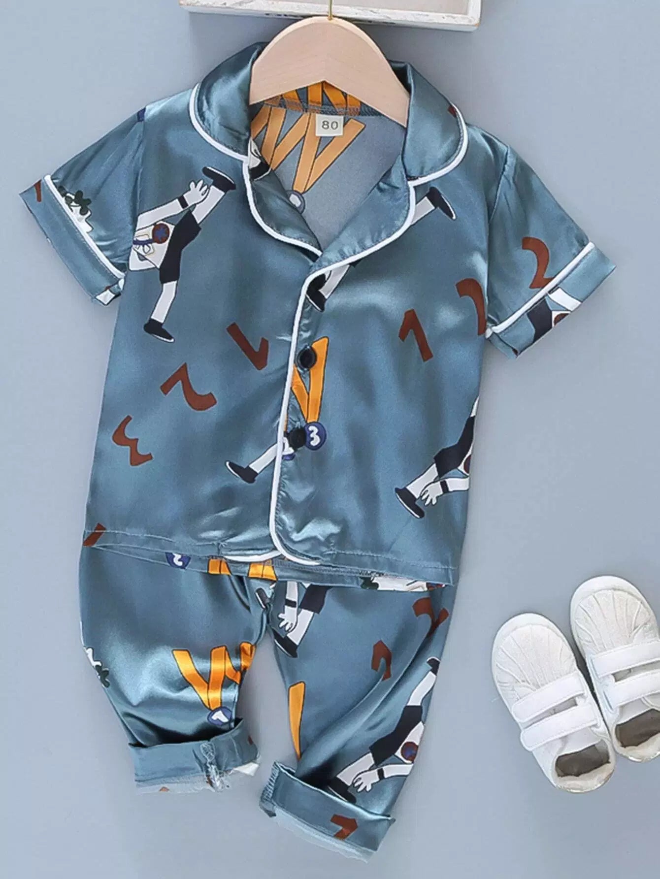Toddler Boys Number And Cartoon Graphic Satin PJ Set