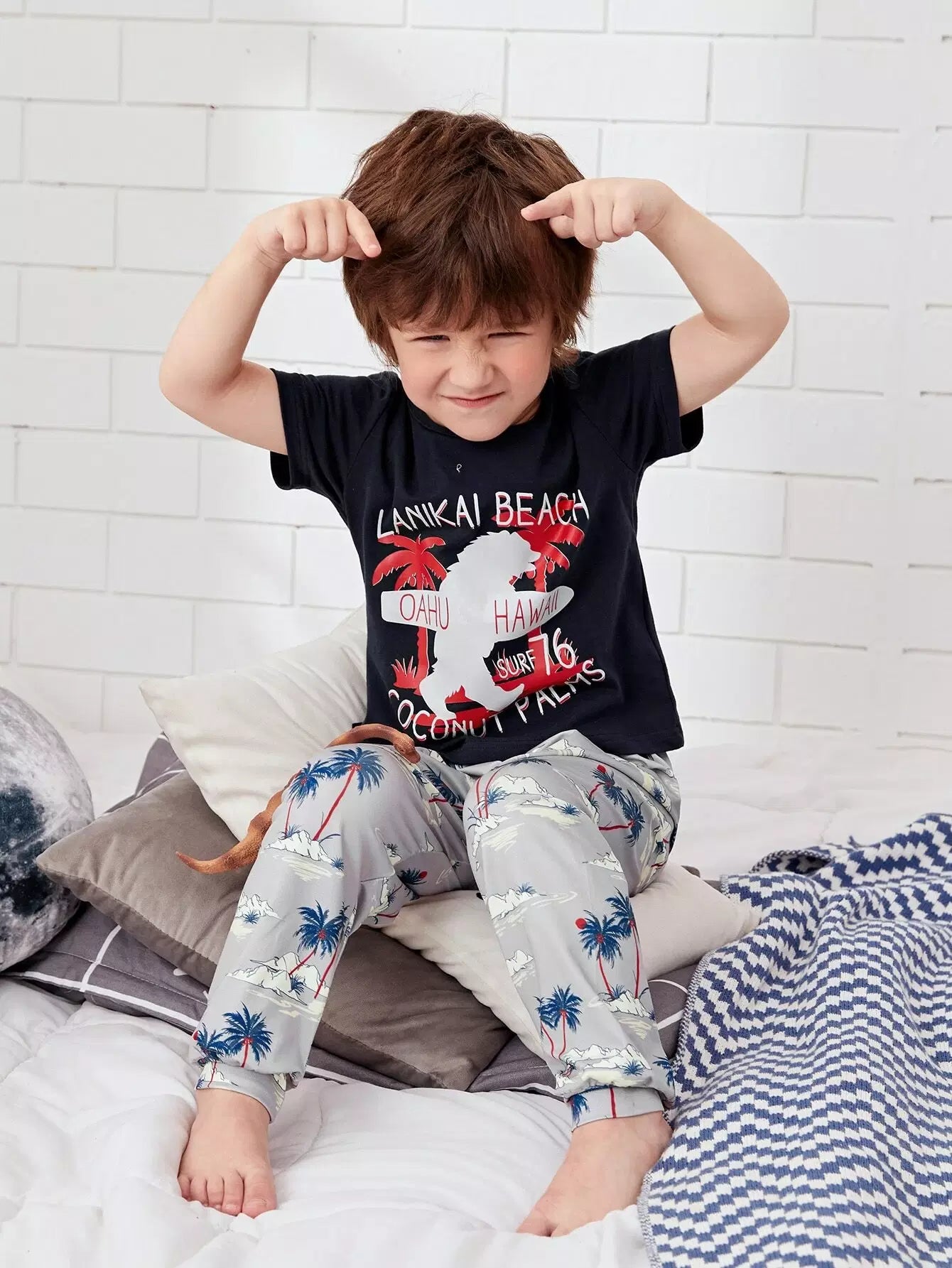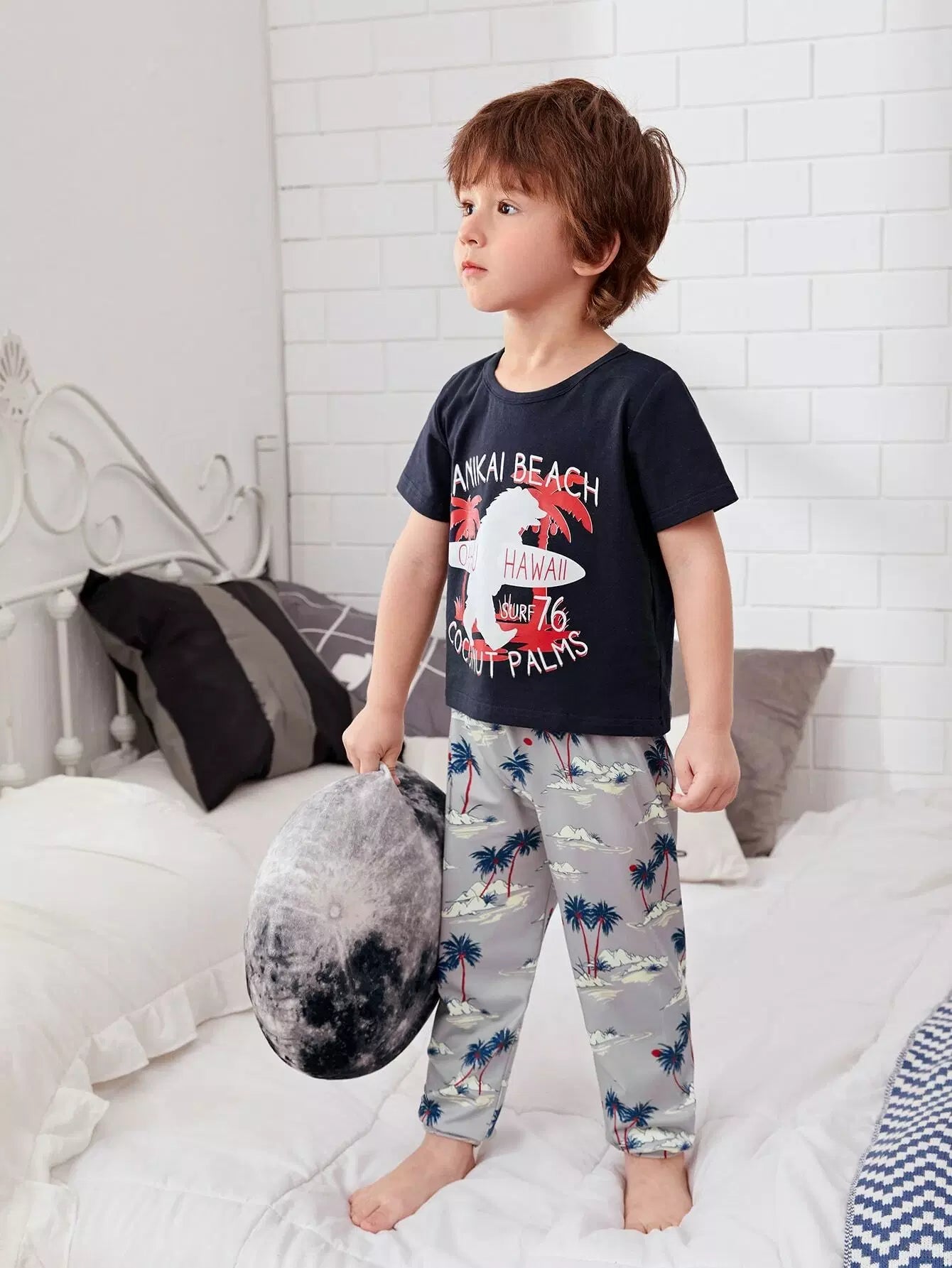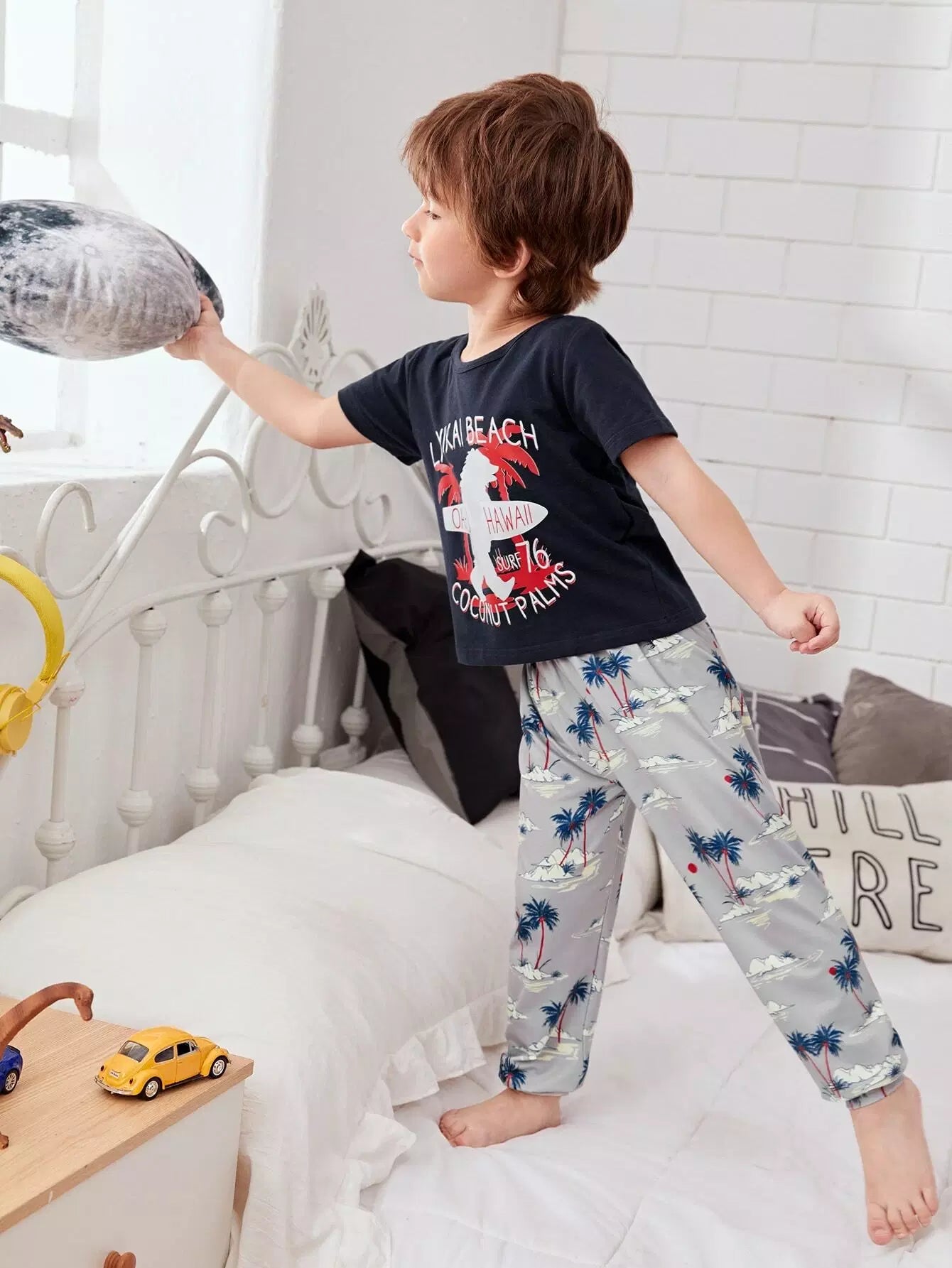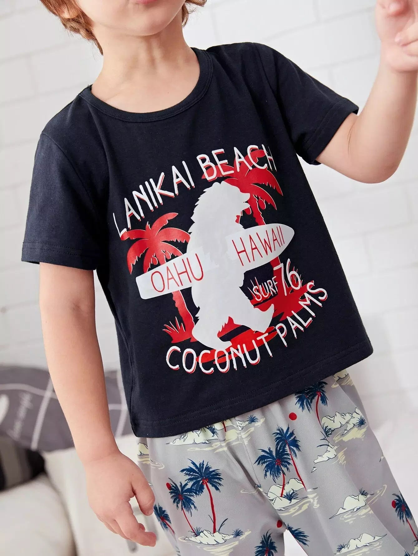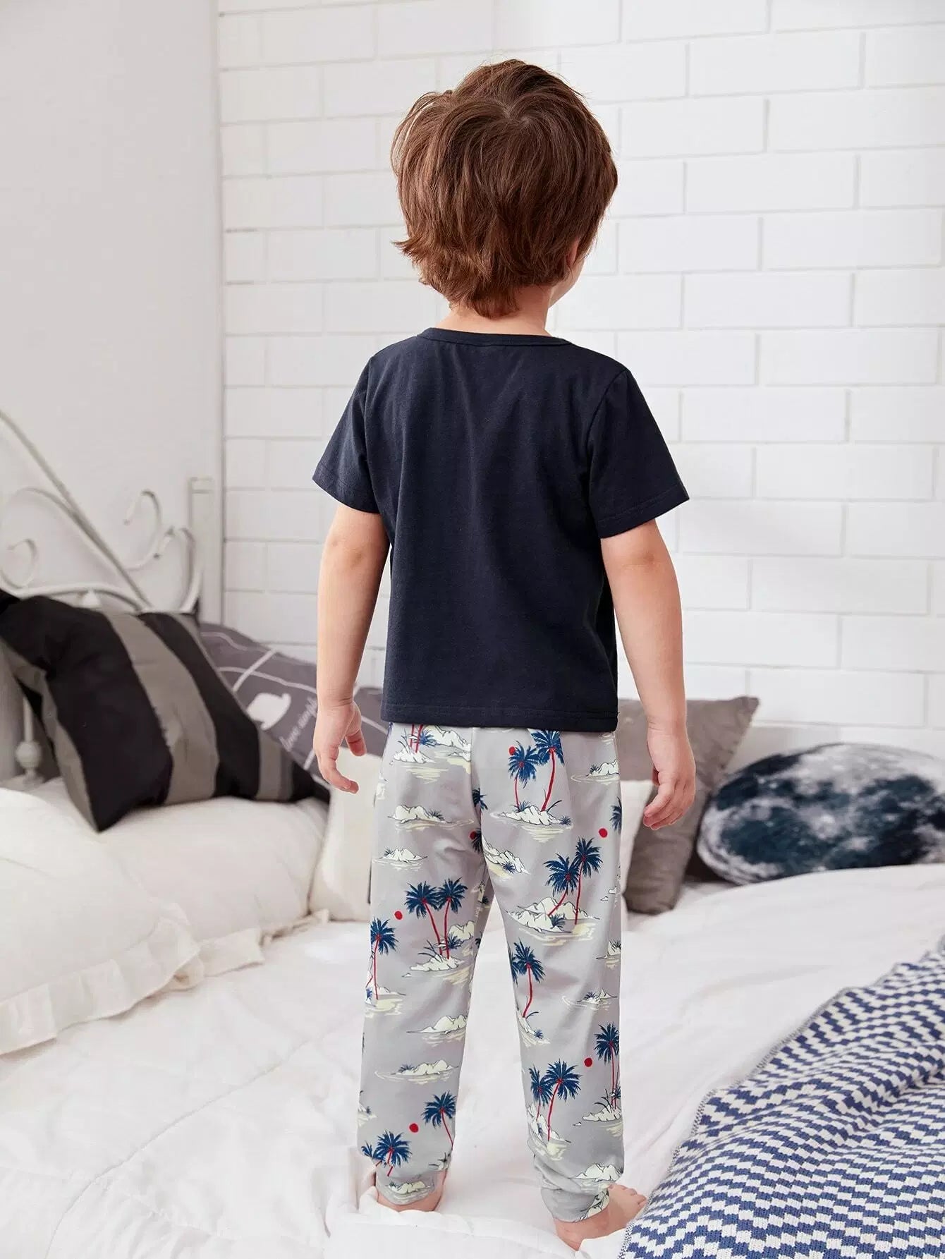 Toddler Boys Tropical & Letter Graphic PJ Set