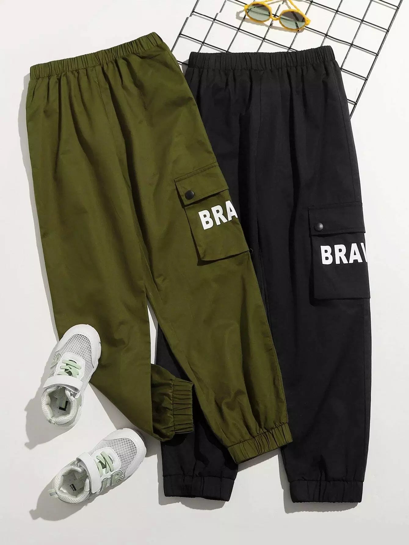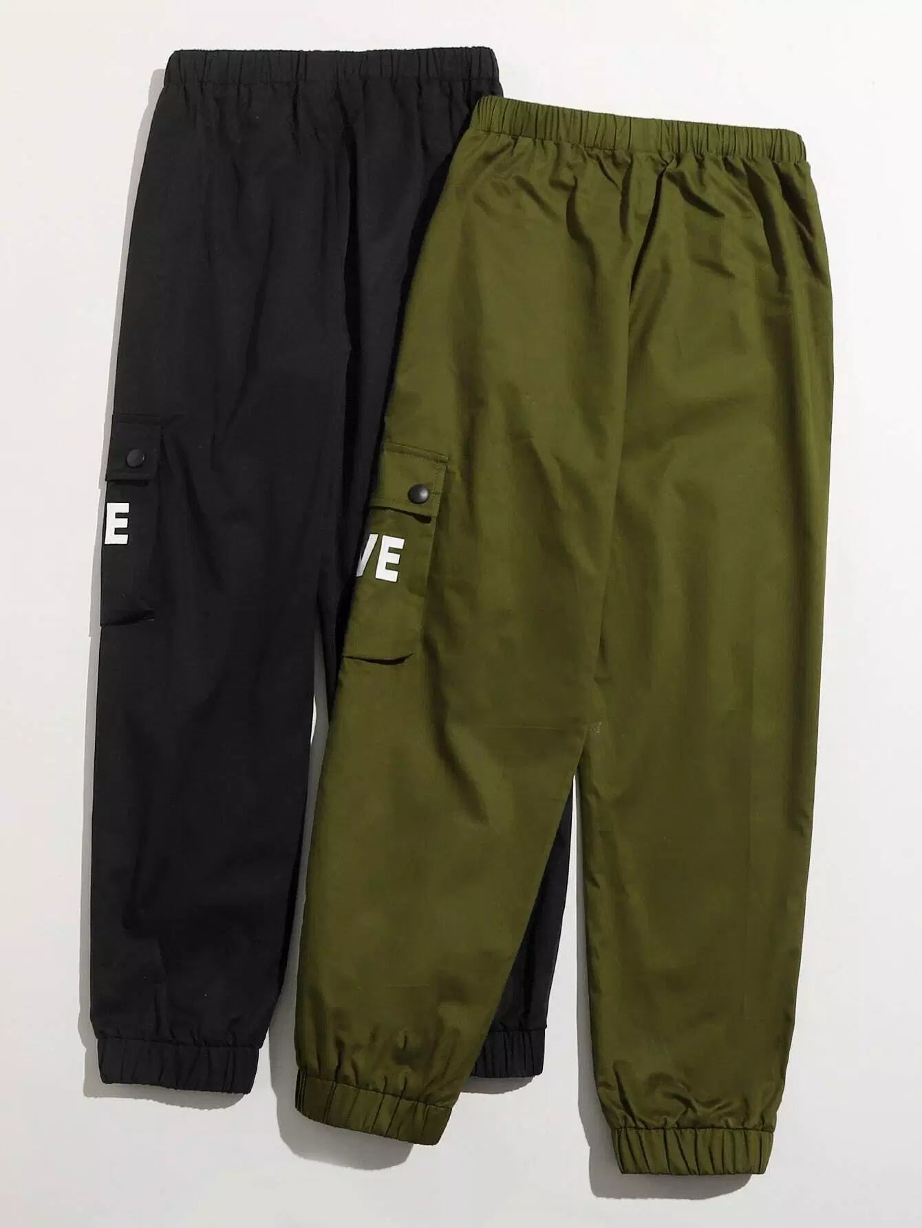 Boys 2 Pack Letter Graphic Flap Pocket Cargo Pants