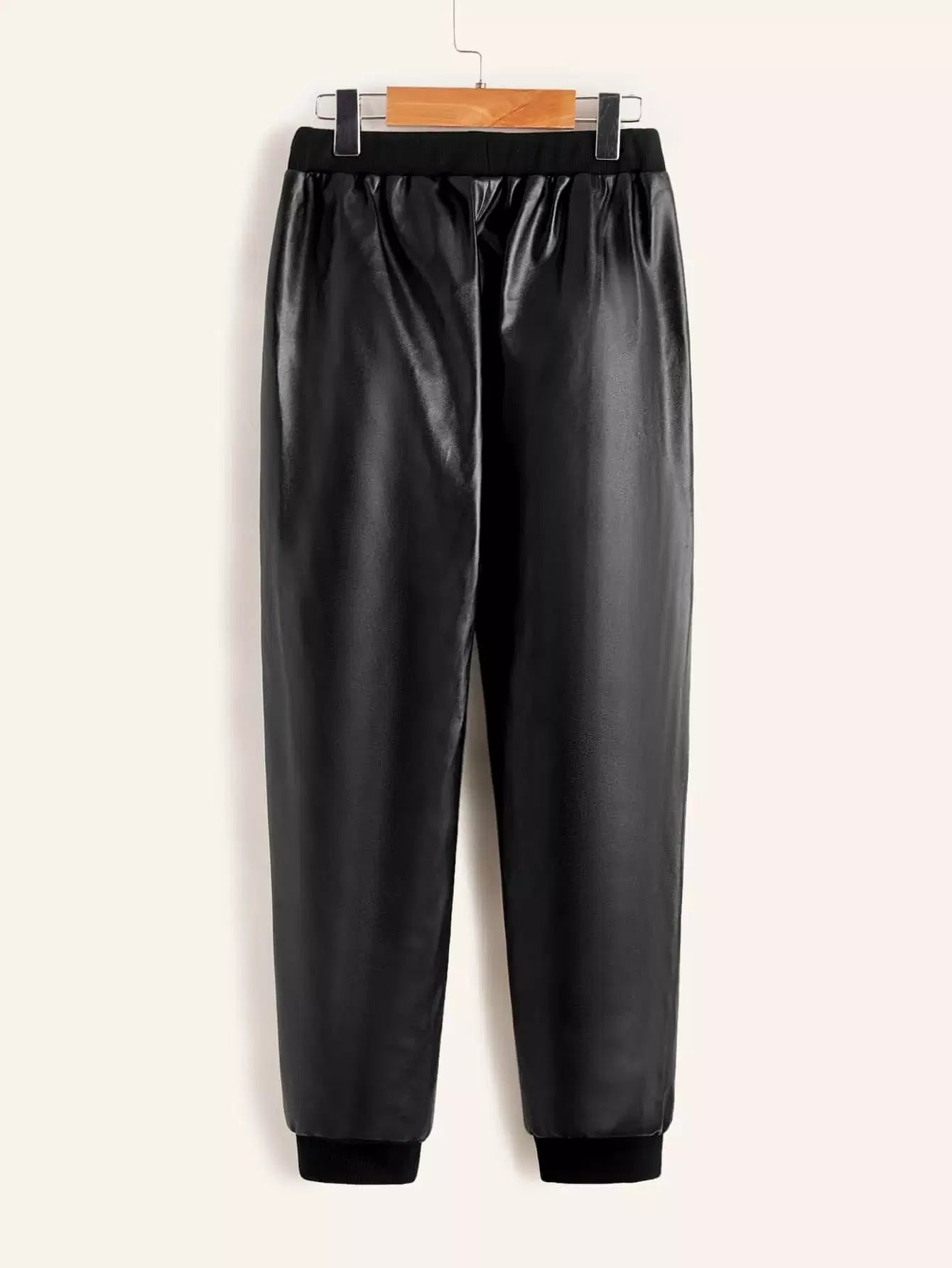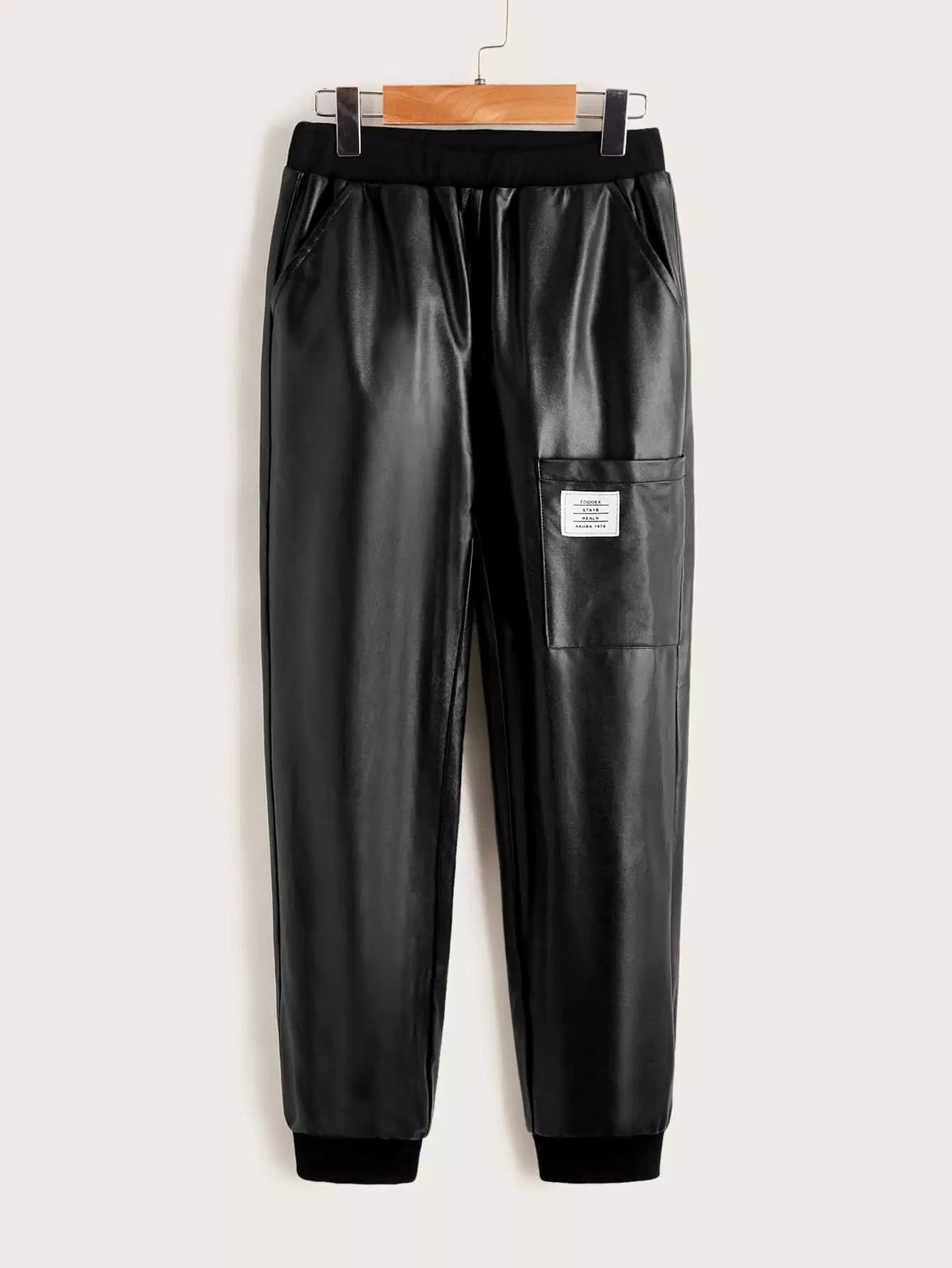 Boys Patched Detail Pocket Front PU Leather Pants