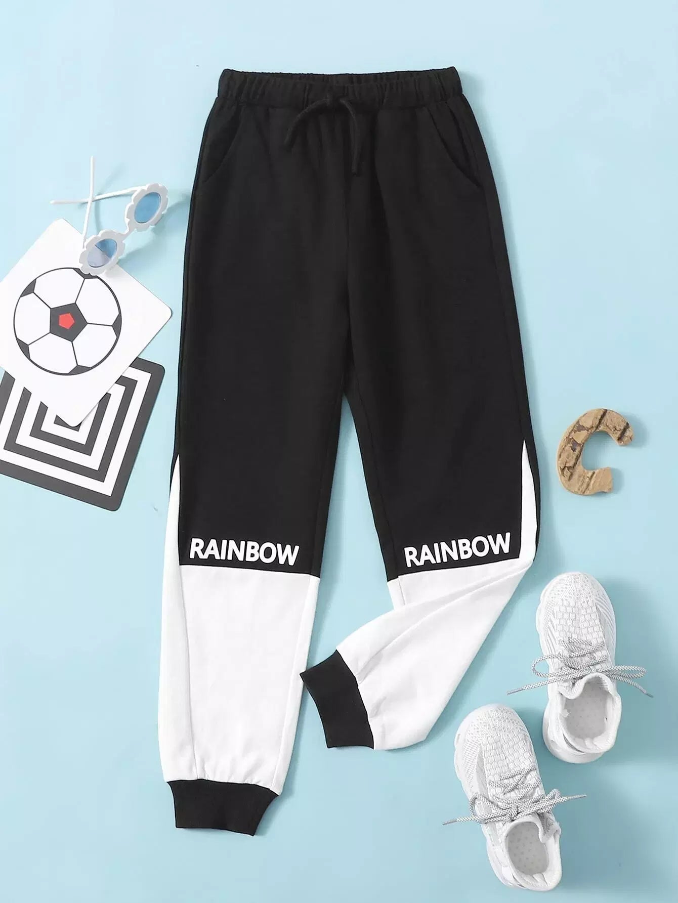 Boys Letter Graphic Two Tone Sweatpants