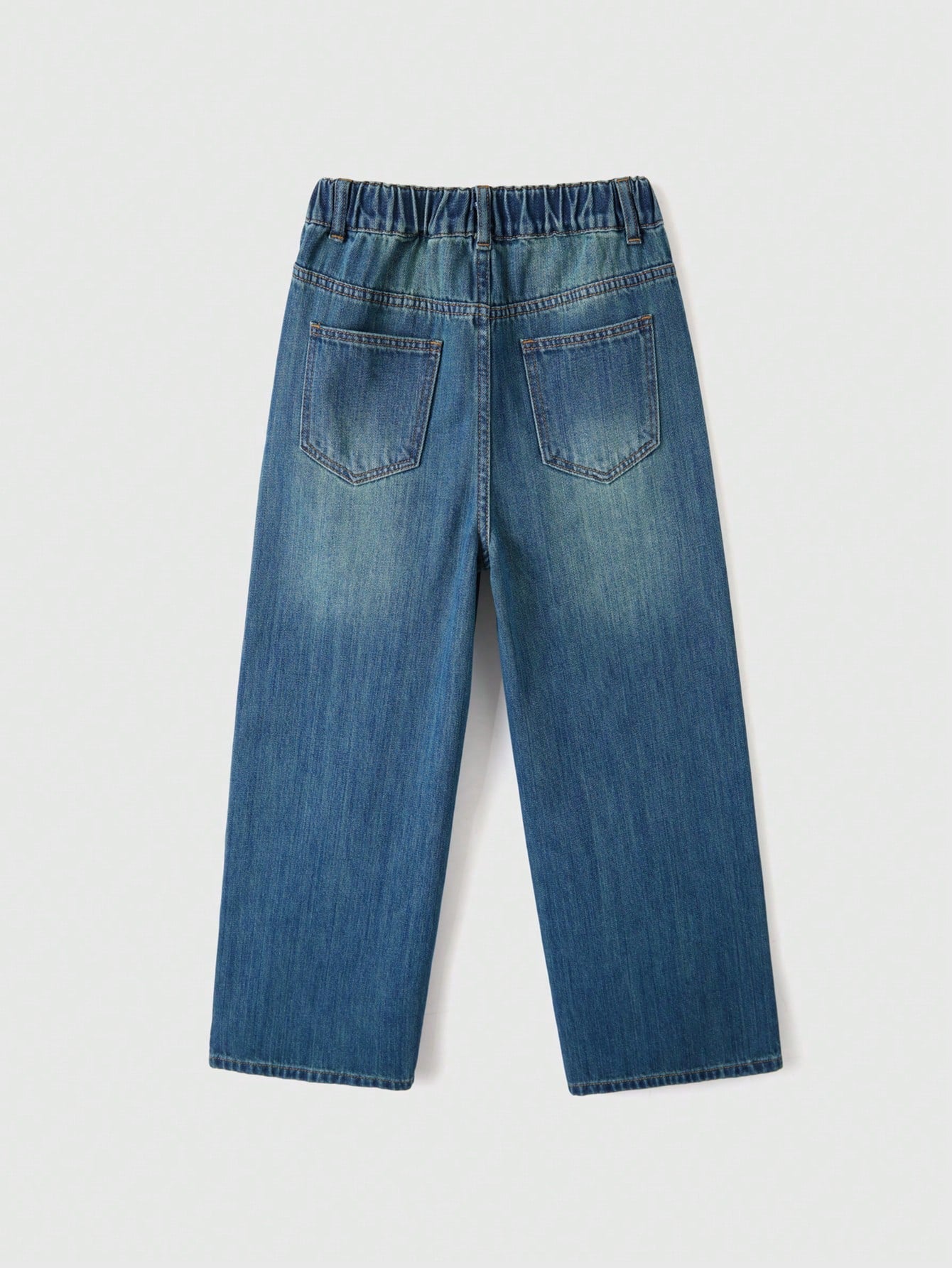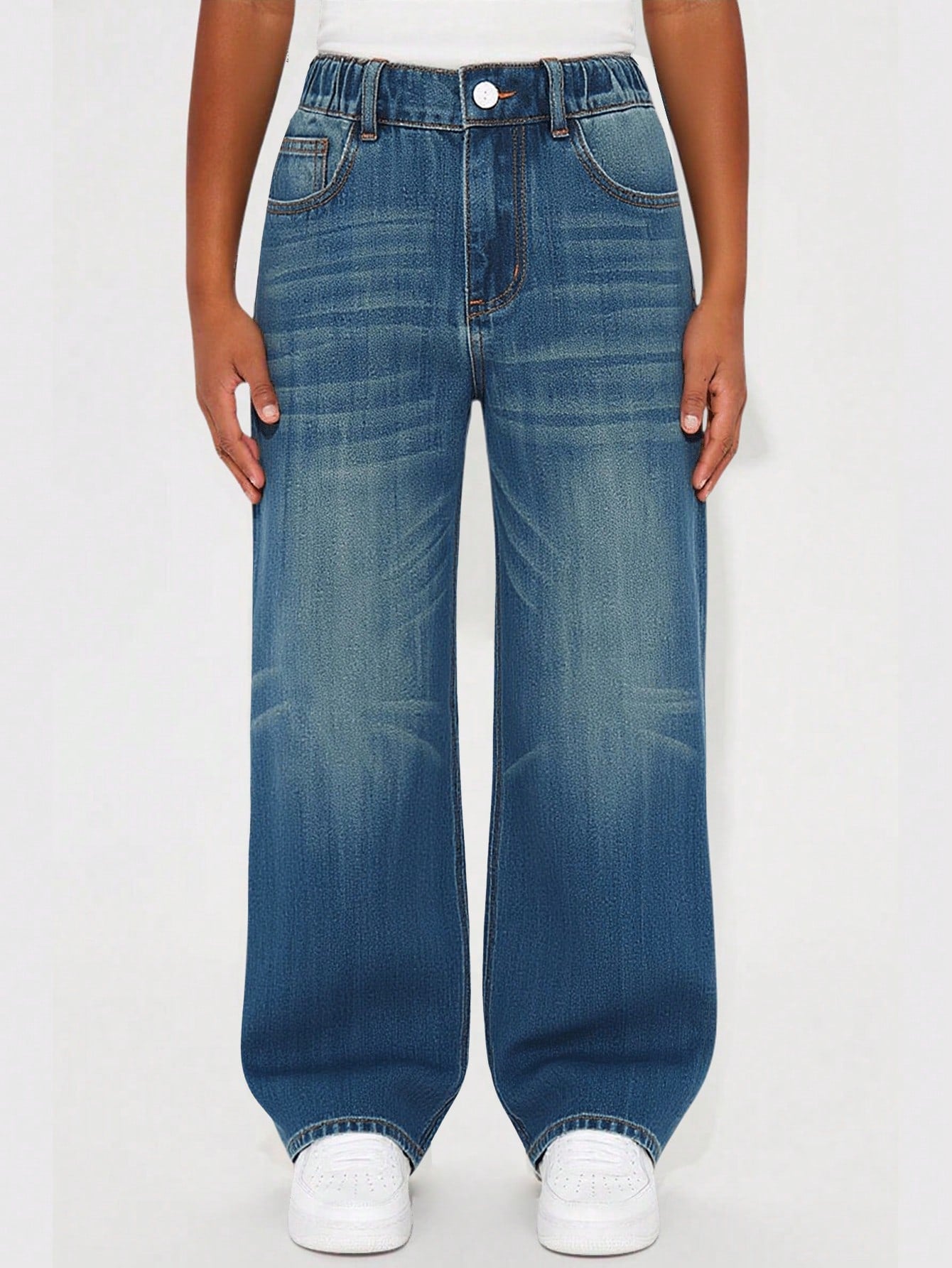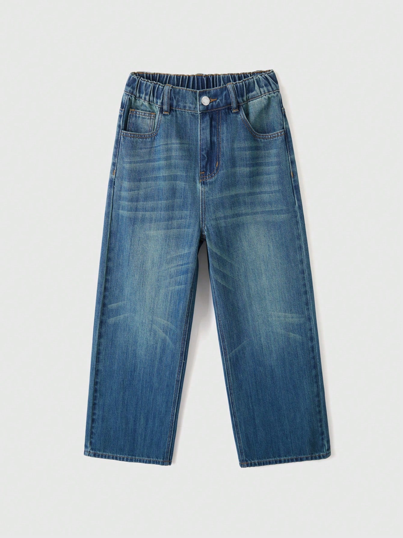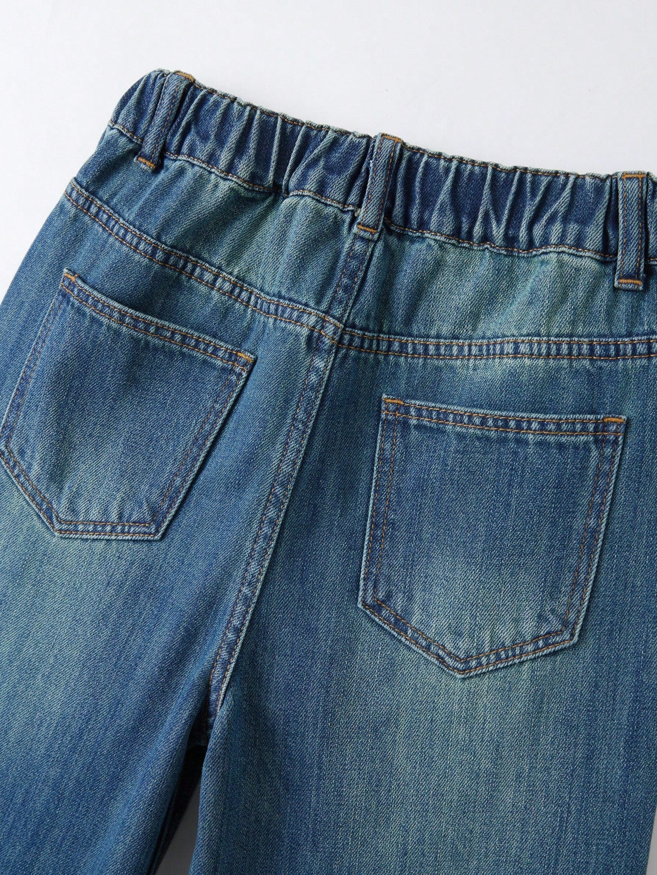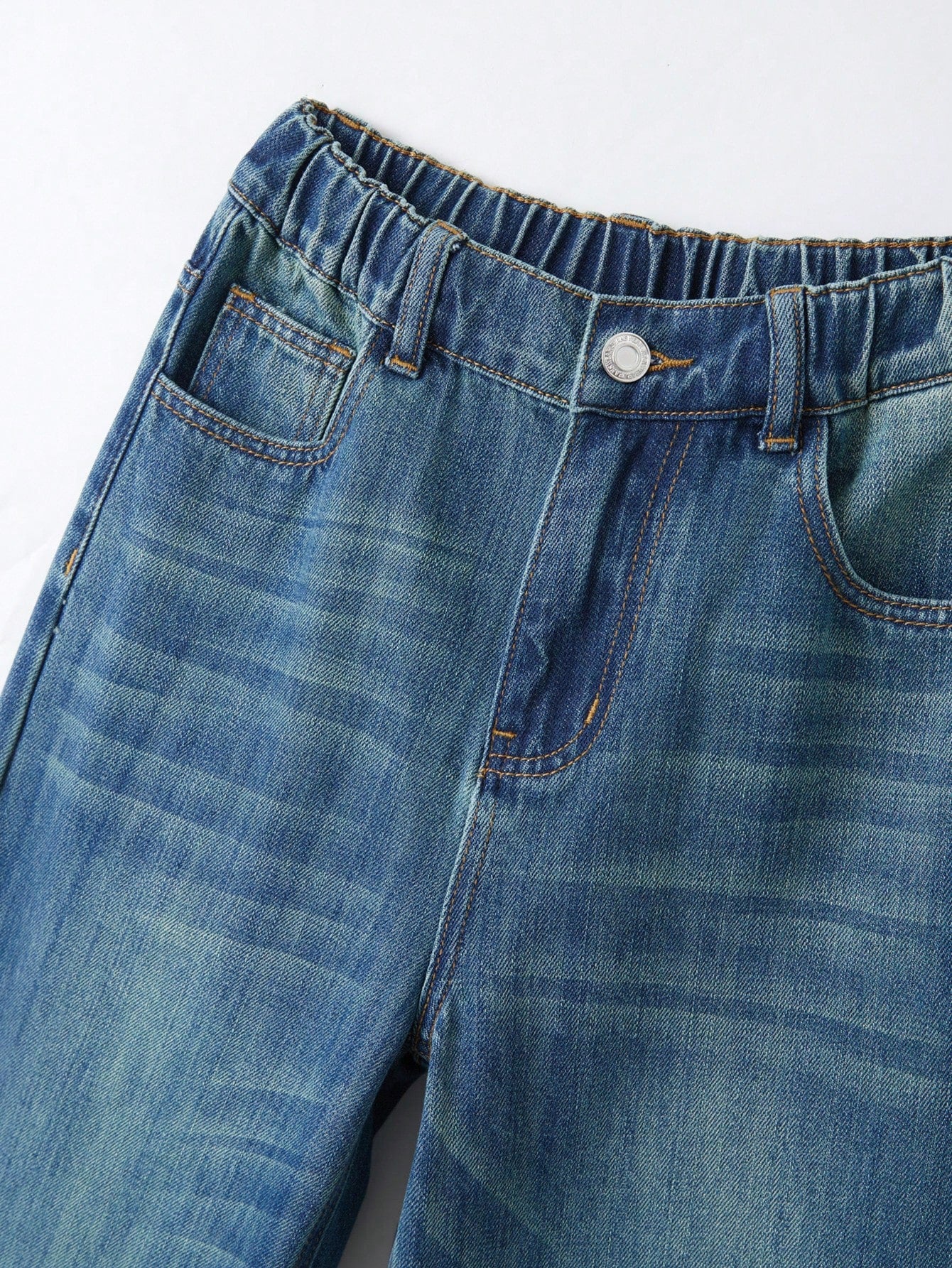 Tween Boys Jeans, Casual Urban Cool Nostalgic Medium Washed Blue Frayed Hem Relaxed Fit Denim Pants