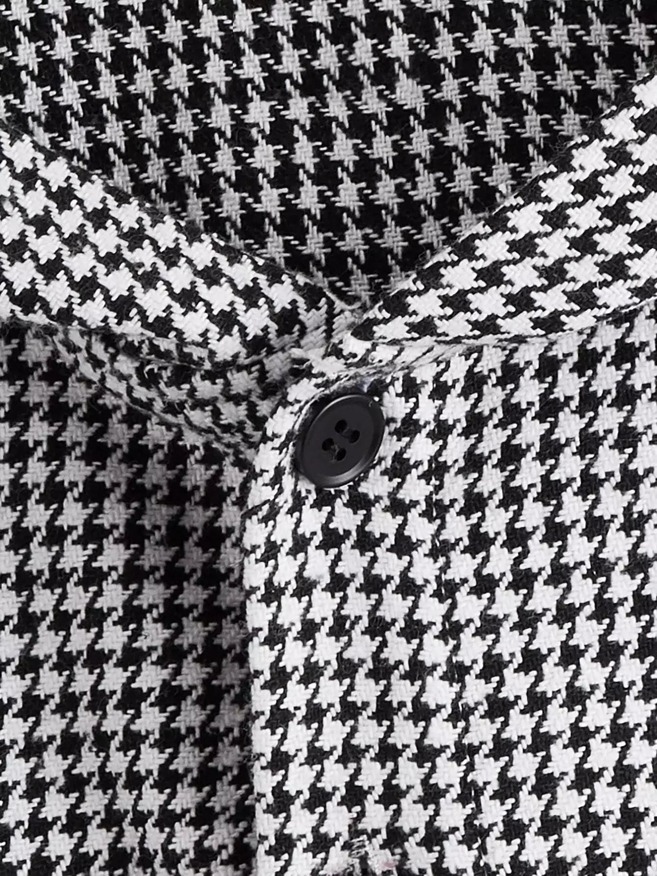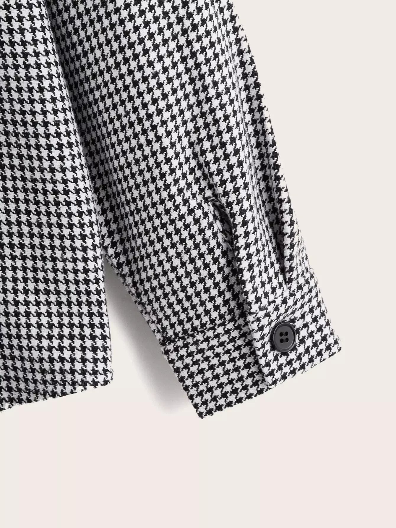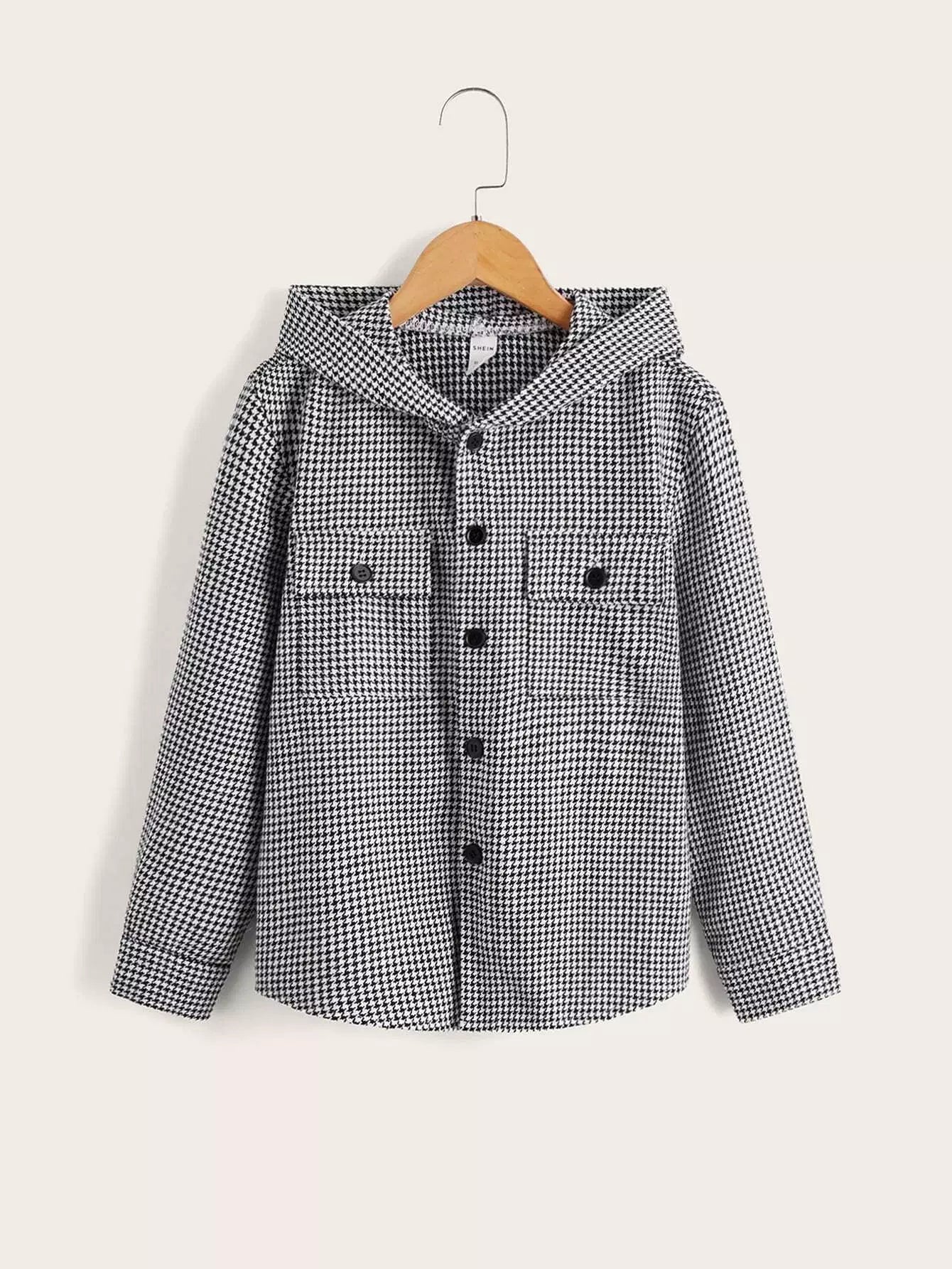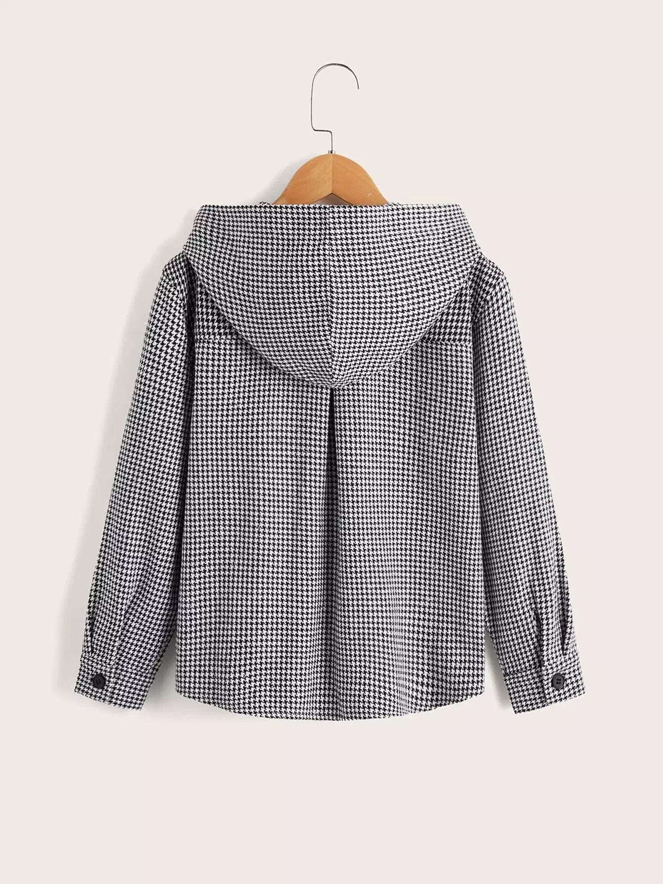 Boys Houndstooth Print Hooded Tweed Overcoat