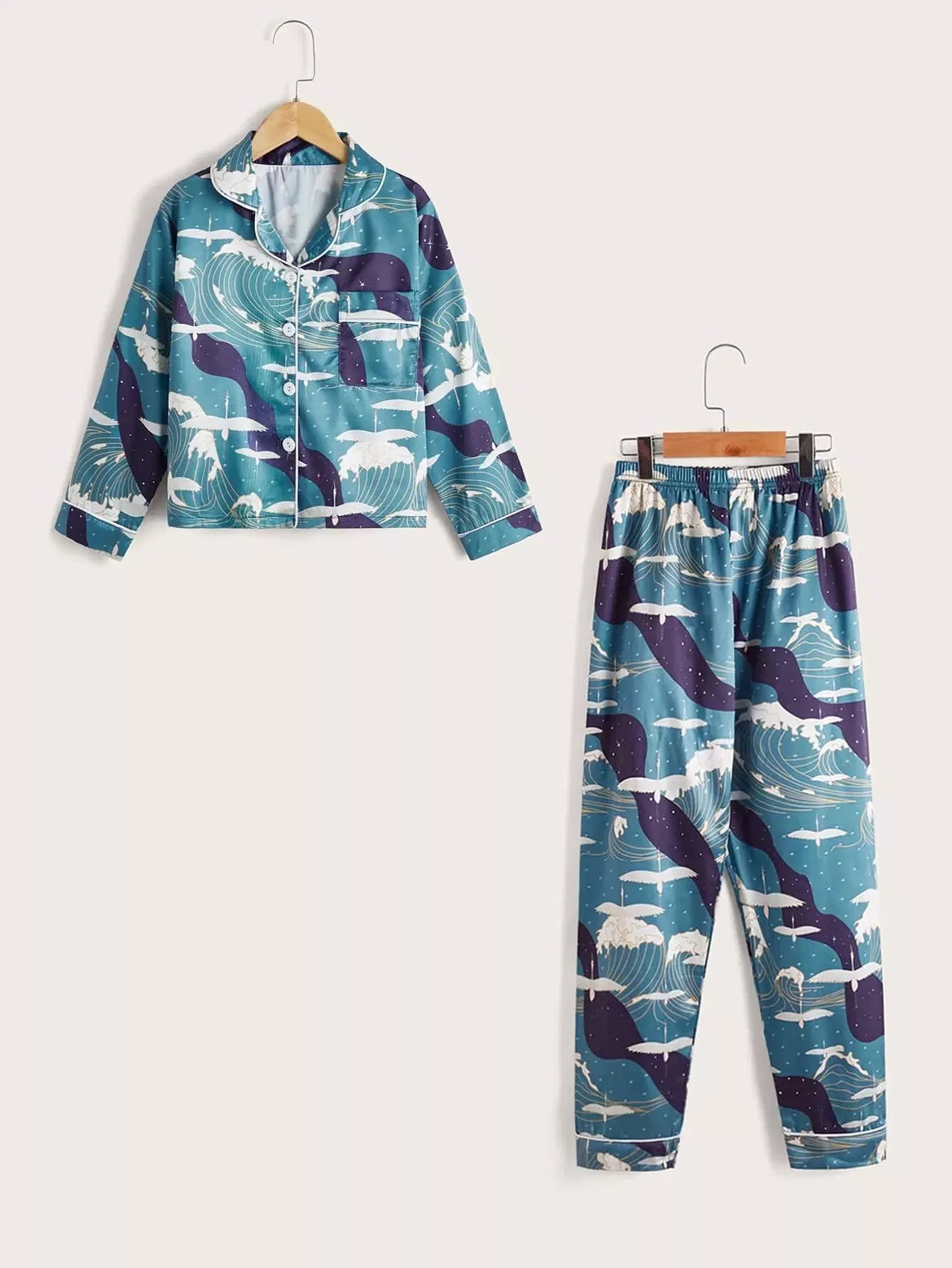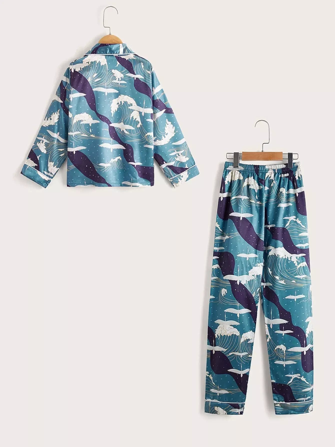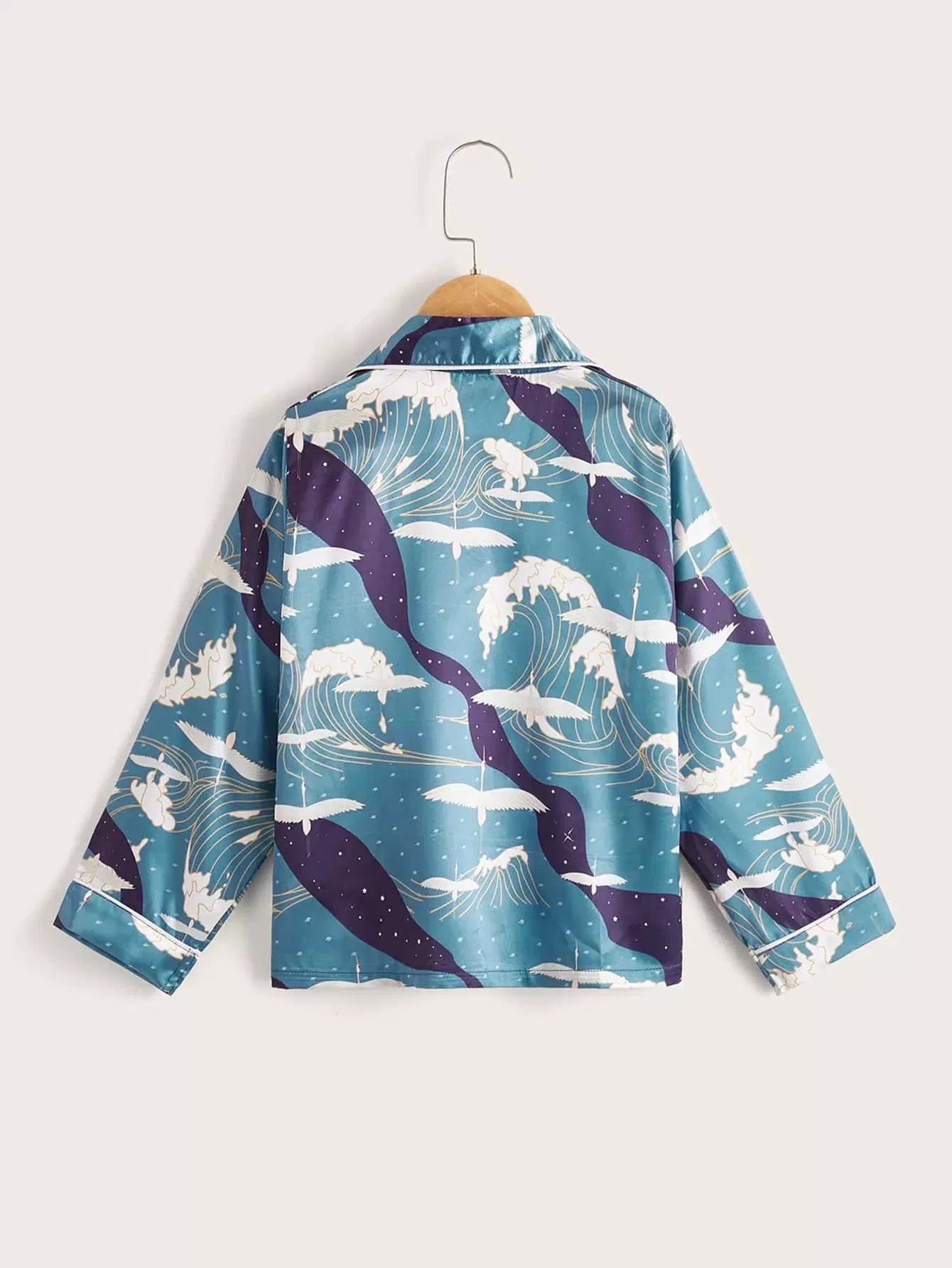 Boys Animal And Graphic Print Lapel Collar Shirt And Pants