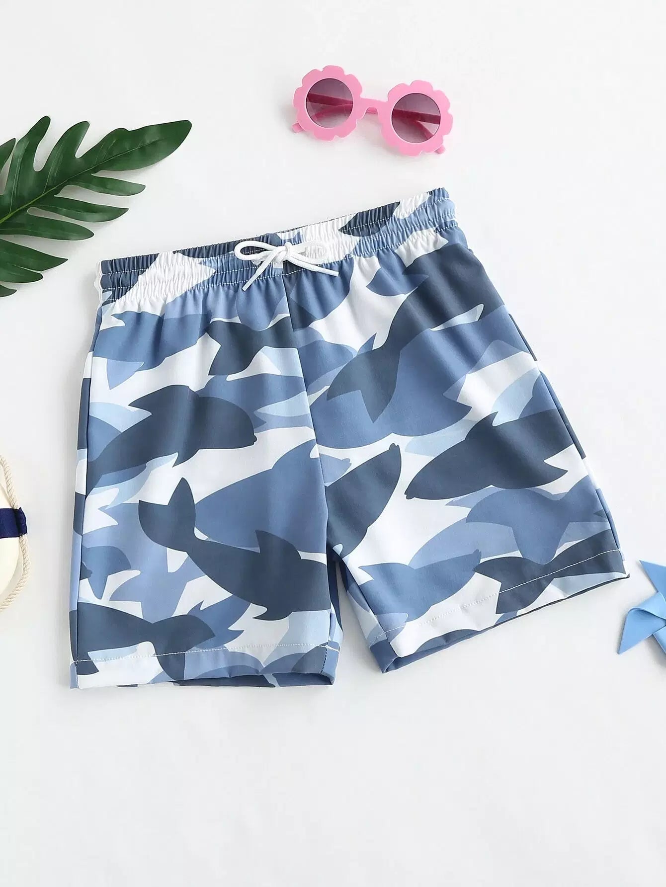 Boys Camo Tie Front Swim Shorts