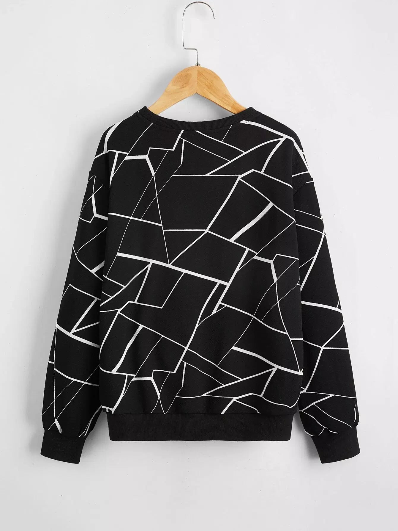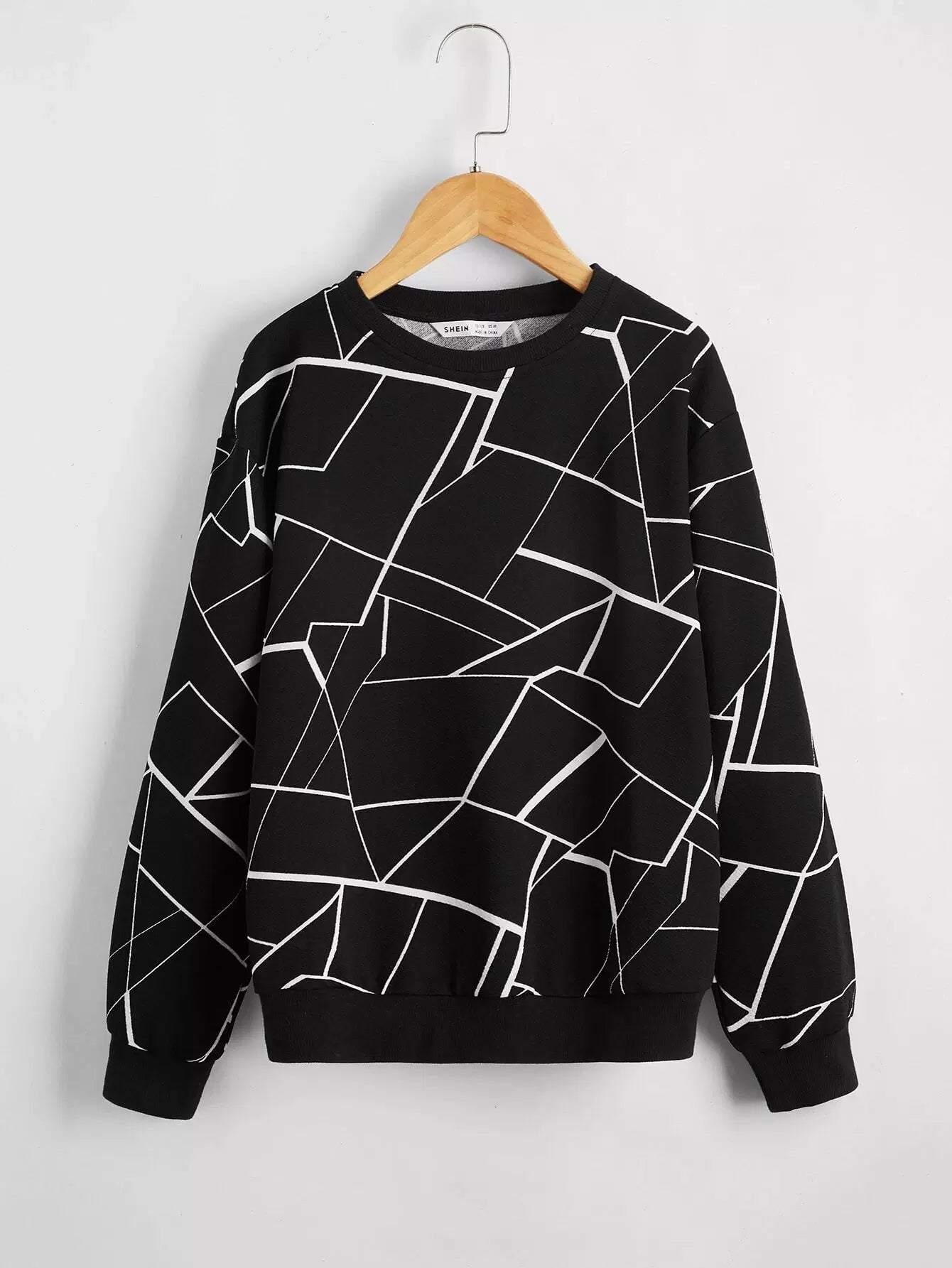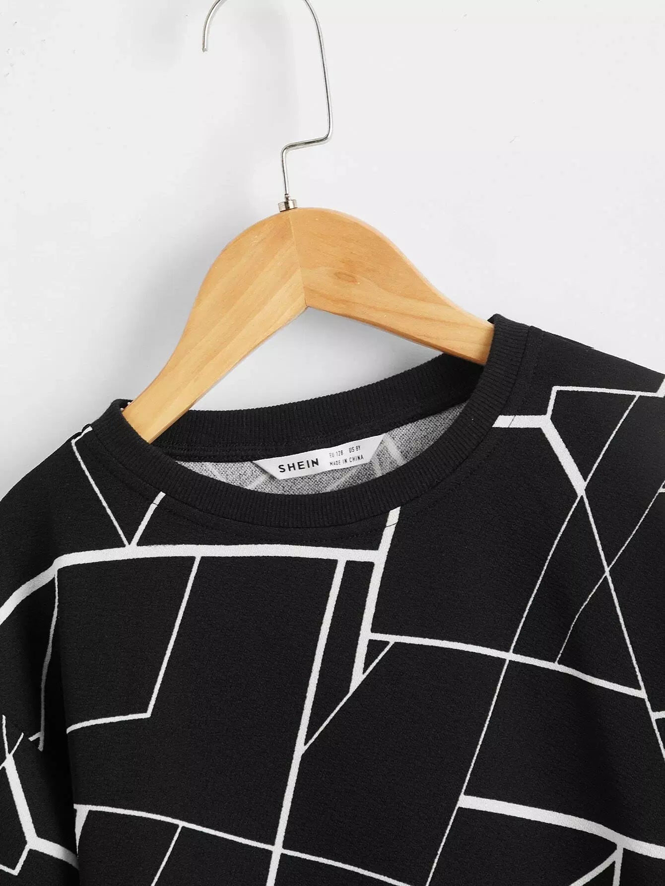 Kids - Boys Geo Print Drop Shoulder Sweatshirt