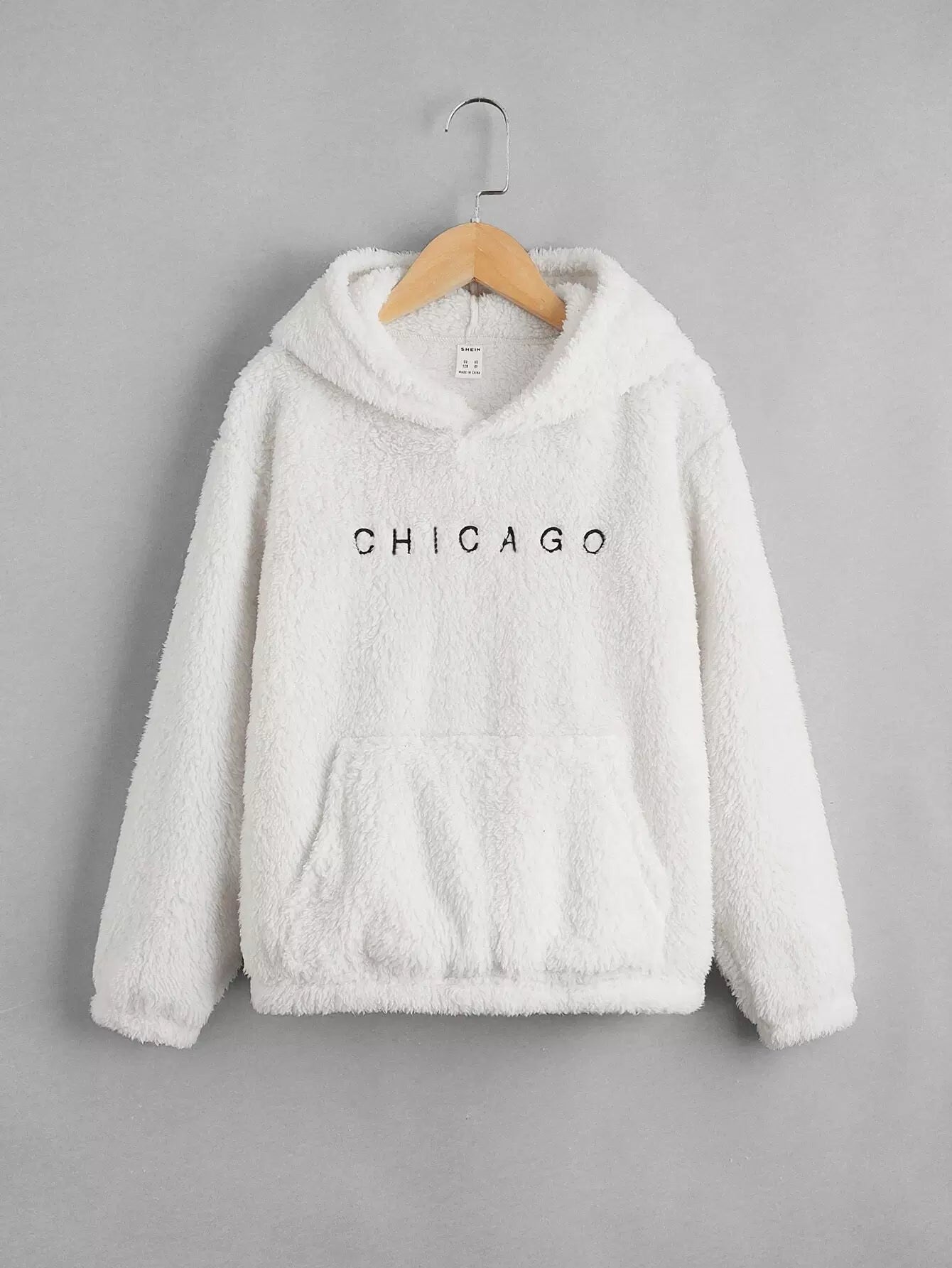 Boys Letter Embroidery Kangaroo Pocket Teddy Hoodie