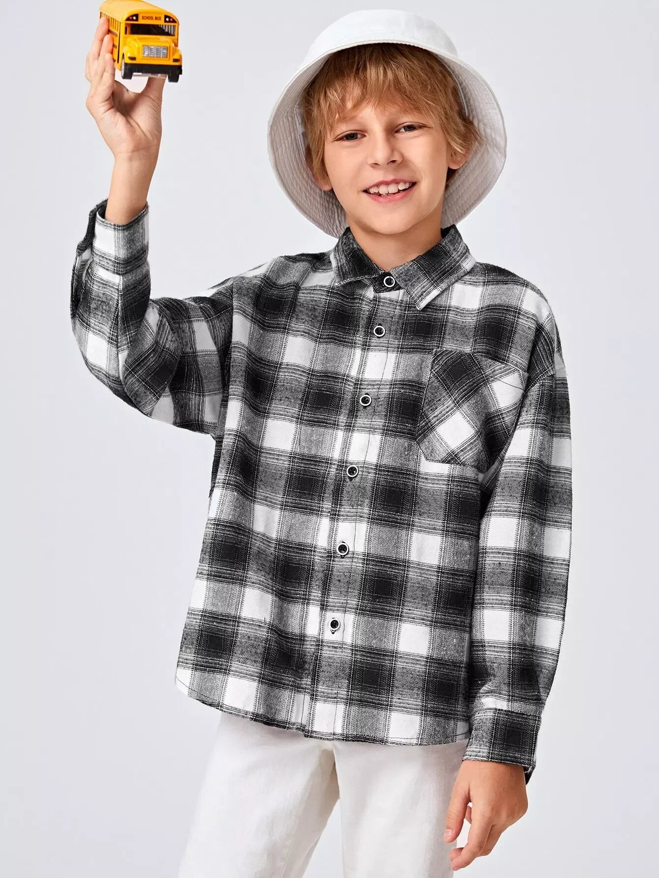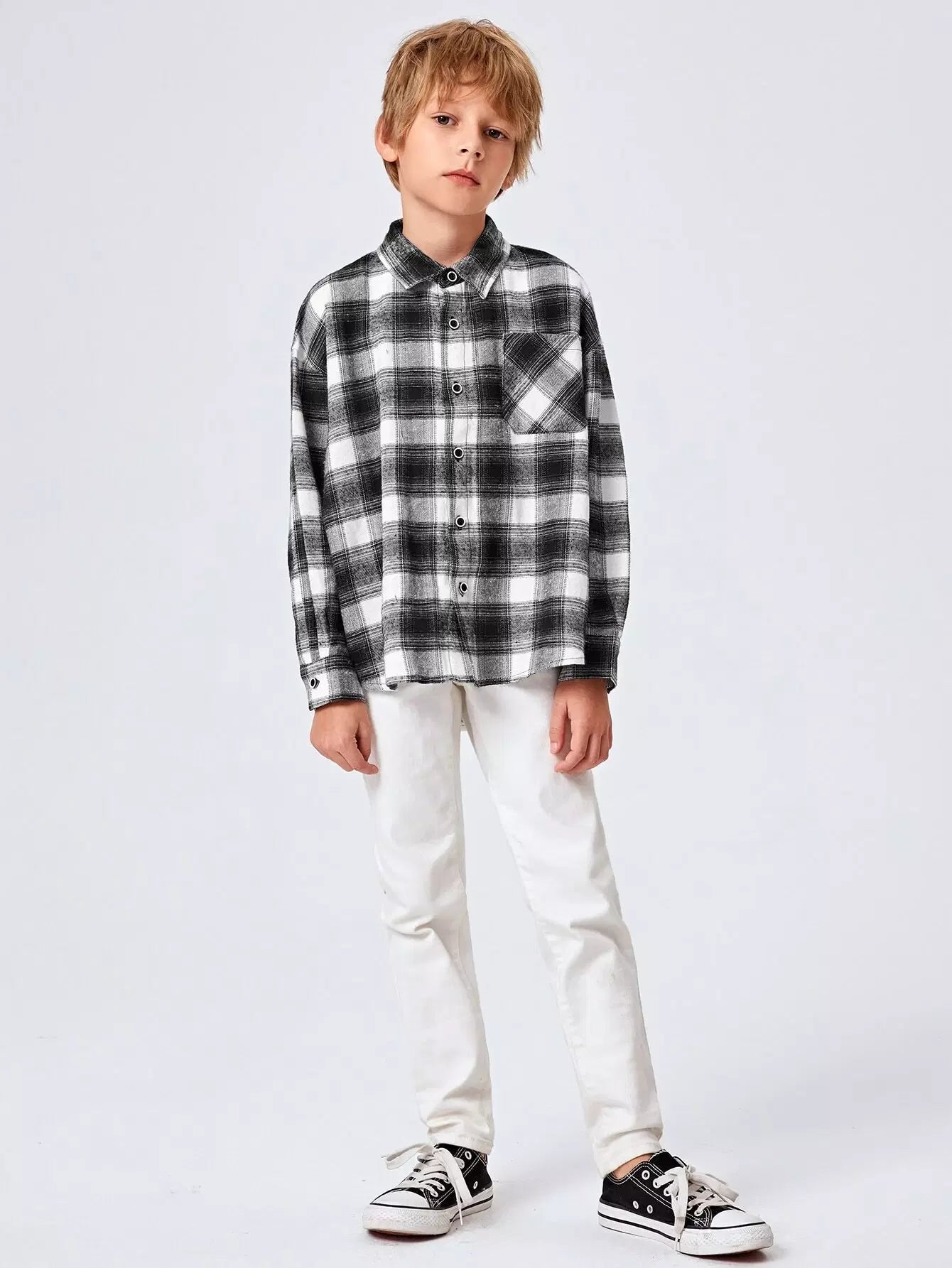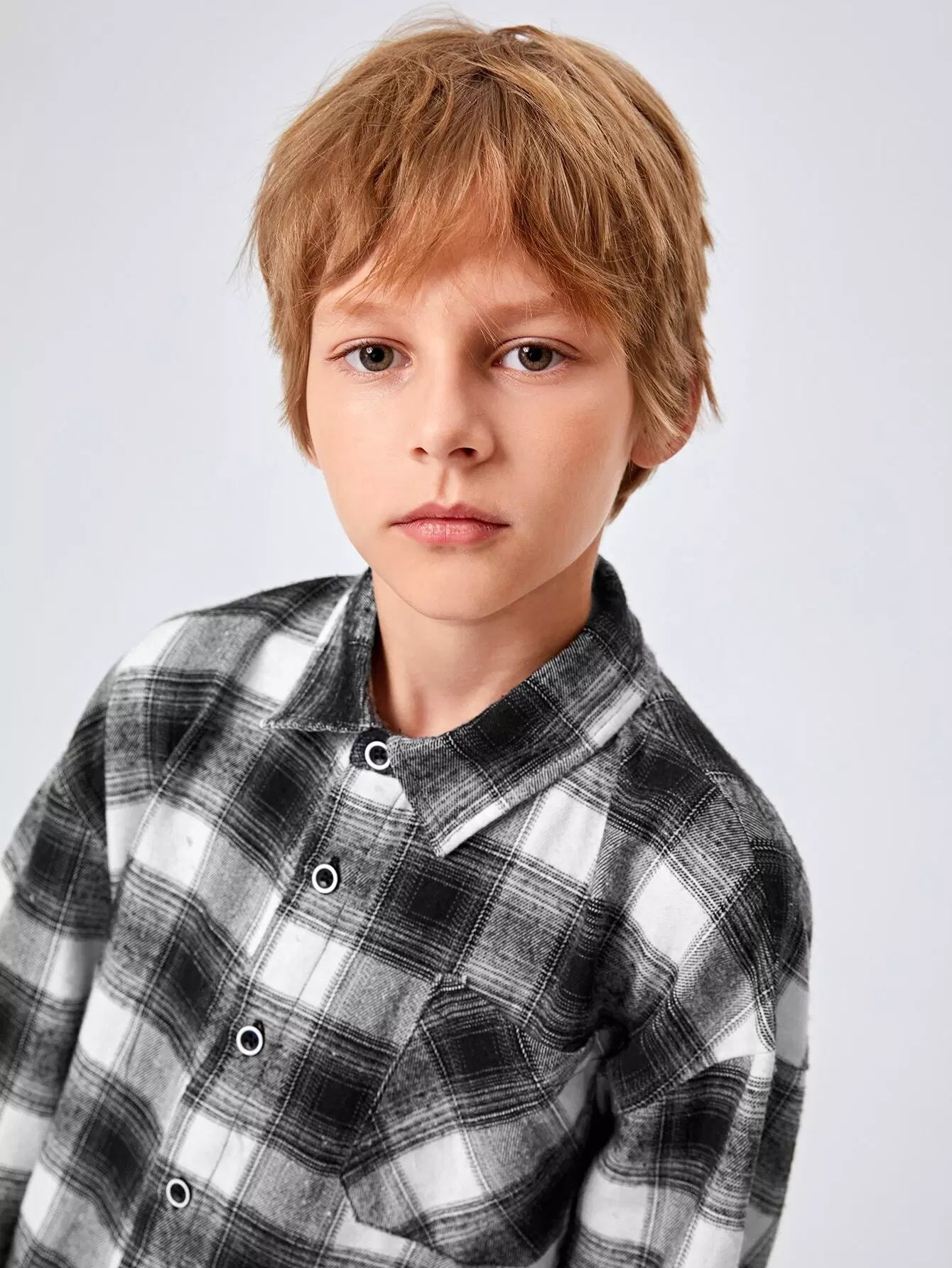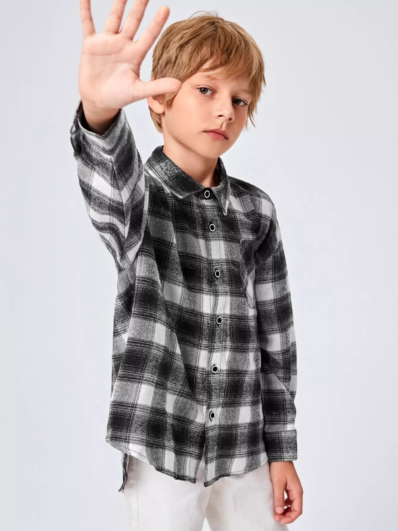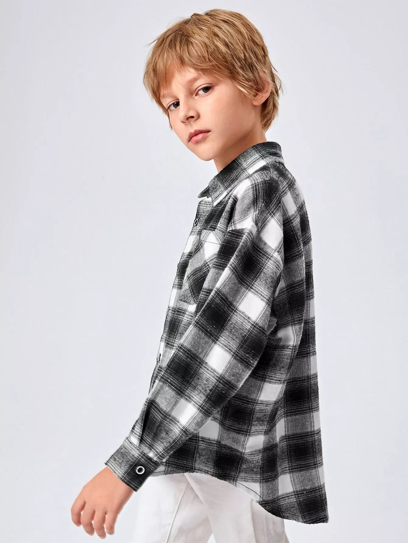 Boys Single Breasted Plaid Shirt