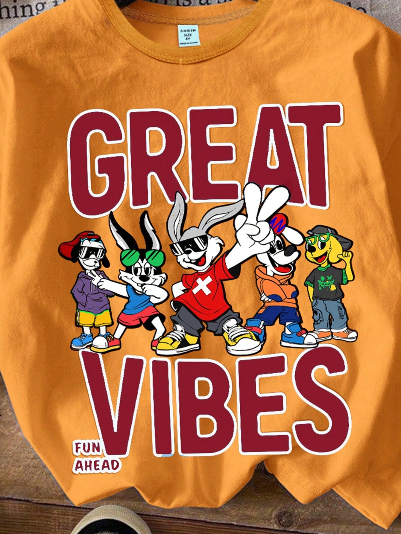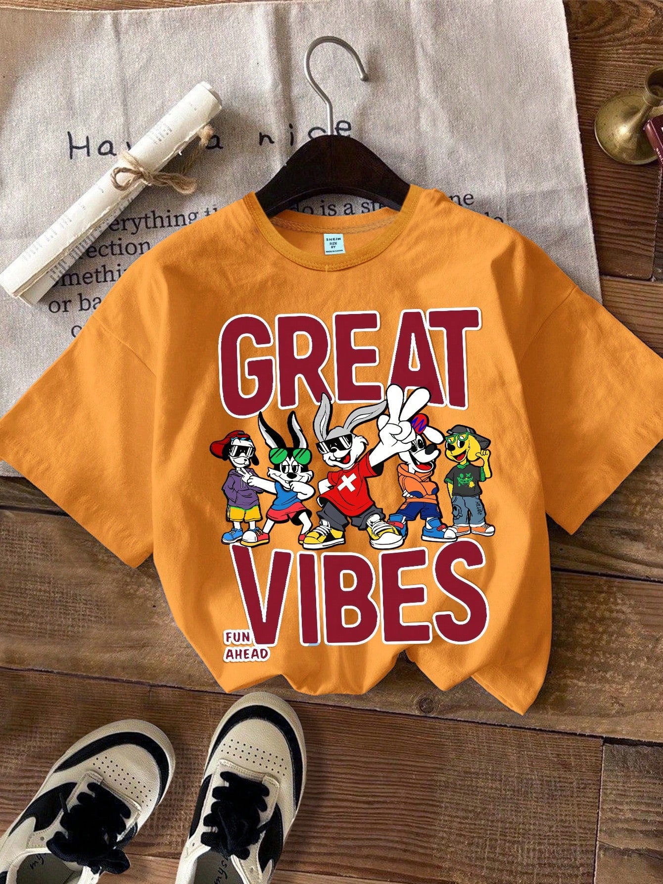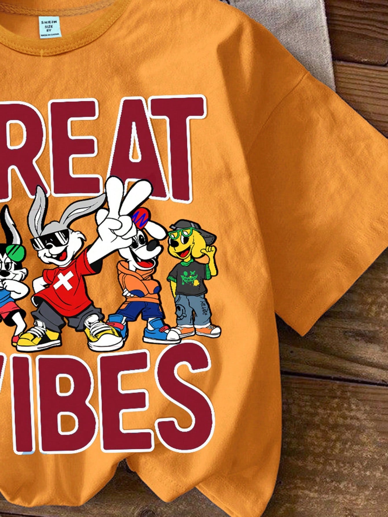 kids SHEIN Tween Boys Casual Simple Round Neck Short Sleeve T-Shirt
