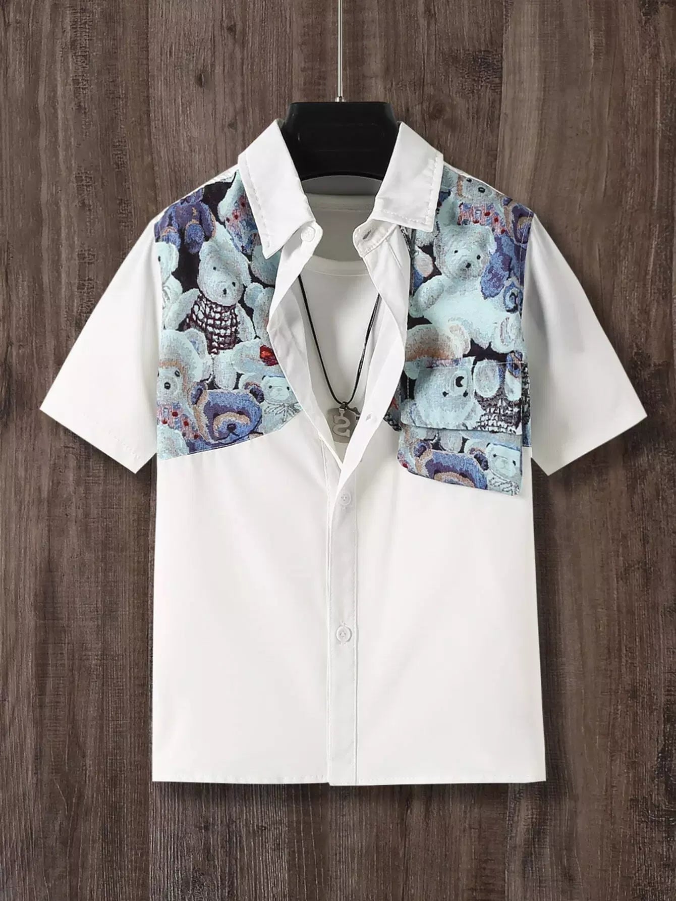Boys Bear Print Patched Pocket Shirt
