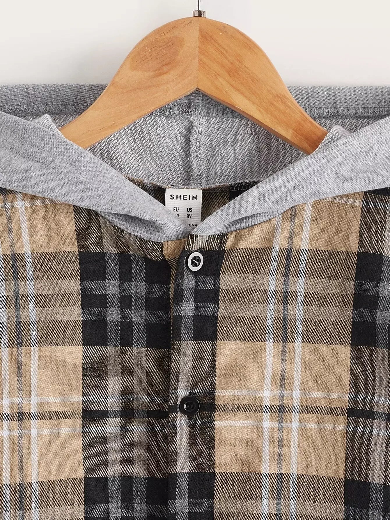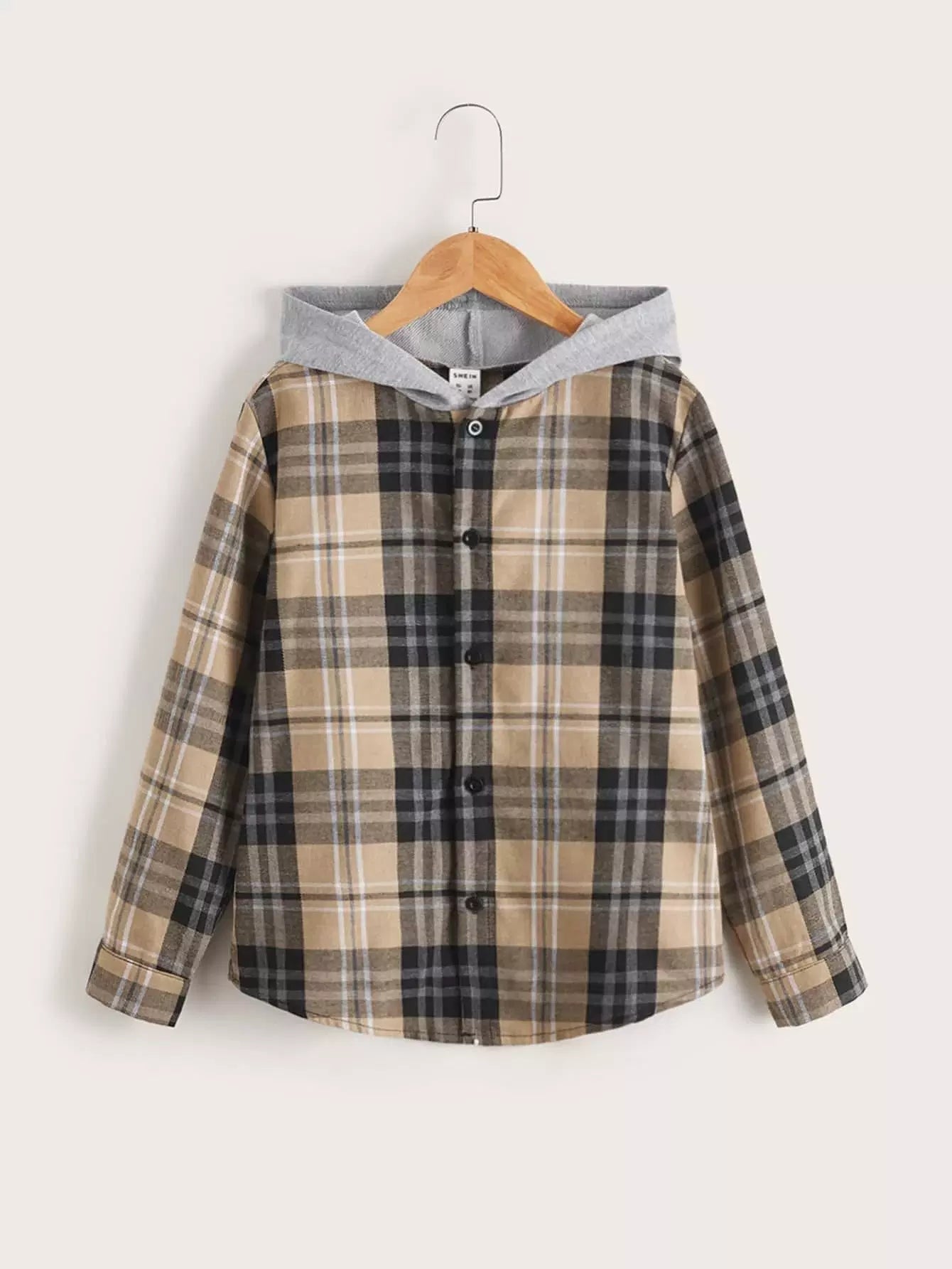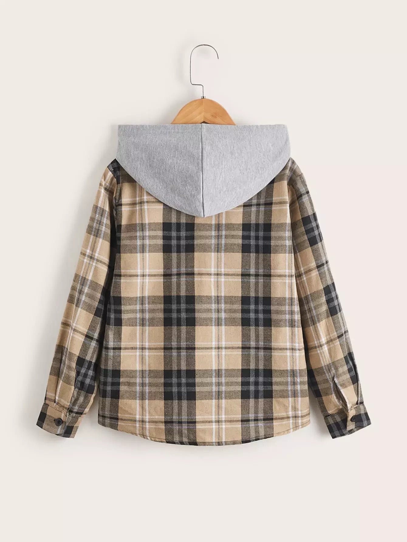 Boys Plaid Print Hooded Shirt