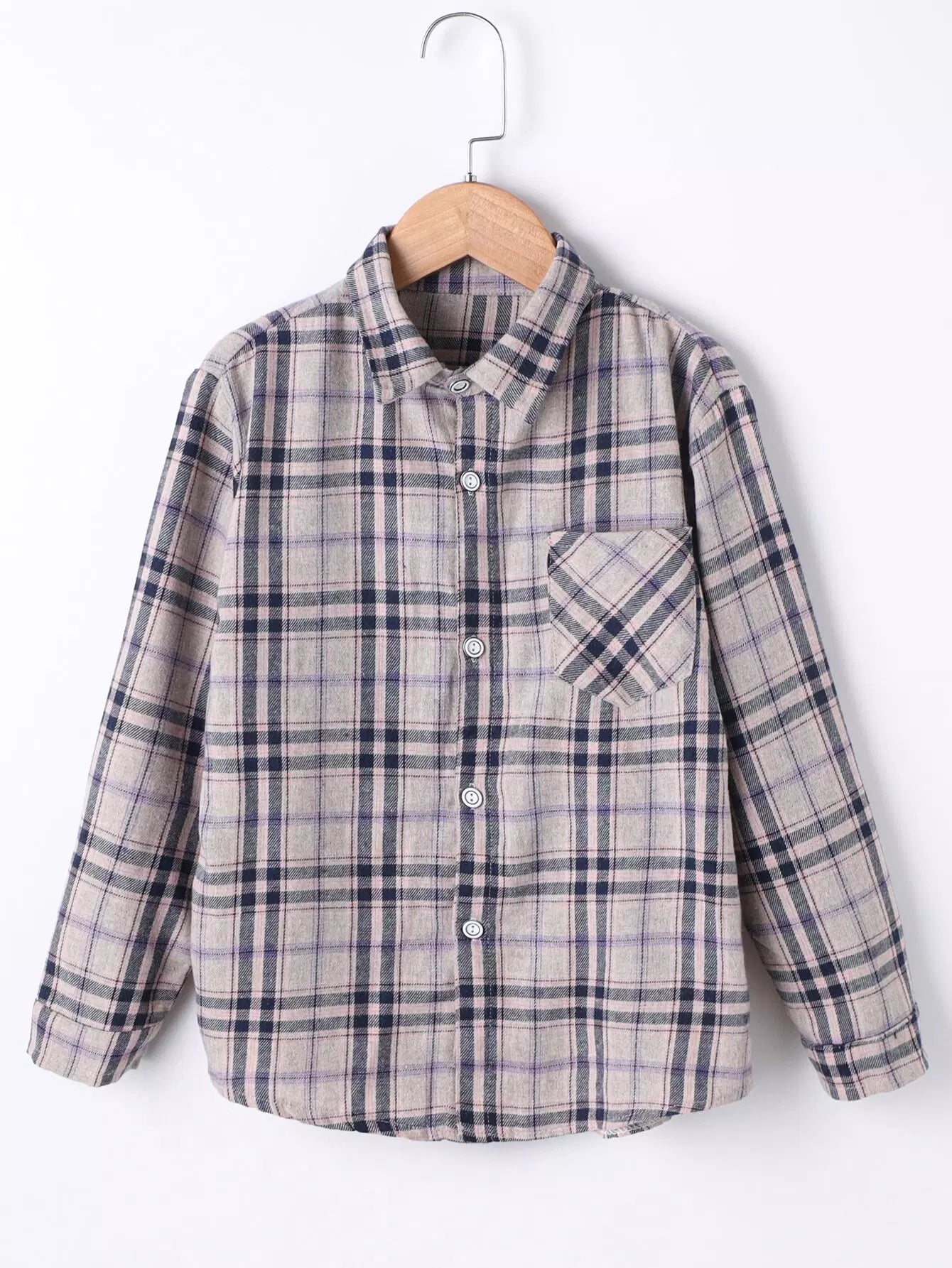 Boys Plaid Print Pocket Patched Shirt