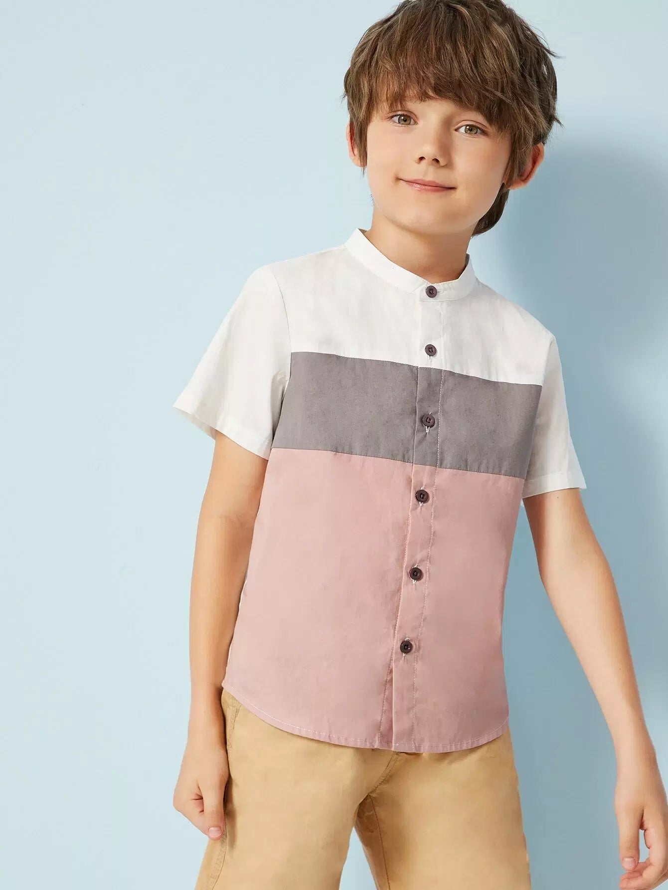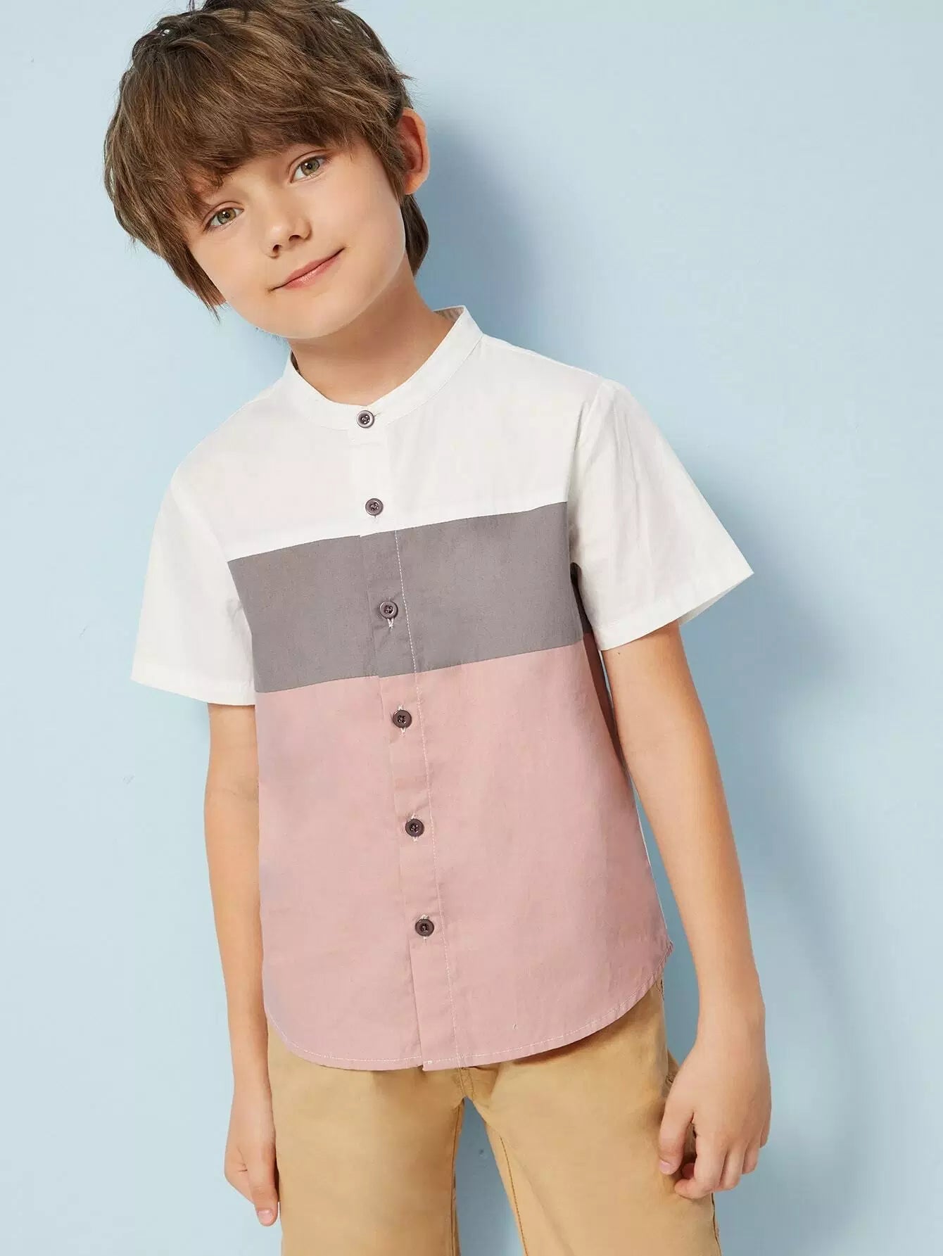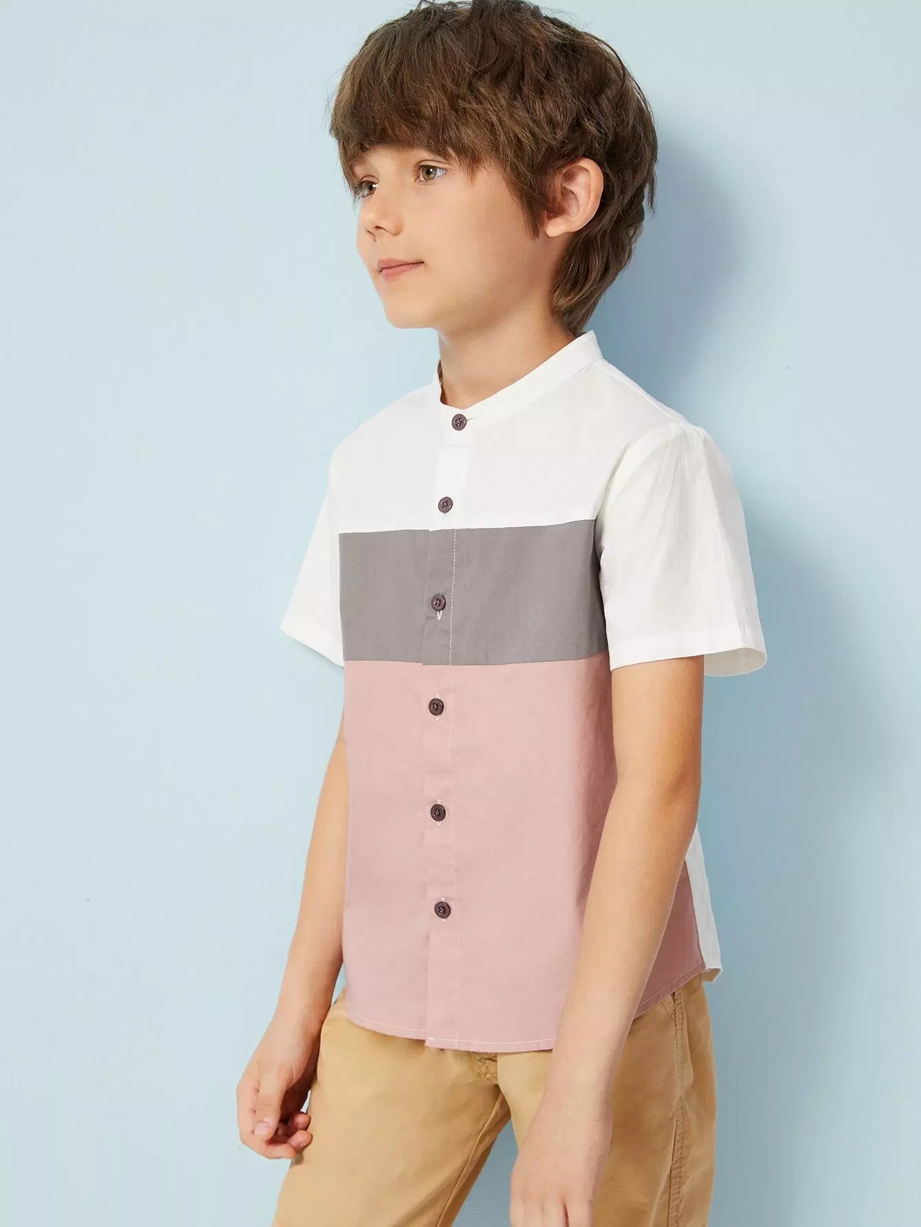 Kids - Boys Stand Collar Cut And Sew Shirt