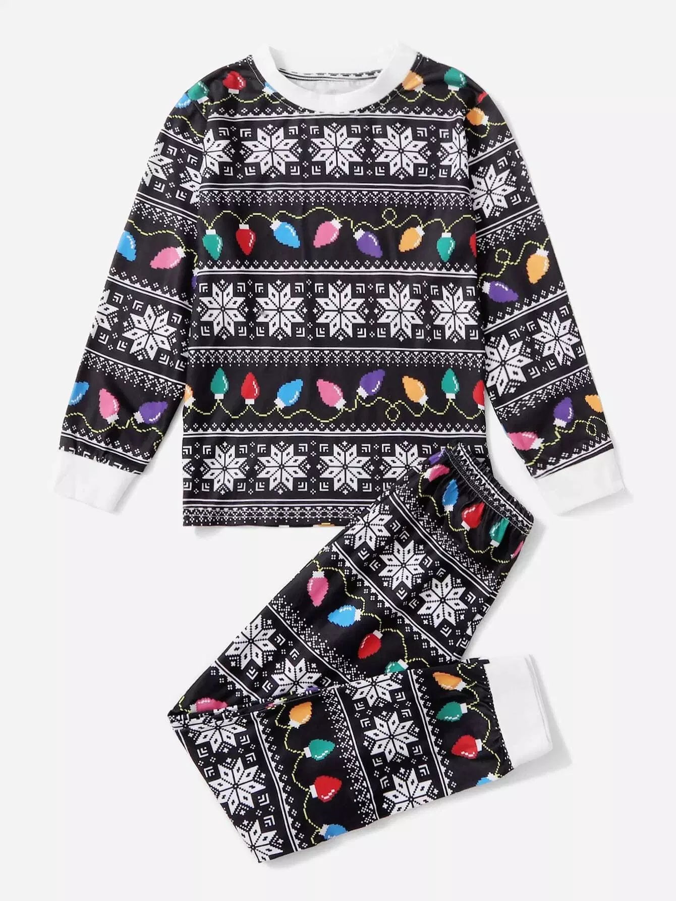 Girls 1pc Christmas Print Sleep Top & 1pc Sleep Pants